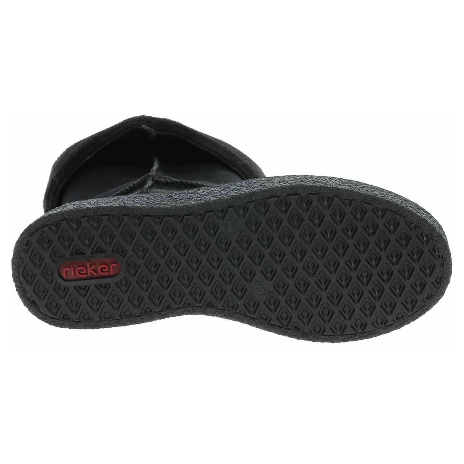 Boty Rieker - lepené dámské polokozačky se svrškem ze syntetiky jsou vybavené zipem na vnitřní straně, vodoodpudivou membránou RiekerTex a jsou vyteplené textilní podšívkou s jemným chloupkem. Vyměnitelné vložky do bot je možné vyndat za účelem provětrání a omytí. Značnou výhodu nabízejí vyměnitelné vložky do bot také těm uživatelům, kteří používají ortopedické vkládací stélky. Klínek je vysoký 3,5 cm. Podešev je flexibilní a díky systému Antistress skvěle tlumí nárazy a otřesy. Lepená obuv - pevnost lepeného spoje může být negativně ovlivněna promáčením nebo propocením, event. opakovaným používáním nedostatečně vysušené obuvi. Při neopatrné chůzi může dojít k mechanickému uvolnění lepeného spoje - ukopnutí.