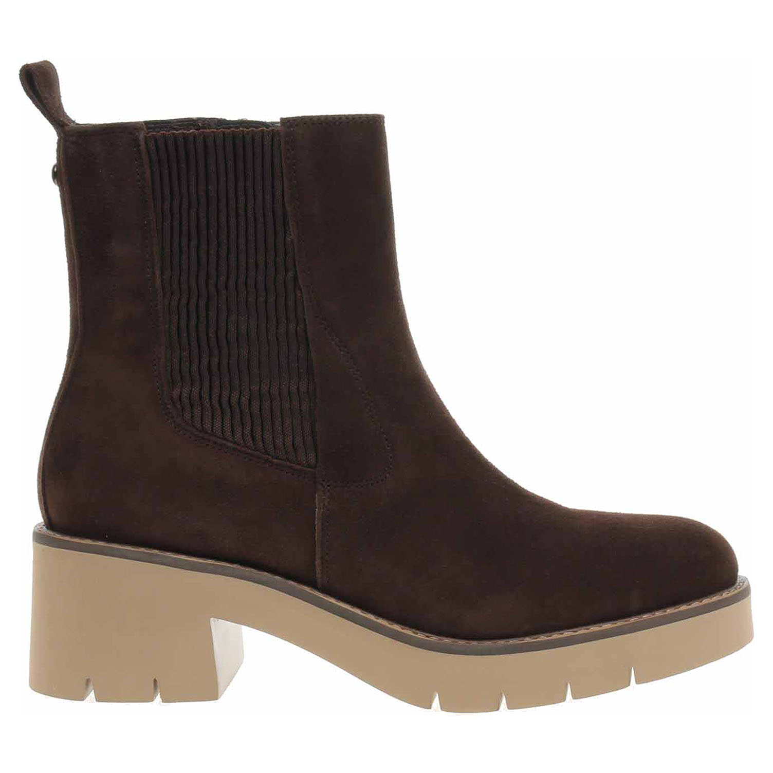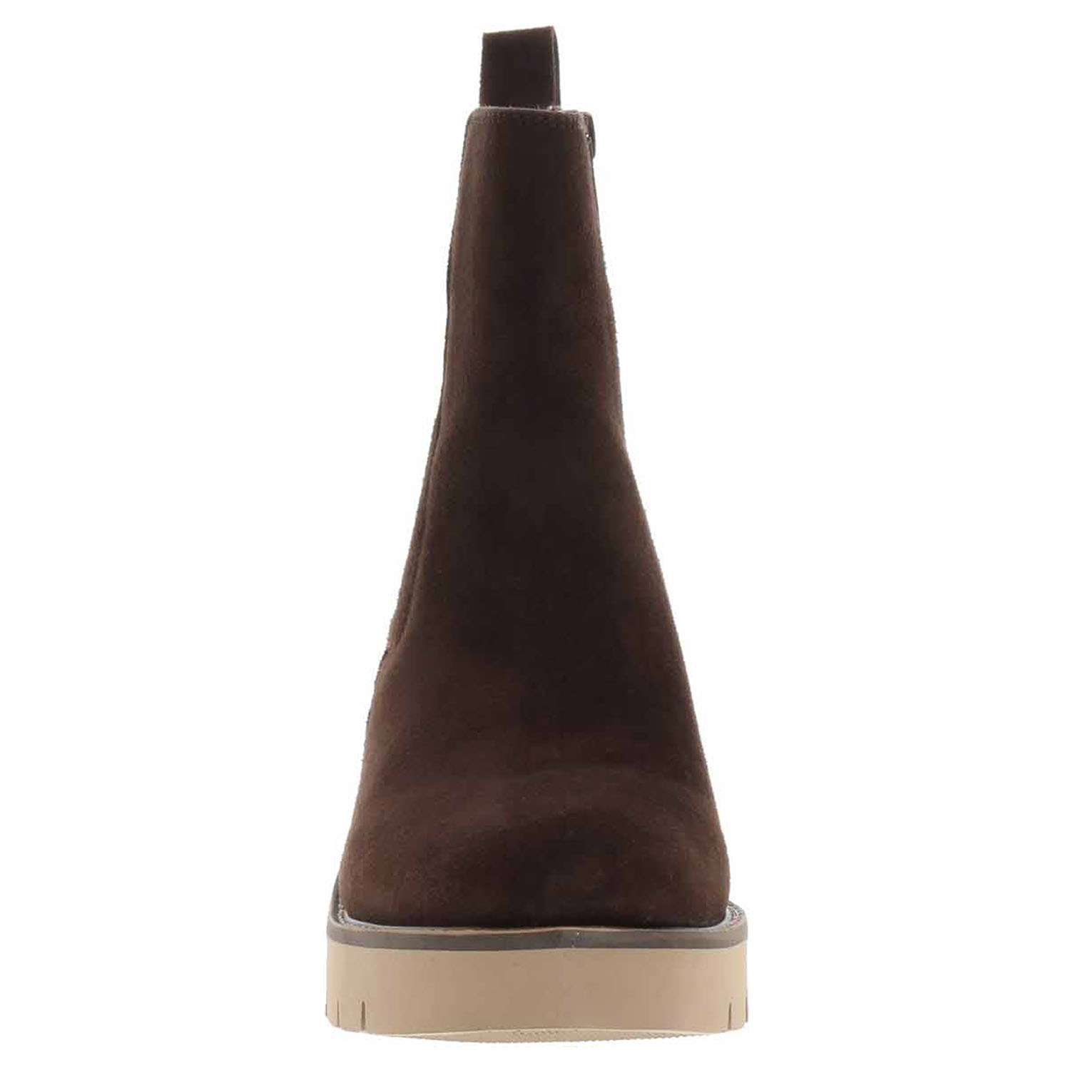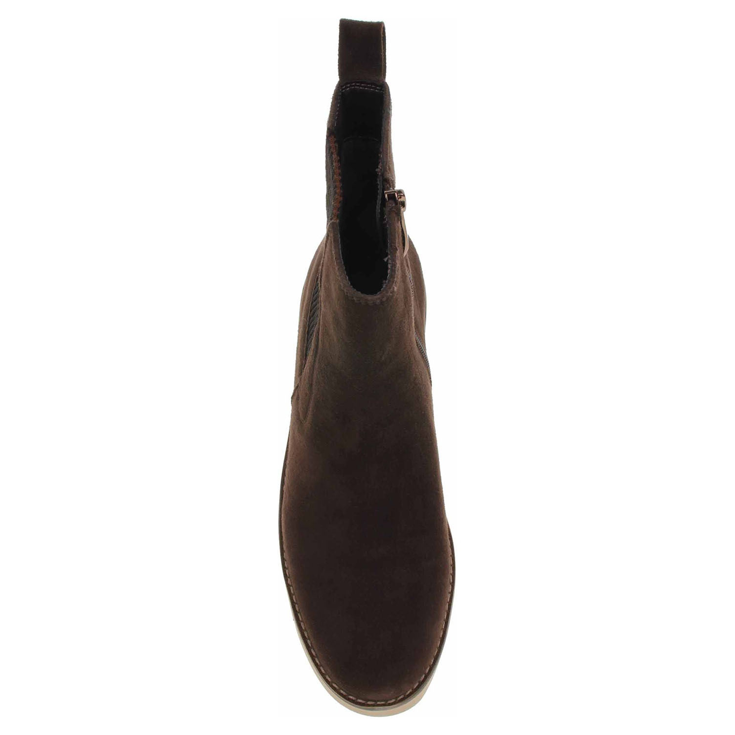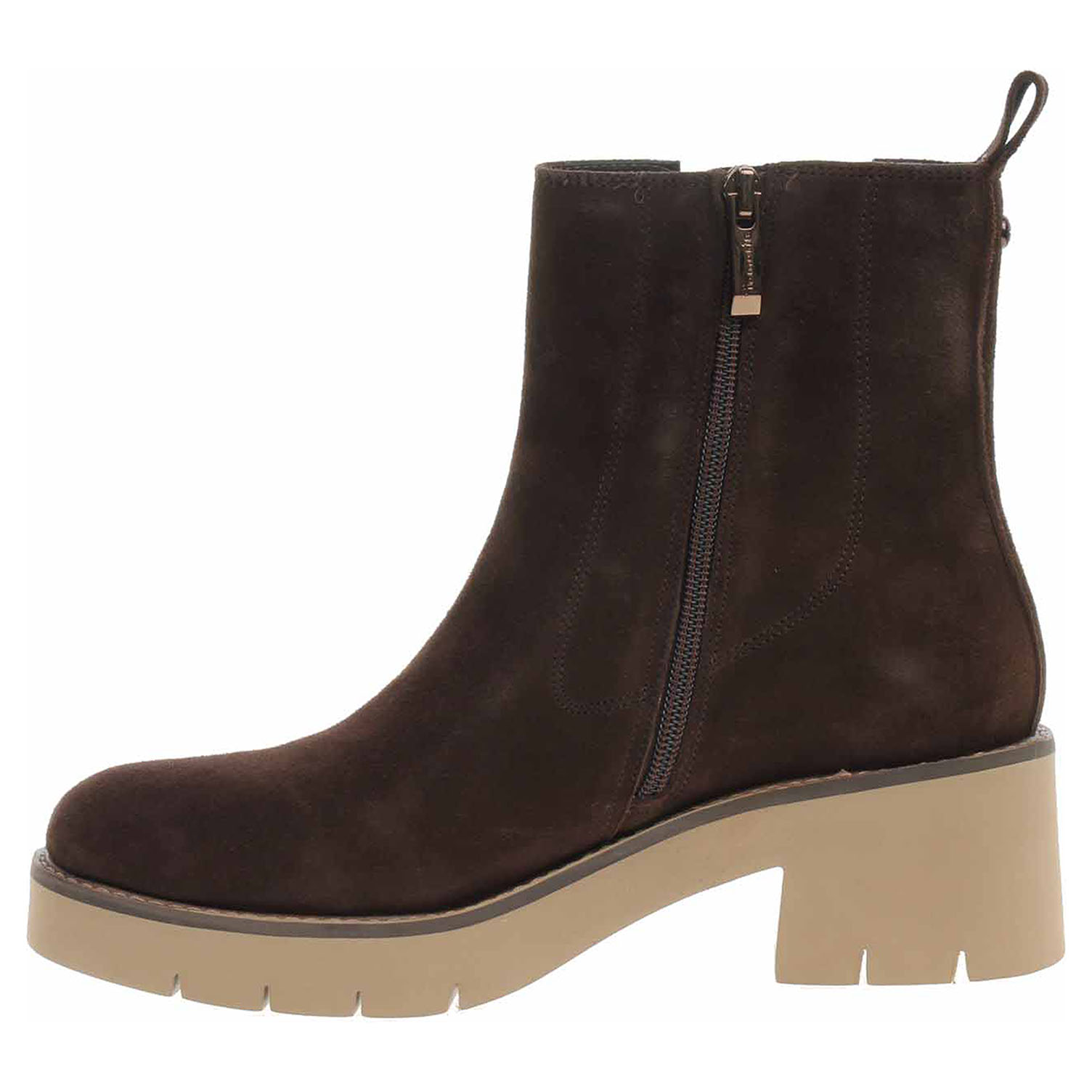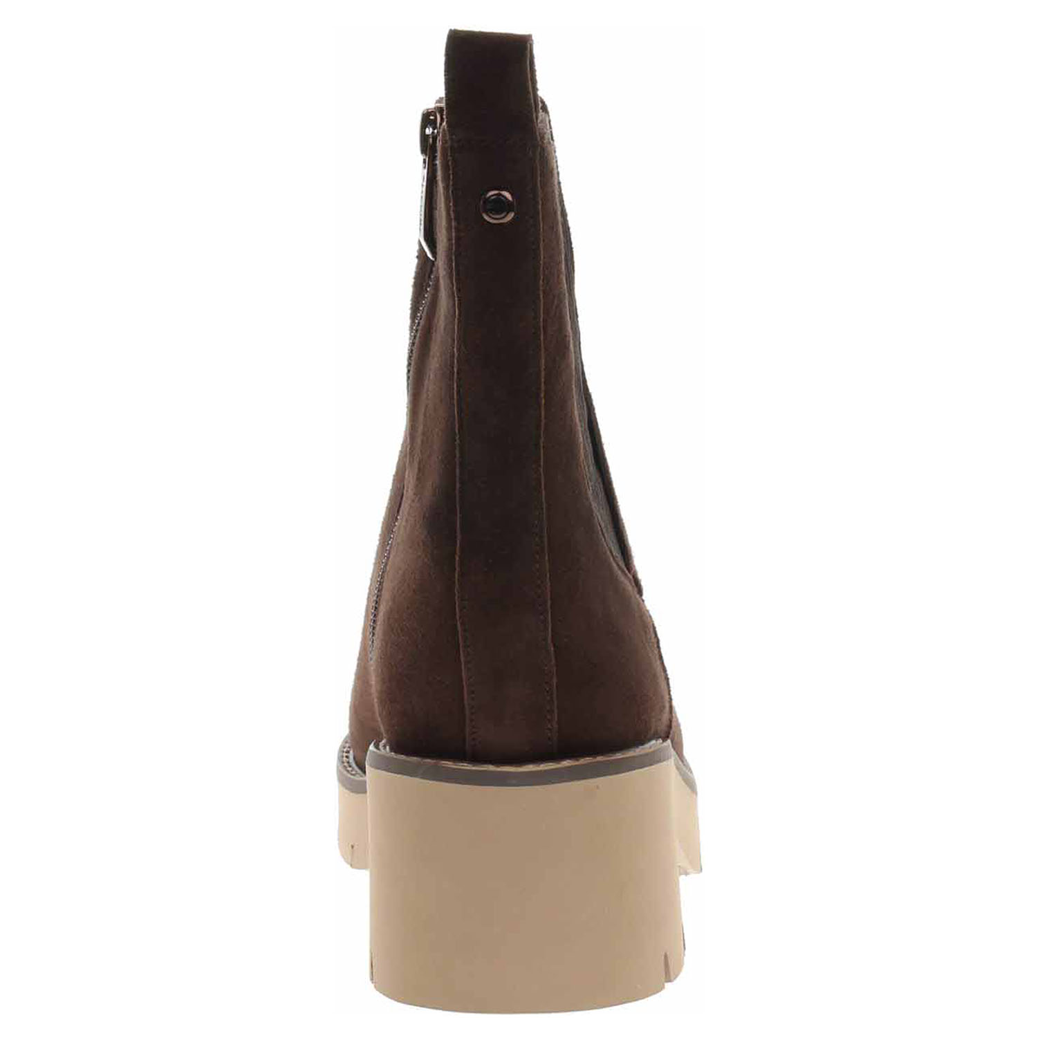 Boty Tamaris - lepené dámské polokozačky se svrškem z usně (semiš) a s vyměkčenou stélkou s textilní nášlapnou vrstvou jsou vyteplené textilní podšívkou s jemným chloupkem. Pohodlné nazouvání zajišťuje zip na vnitřní straně a vsazená gumička na vnější straně kotníku. Podpatek je vysoký 6,- cm a platforma je vysoká 2,- cm. Lepená obuv - pevnost lepeného spoje může být negativně ovlivněna promáčením nebo propocením, event. opakovaným používáním nedostatečně vysušené obuvi. Při neopatrné chůzi může dojít k mechanickému uvolnění lepeného spoje - ukopnutí.