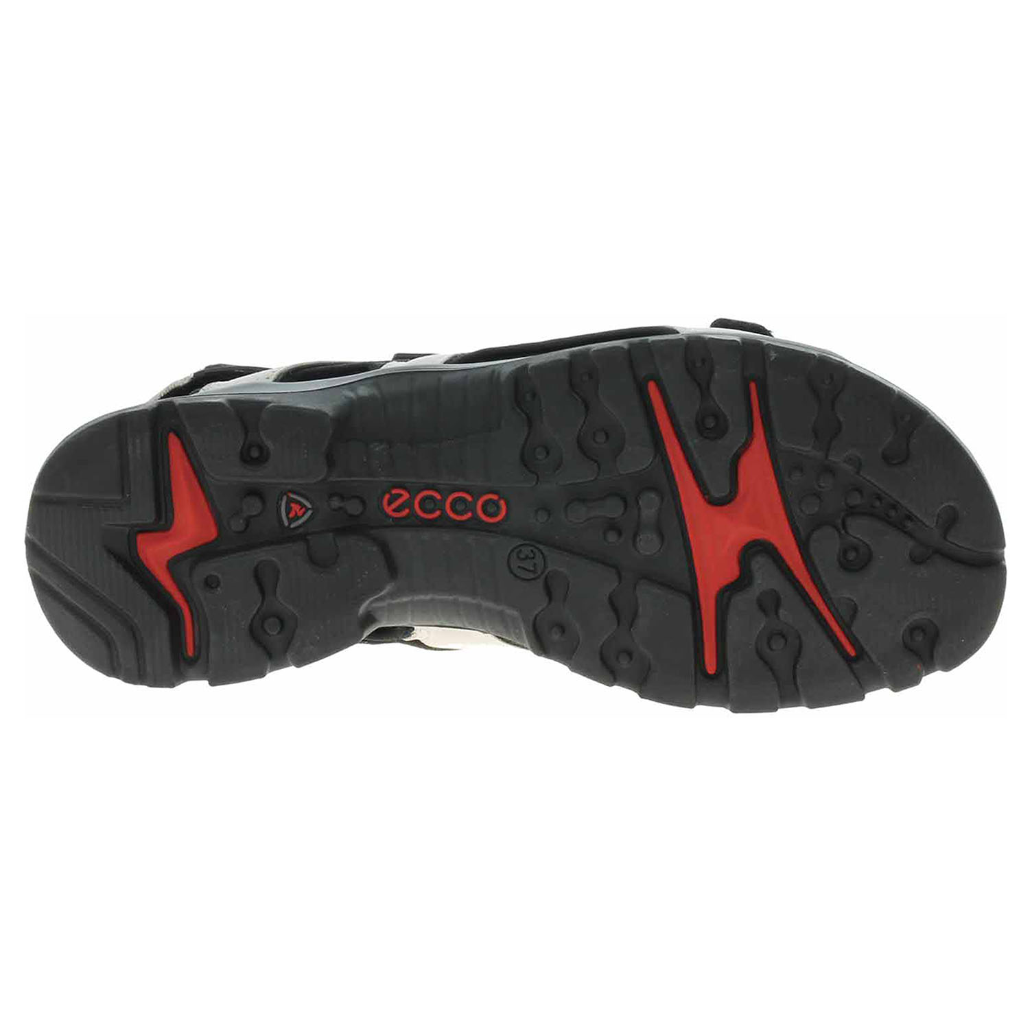 Boty Ecco Offroad - dámské sandály se svrškem z usně (jemný nubuk) a s textilní podšívkou i stélkou na klínku vysokém 3,- cm. Pásky přes nárt a přes patu se zapínají na suchý zip. Lehká stélka z lisované EVA pěny s měkkým potahem z mikrovlákna přináší optimální odpružení a vynikající stabilitu. Vstřikovaná PU podešev poskytuje odpružení a vynikající komfort při chůzi. Technologie ECCO RECEPTOR® zajišťuje vynikající stabilitu a dynamickou podporu od dopadu na zem po zvednutí chodidla. Odolná pryžová podešev pro mimořádnou přilnavost a trakci v jakémkoliv terénu.