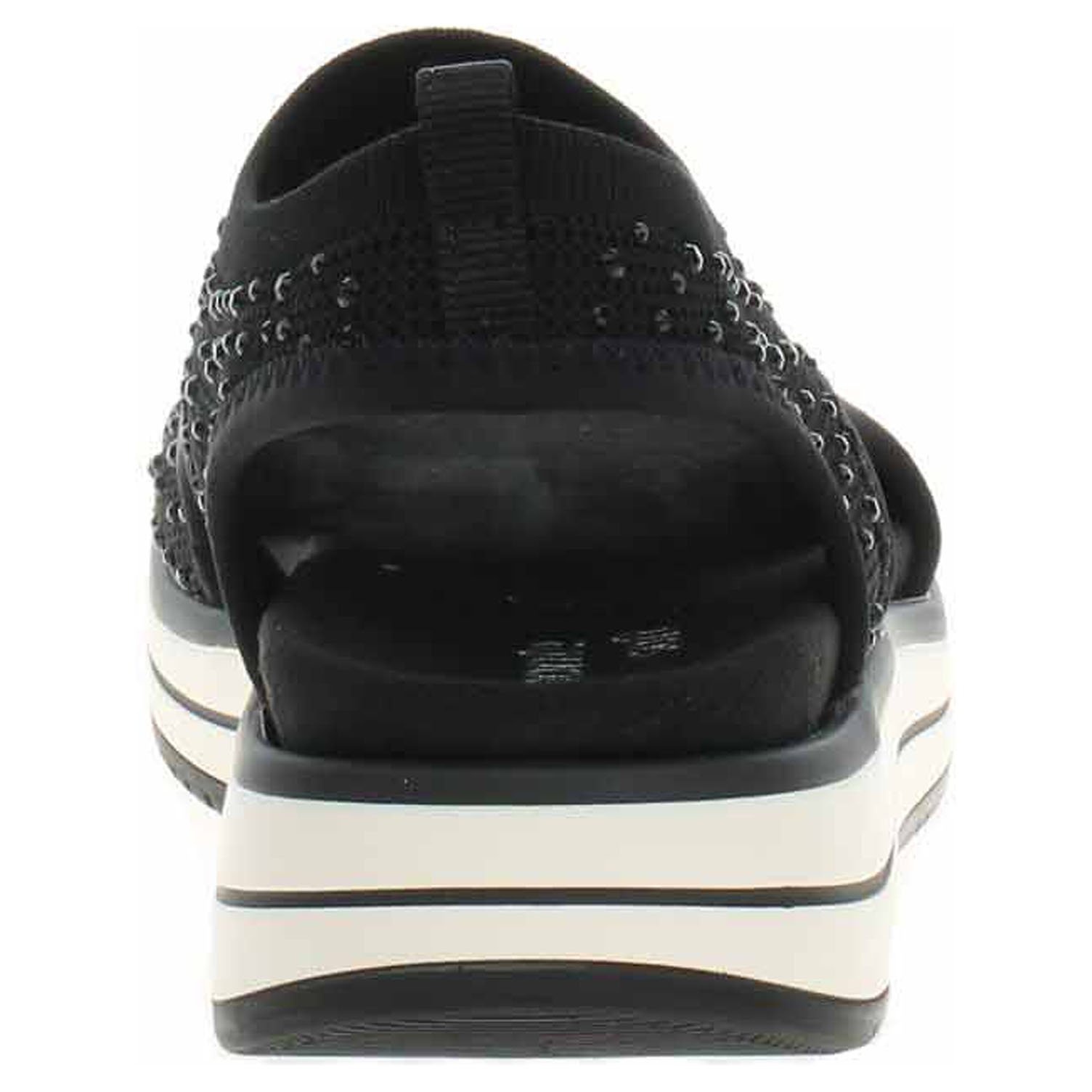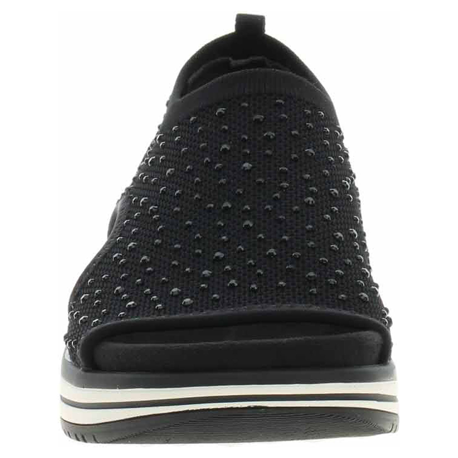 Boty Remonte - dámské sandály s textilním svrškem i podšívkou jsou vybavené tvarovanou, vyndavací stélkou s textilní nášlapnou vrstvou, která je k obuvi připevněna suchými zipy, takže je možno ji kdykoliv vyndat a očistit nebo usušit. Pružný svršek, který jemně obejme Vaši nohu, je ozdoben třpytivými kamínky, které jim dodávají stylový a zářivý vzhled. Lite´n Soft = chůze jak v oblacích - ultra lehká a protiskluzová podešev + velmi příjemné materiály + extra měkká komfortní stélka. Klínek je vysoký 3,5 cm a platforma je vysoká 2,5 cm.