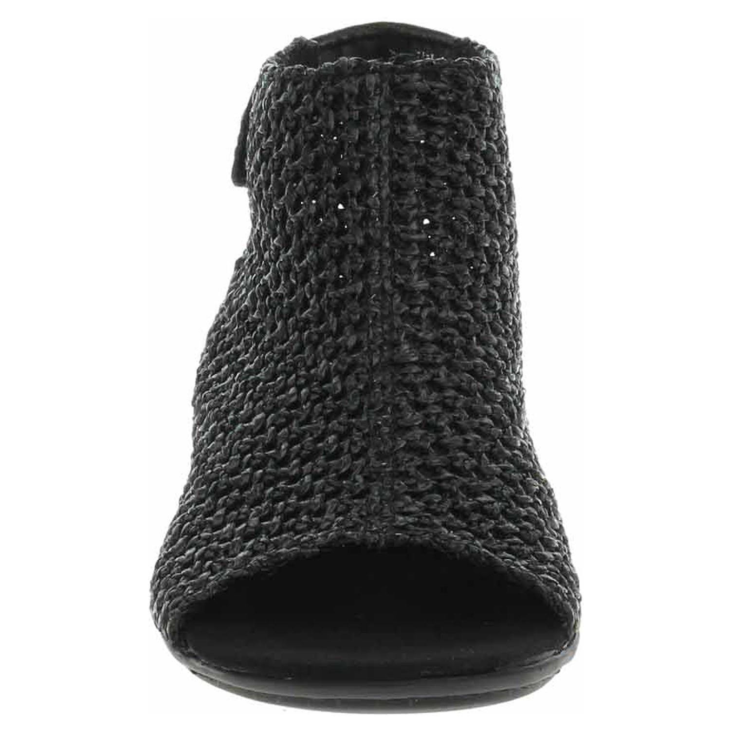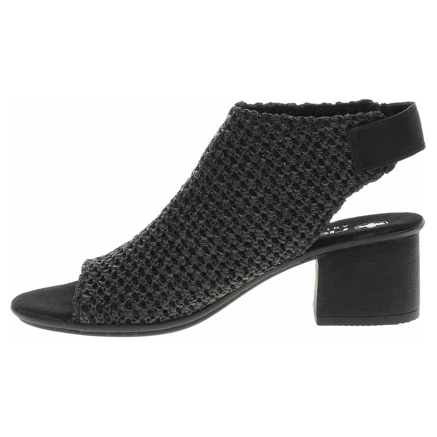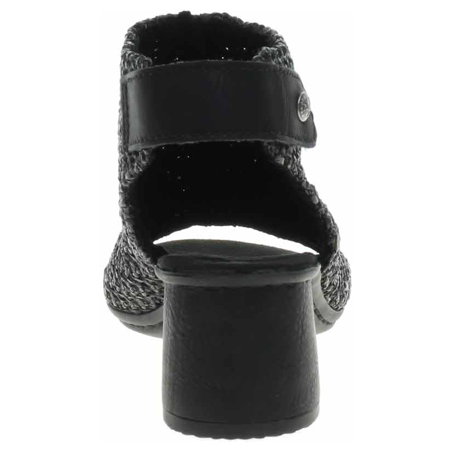 Boty Rieker - dámské sandály se svrškem, podšívkou i stélkou z textilu mají podpatek vysoký 5,- cm. Pásek přes patu se zapíná na suchý zip. Podešev je flexibilní a díky systému Antistress (lehkost, pružnost, prostornost a vynikající absorpce nárazů) Vám obuv zajistí pohodlí při každém kroku.