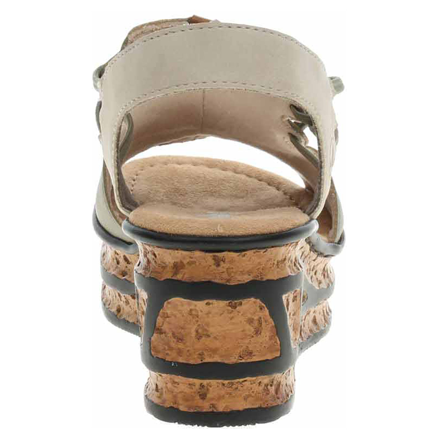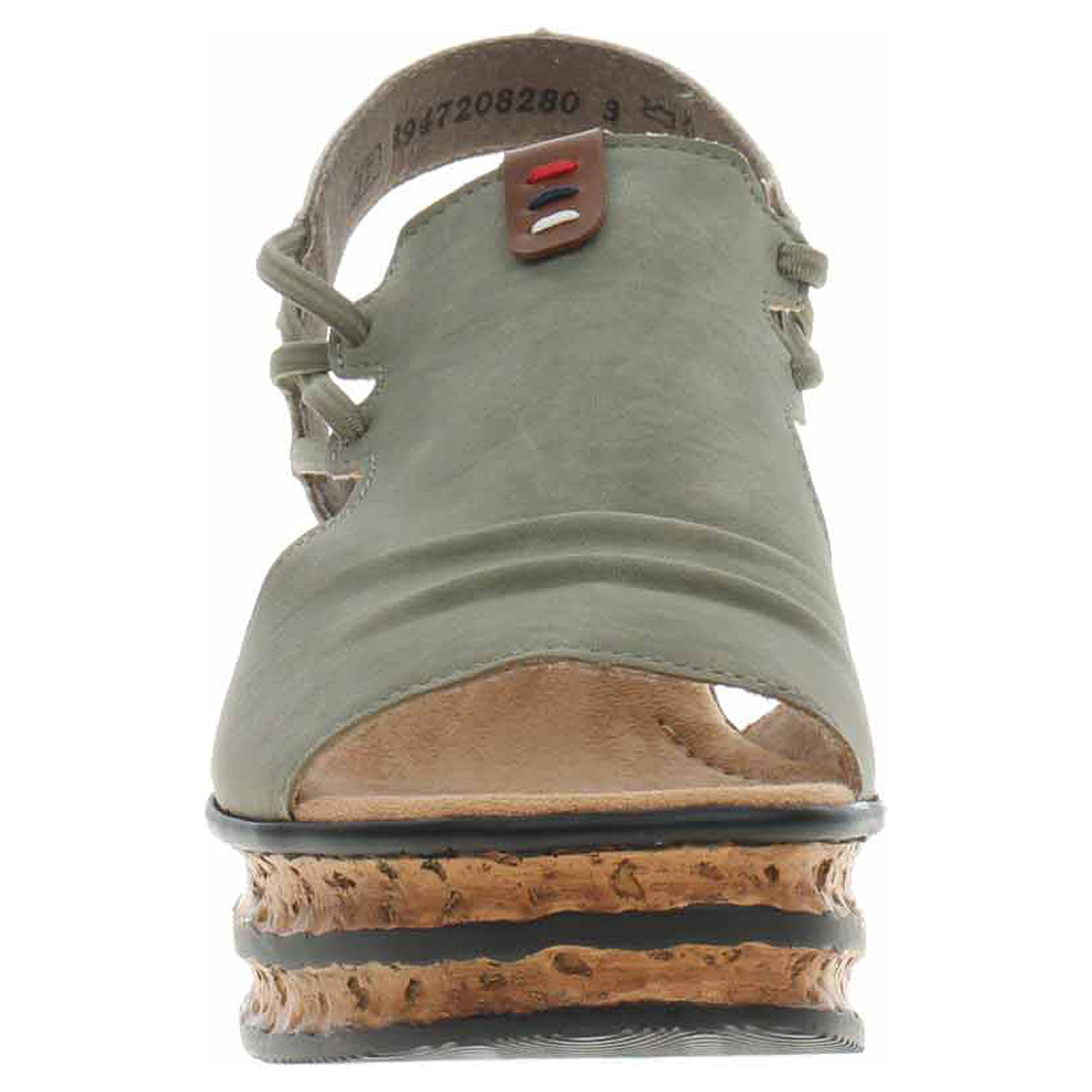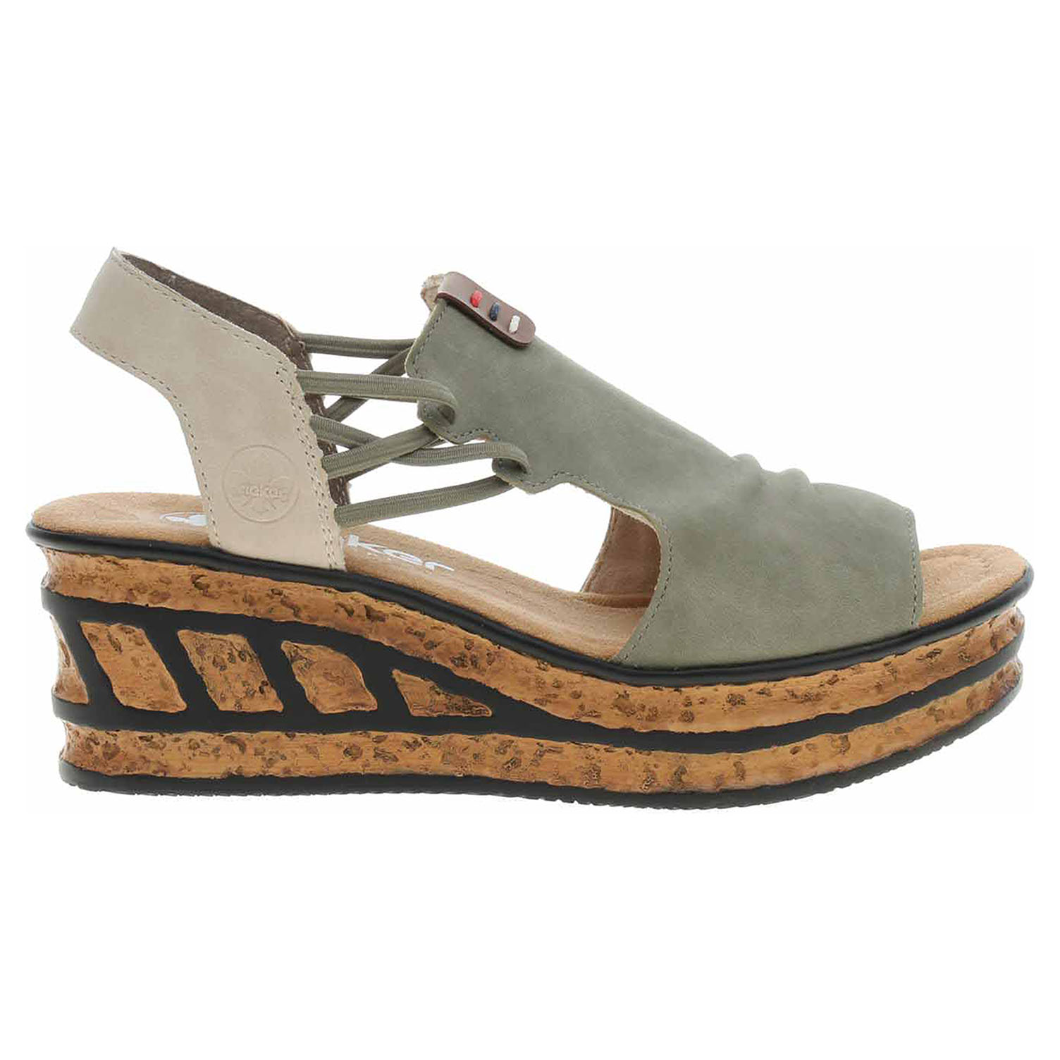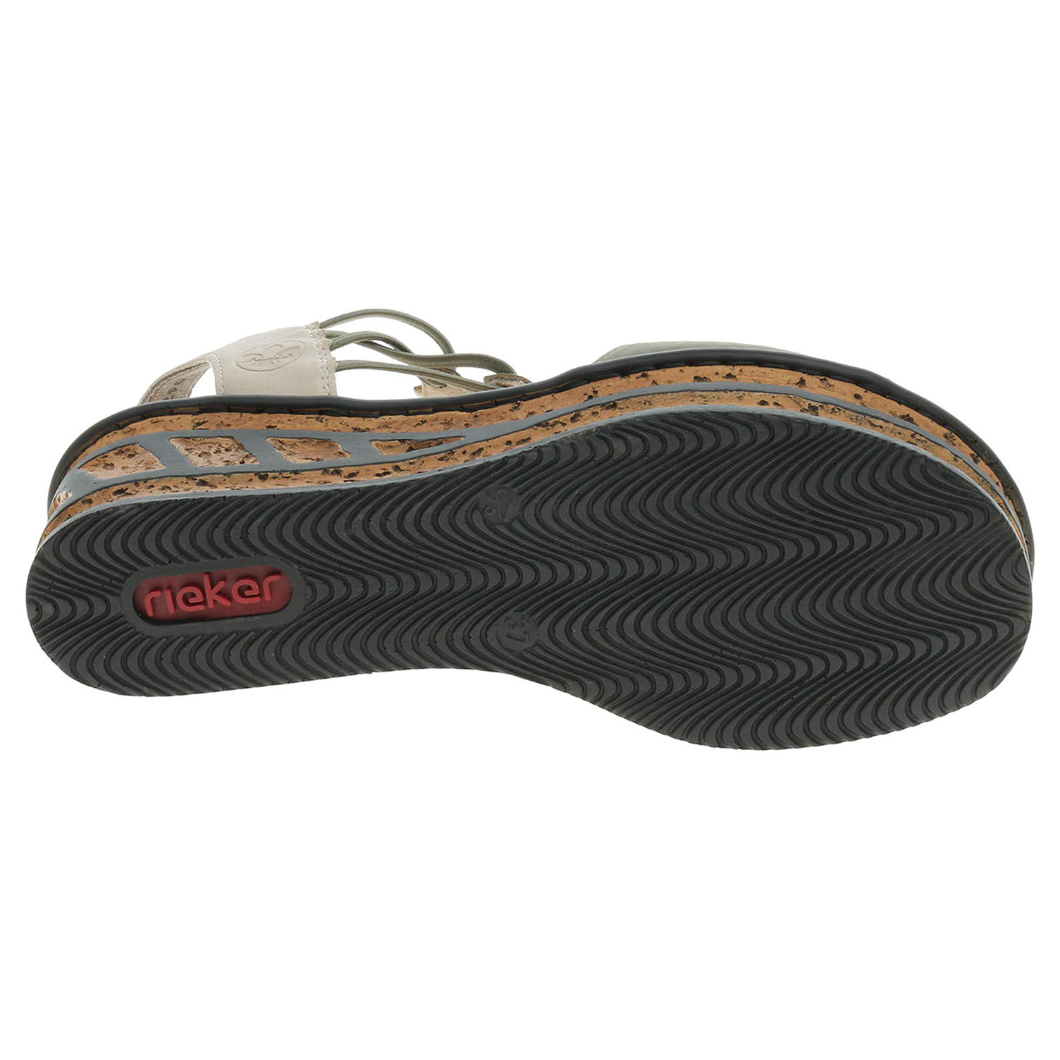 Boty Rieker - dámské sandály se svrškem ze syntetiky a s textilní podšívkou i stélkou mají klínek vysoký 6,- cm a platformu 3,- cm. Gumičky na vnější i na vnitřní straně kotníku umožňují pohodlné nazouvání a zajišťují vyšší stabilitu nohy v obuvi. Podešev je flexibilní a díky systému Antistress (lehkost, pružnost, prostornost a vynikající absorpce nárazů) Vám obuv zajistí pohodlí při každém kroku.