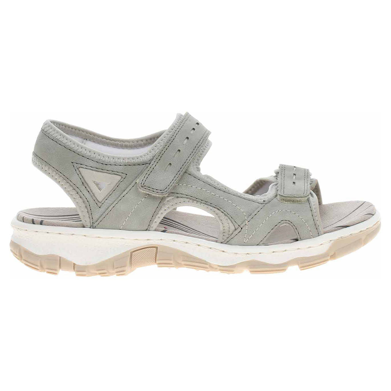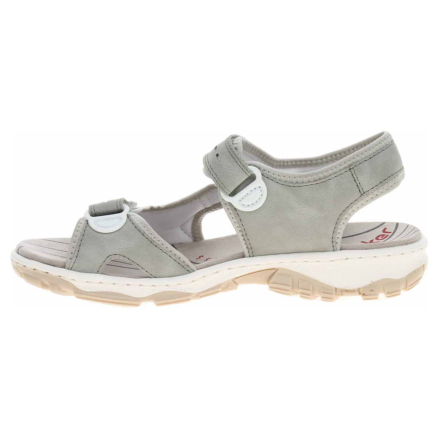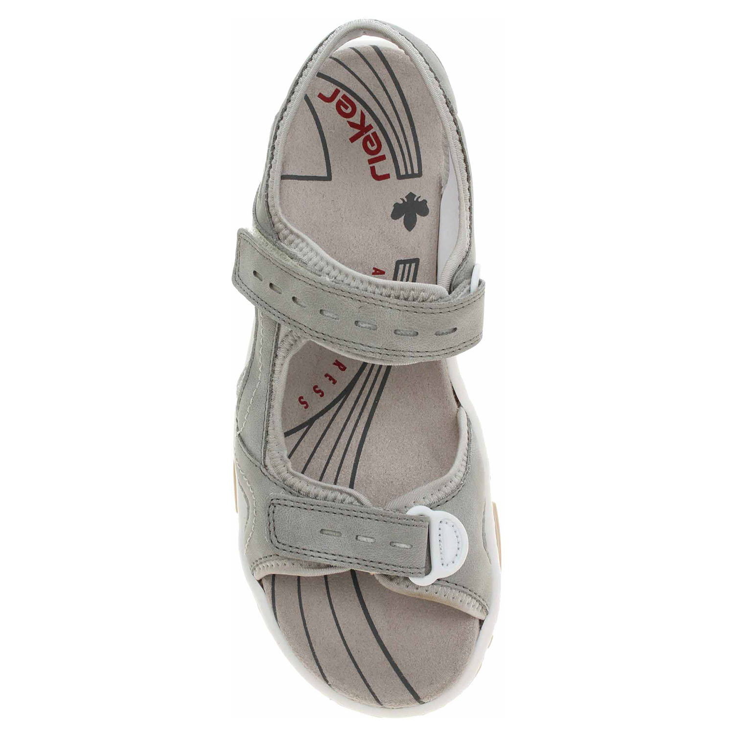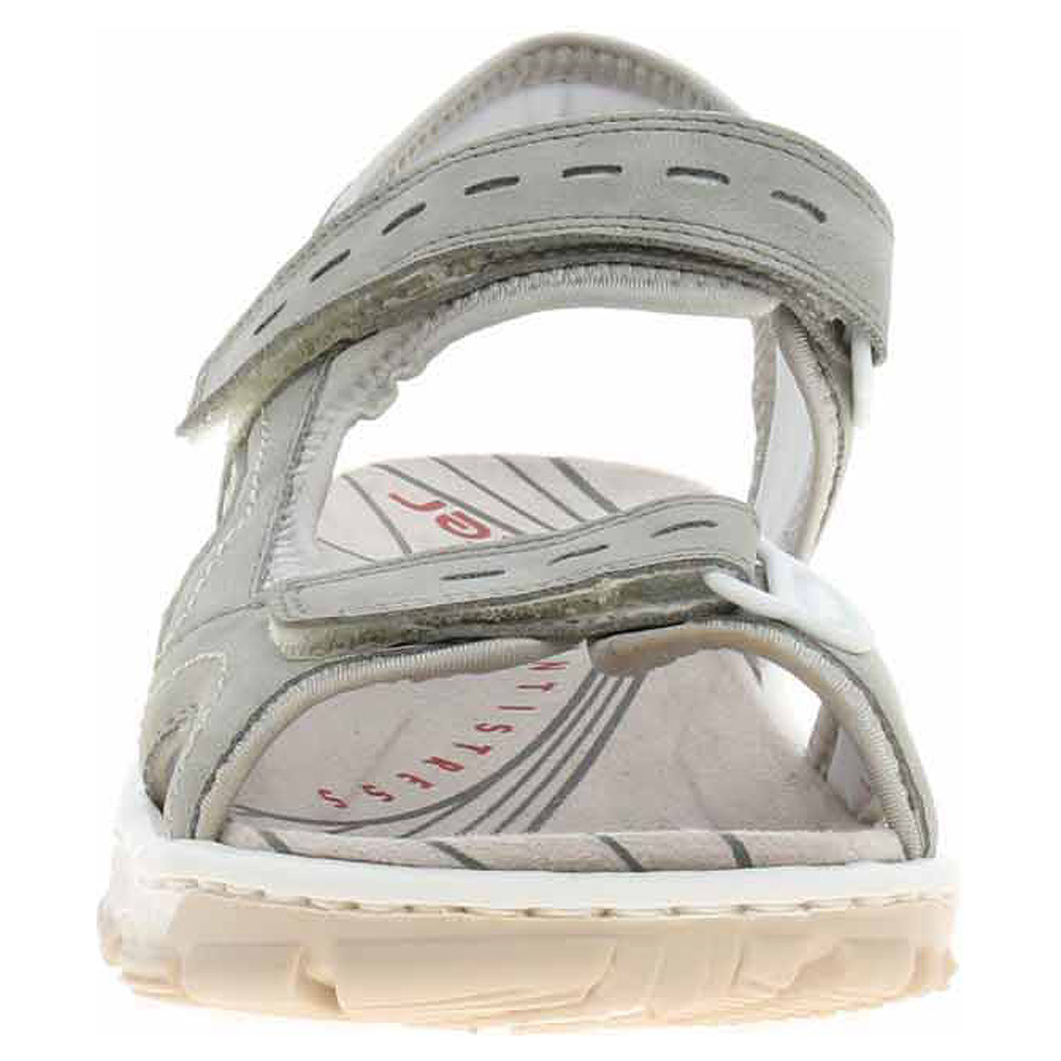 Boty Rieker - dámské sandály se svrškem kombinovaným syntetika/textil a s textilní podšívkou i stélkou. Pásky přes špičku a nárt se zapínají na suchý zip. Podešev je flexibilní a díky systému Antistress (lehkost, pružnost, prostornost a vynikající absorpce nárazů) Vám obuv zajistí pohodlí při každém kroku.