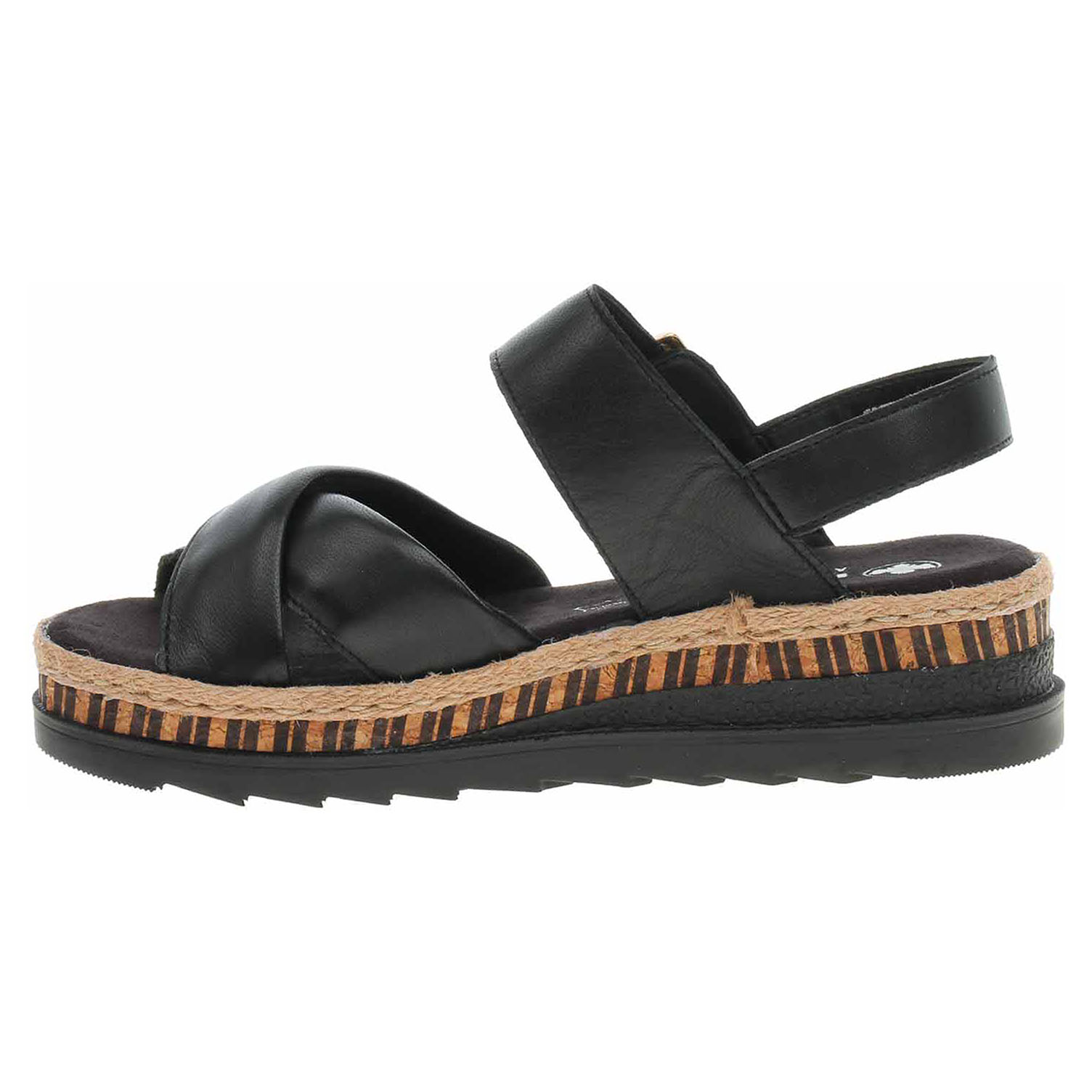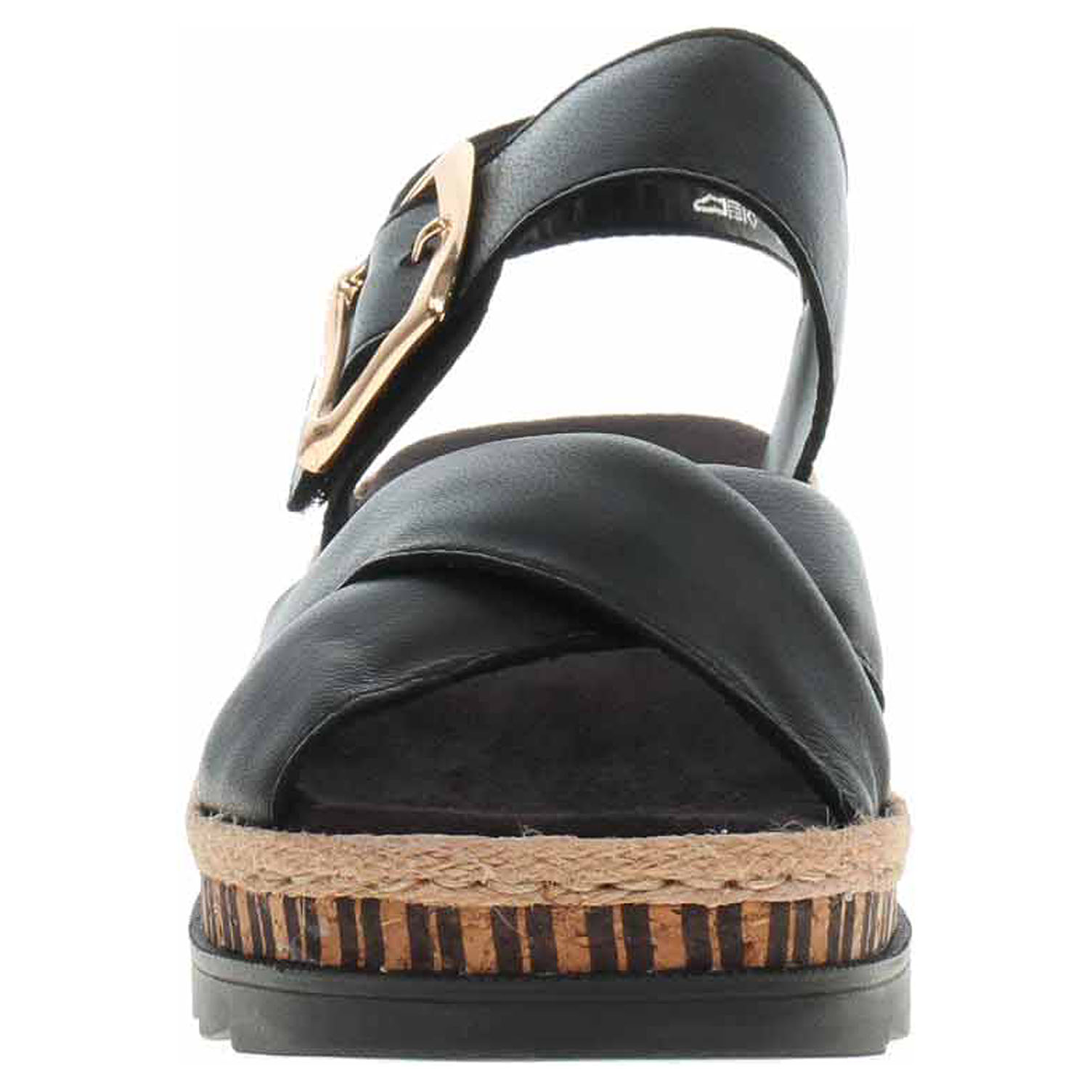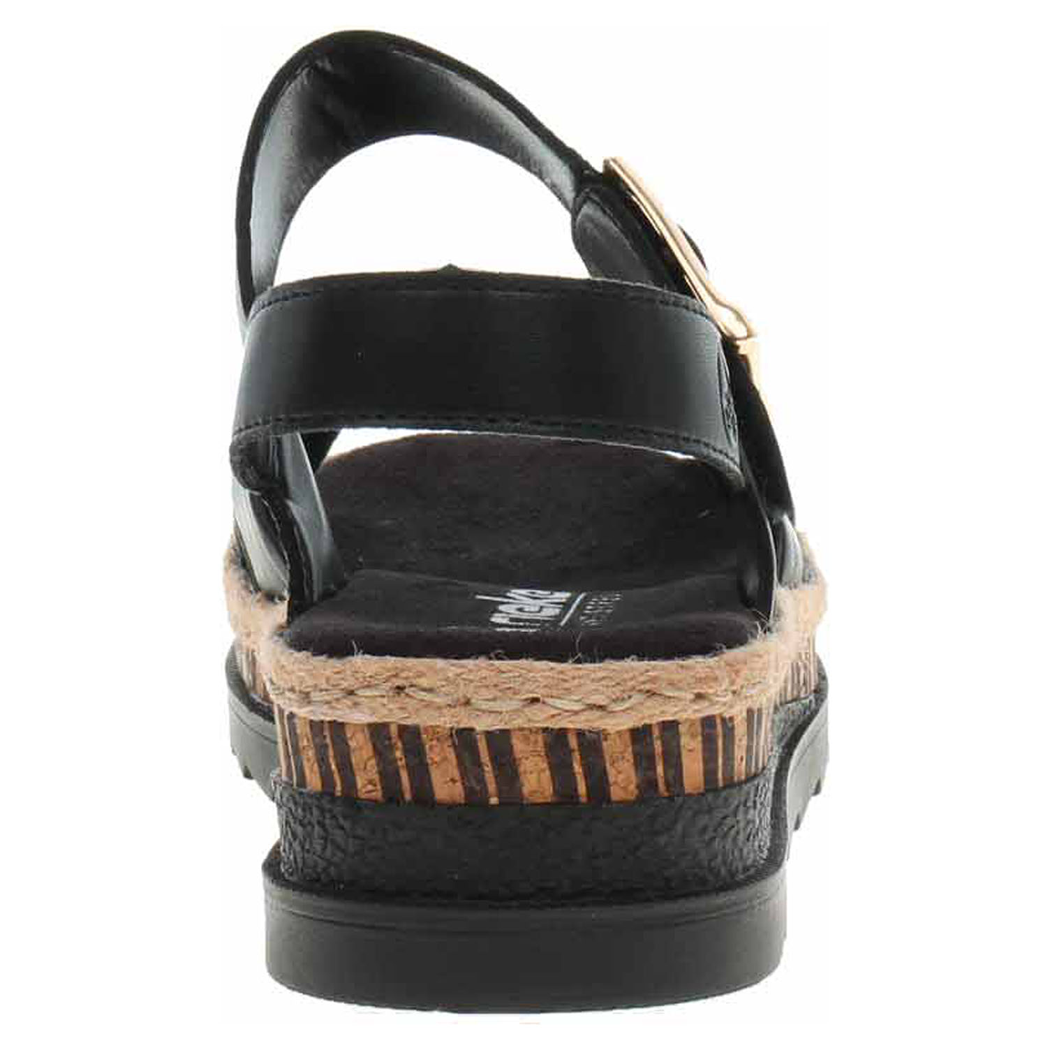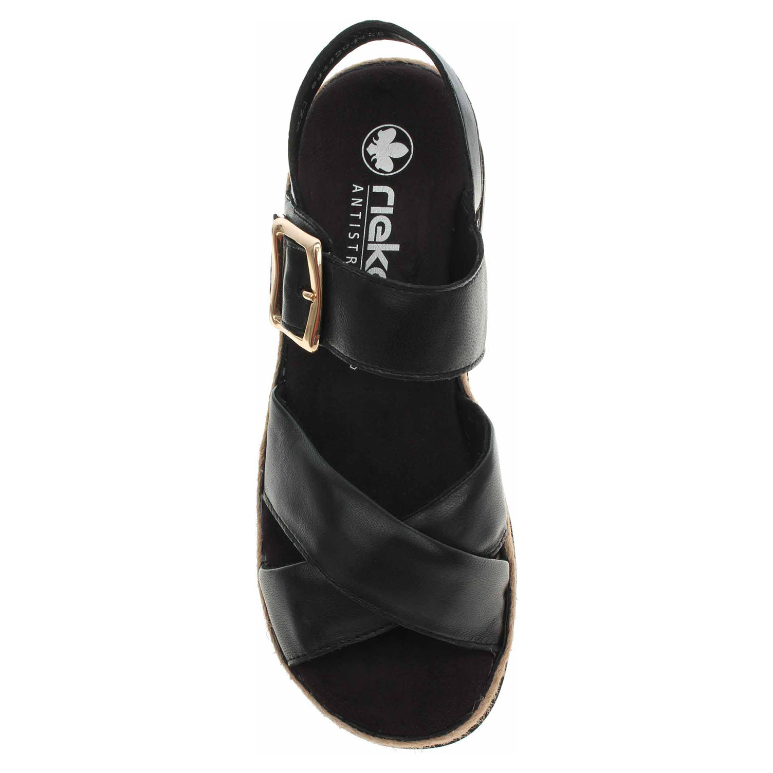Boty Rieker - dámské sandály se svrškem z usně a s podšívkou ze syntetiky mají vyměkčenou stélku s textilní nášlapnou vrstvou. Klínek je vysoký 4,5 cm a platforma je vysoká 2,5 cm. Pásek přes nárt se zapíná na suchý zip. Podešev je flexibilní a díky systému Antistress skvěle tlumí nárazy a otřesy.