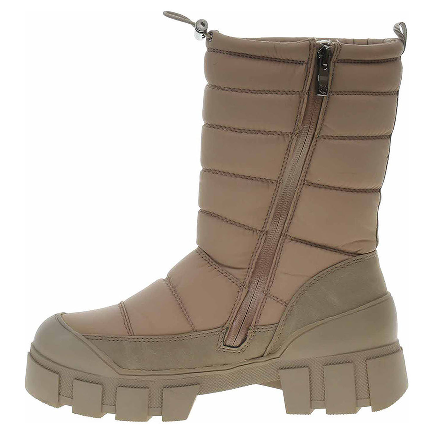 Boty Caprice - lepené dámské městské sněhule se zipem jsou vybavené vodoodpudivou Tex membránou a jsou určené pouze pro městský provoz. Obuv se svrškem kombinovaným syntetika/textil a stélkou Climotion nepoužívejte na horách. CLIMOTION ® je zkratka pro CLI (klima), MOTION a EMOTION. CLIMOTION ® nastavuje nový milník v oblasti inovativní a dokonalé chůze a nabízí jedinečnou kombinaci měkkosti, pružnosti, odpružení a regulace klimatu, která zajišťuje nesrovnatelný zážitek z chůze. Díky kombinaci nově vyvinutého materiálu a elastické voštinové struktury s paměťovým efektem se podrážka ergonomicky přizpůsobí tvaru vašeho chodidla. Obuv je vyteplená textilní podšívkou s chloupkem a je vybavená vyndavací stélkou. Vyměnitelné vložky do bot je možné vyndat za účelem provětrání a omytí. Značnou výhodu nabízejí vyměnitelné vložky do bot také těm uživatelům, kteří používají ortopedické vkládací stélky. Klínek je vysoký 5,- cm a platforma je vysoká 3,- cm. 100% VEGAN = při výrobě obuvi nebyly použity žádné materiály ze zvířat. Lepená obuv - pevnost lepeného spoje může být negativně ovlivněna promáčením nebo propocením, event. opakovaným používáním nedostatečně vysušené obuvi. Při neopatrné chůzi může dojít k mechanickému uvolnění lepeného spoje - ukopnutí.