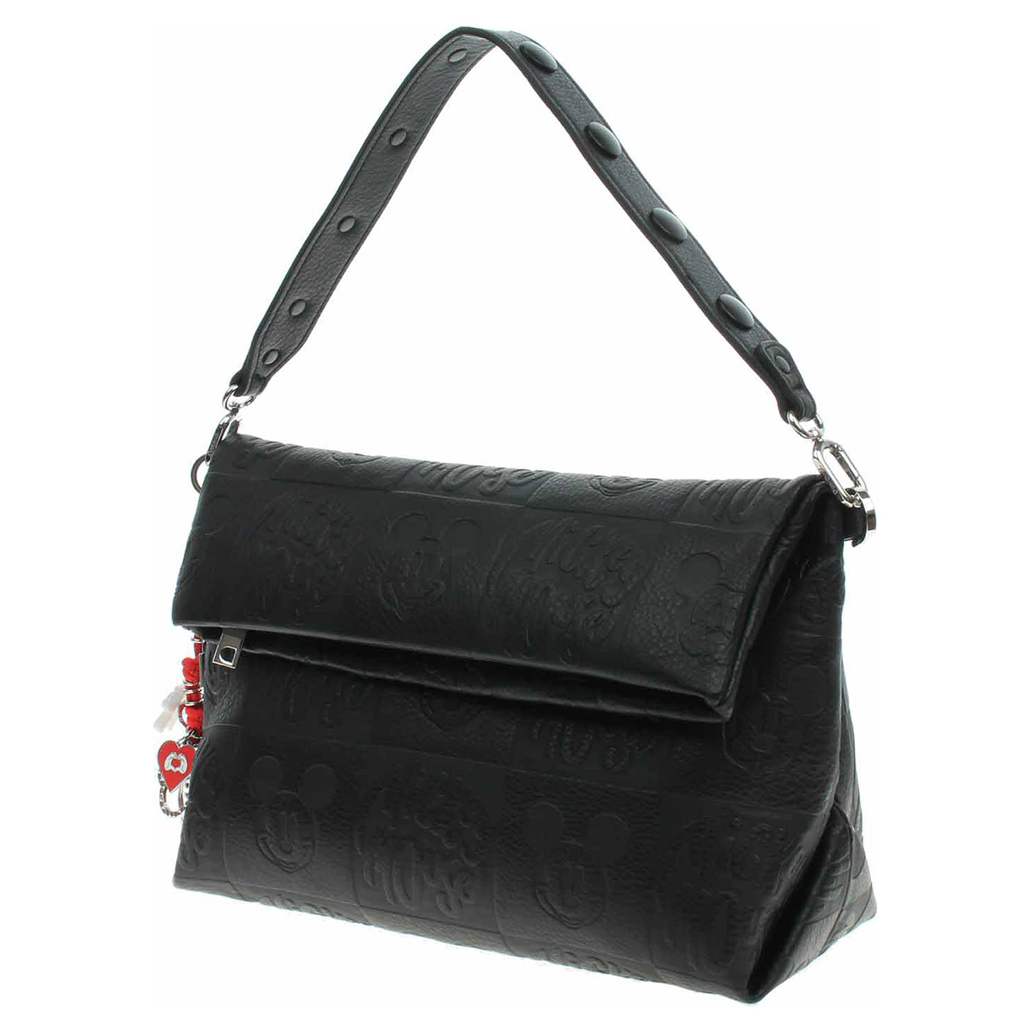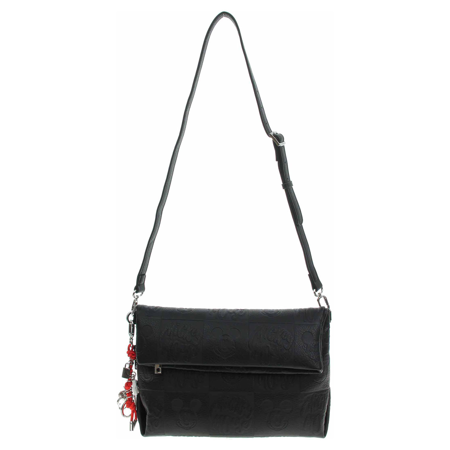 Desigual All Mickey Loverty 4.0 - dámská klopnová kabelka se zapínáním na magnet s odnímatelným přívěškem je vyrobená ze 100% polyuretanu a podšívka je ze 100% polyesteru. Klopna se zapíná na zip. Rozměry: 30 x 12 x 19 cm. Kabelku je možno nosit v ruce na odnímatelném uchu s karabinkami (výška 17 cm) nebo přes rameno na regulovatelném popruhu, který je dá odepnout. Na zadní straně kabelky je jedna kapsa se zapínáním na zip. Vnitřní výbava: 1x kapsa se zipem.
