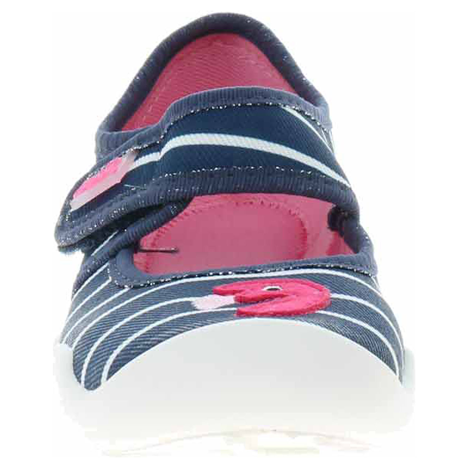 Boty Befado - dívčí domácí bačkory s textilním svrškem jsou vybavené vyměkčenou stélkou Soft-B system a dýchající podešví. Pásek přes nárt zajišťuje stabilitu nohy v obuvi a zapíná se na suchý zip. Dětská obuv - je vzhledem ke způsobu užívání vystavena většímu mechanickému poškození - okopání. Mechanické poškození není důvodem k reklamaci.