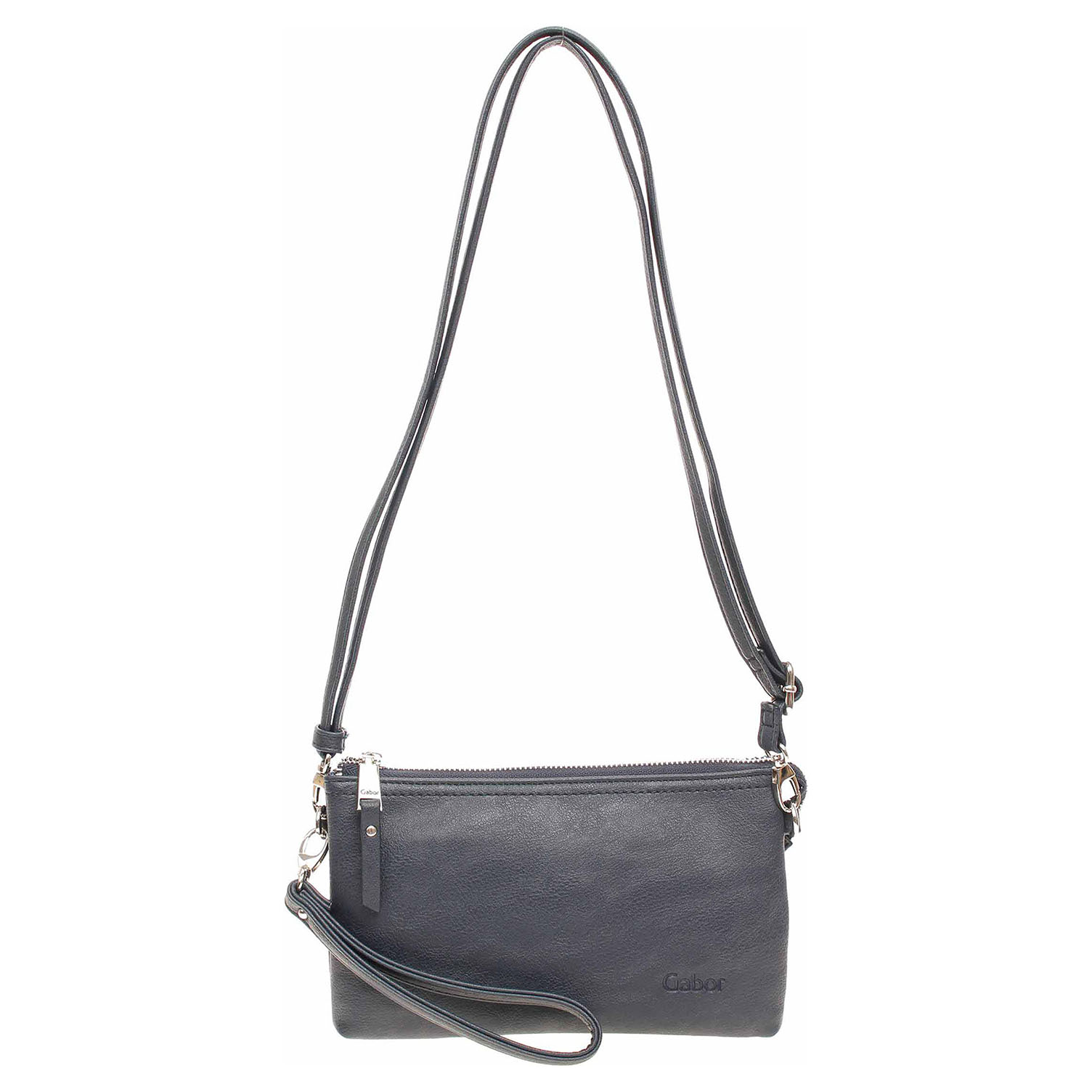 Gabor - dámská dvoukomorová kabelka 4v1 ze syntetického materiálu se zapínáním na zip. Kabelku je možno nosit na regulovatelném popruhu přes rameno, také crossbody, dále jako psaníčko nebo jako etui k cestovní tašce. Rozměry - 22,5 x 13,5 x 4,5 cm. Vnitřní vybavení: mezi komorami je kapsa bez zapínání a uvnitř komor se nacházi kapsa se zipem a čtyři menší kapsičky bez zapínání.