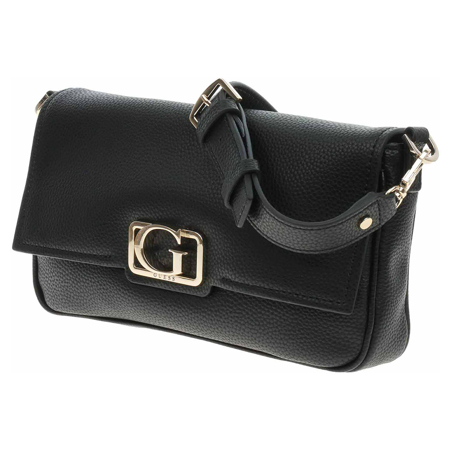 Guess - dámská klopnová kabelka Circe z polyuretanu a s podšívkou z polyesteru s personalizovaným logem se zapíná na magnet. Klopna je ozdobená logem. Zipy a kování jsou ve zlaté barvě. Kabelku s rozměry 26 x 16 x 5 cm je možno nosit přes rameno na odnímatelném regulovatelném popruhu (délka 110-130 cm) nebo jen v ruce za odepínatelnou rukoje't (délka cca 45 cm). Vnitřní výbava: kapsa se zipem. Údržba: Neumývejte. Uchovávejte v přiloženém dustbagu. Pro správnou péči o toto příslušenství postupujte podle pokynů na štítku.