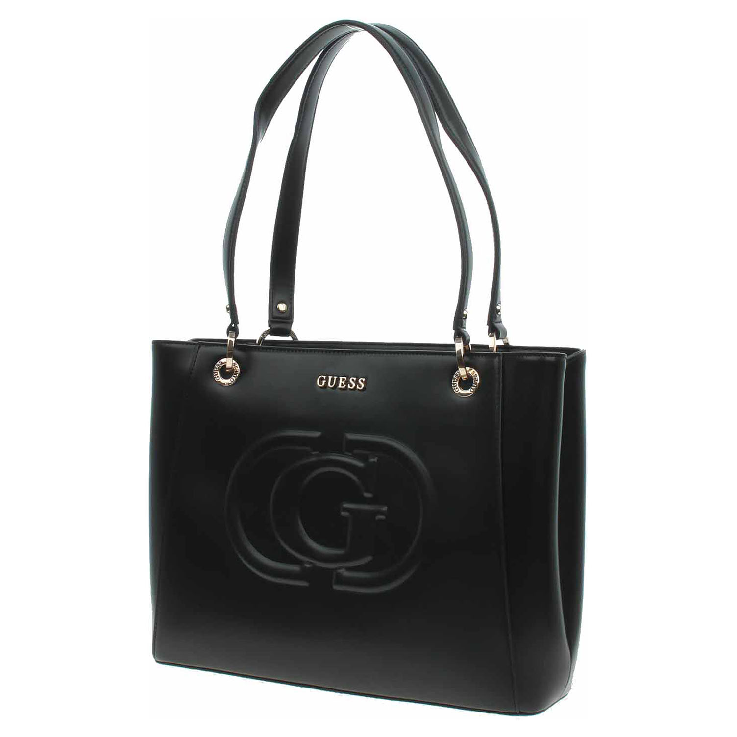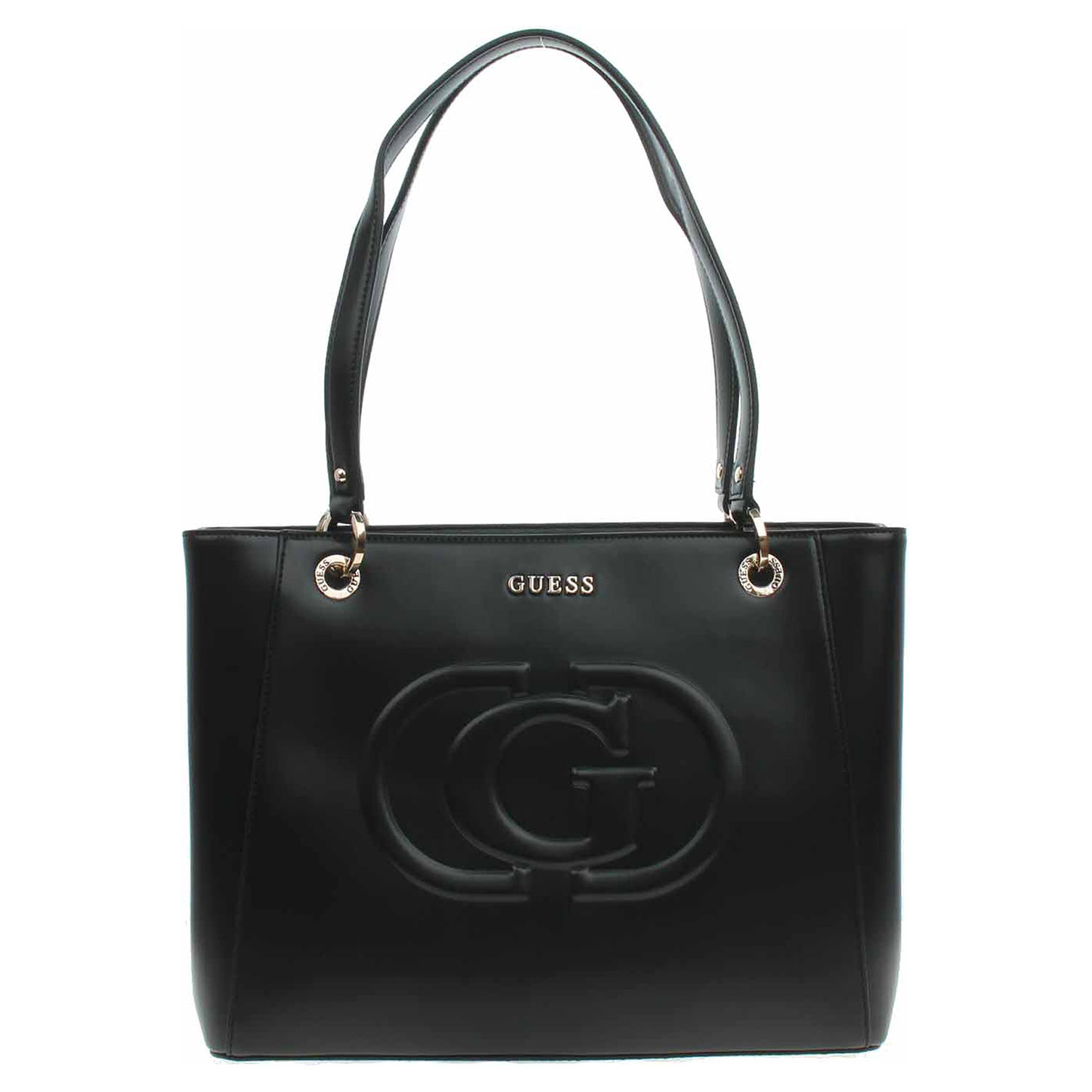 Guess - dámská dvokomorová kabelka se zapínáním na zip je vyrobená ze 100% polyuretanu (podšívka 100% polyester). Rozměry: - 26 x 10 x 36 cm. Zip, logo, nýtky, kroužky i kovové nožičky jsou z leštěného kovu zlaté barvy. Kabelku je možno nosit v ruce nebo přes rameno (výška ucha 25 cm). Vnitřní výbava: 1x kapsa se zipem, 2x kapsička bez zapínání. Součástí balení je praktický dustbag pro uložení kabelky.