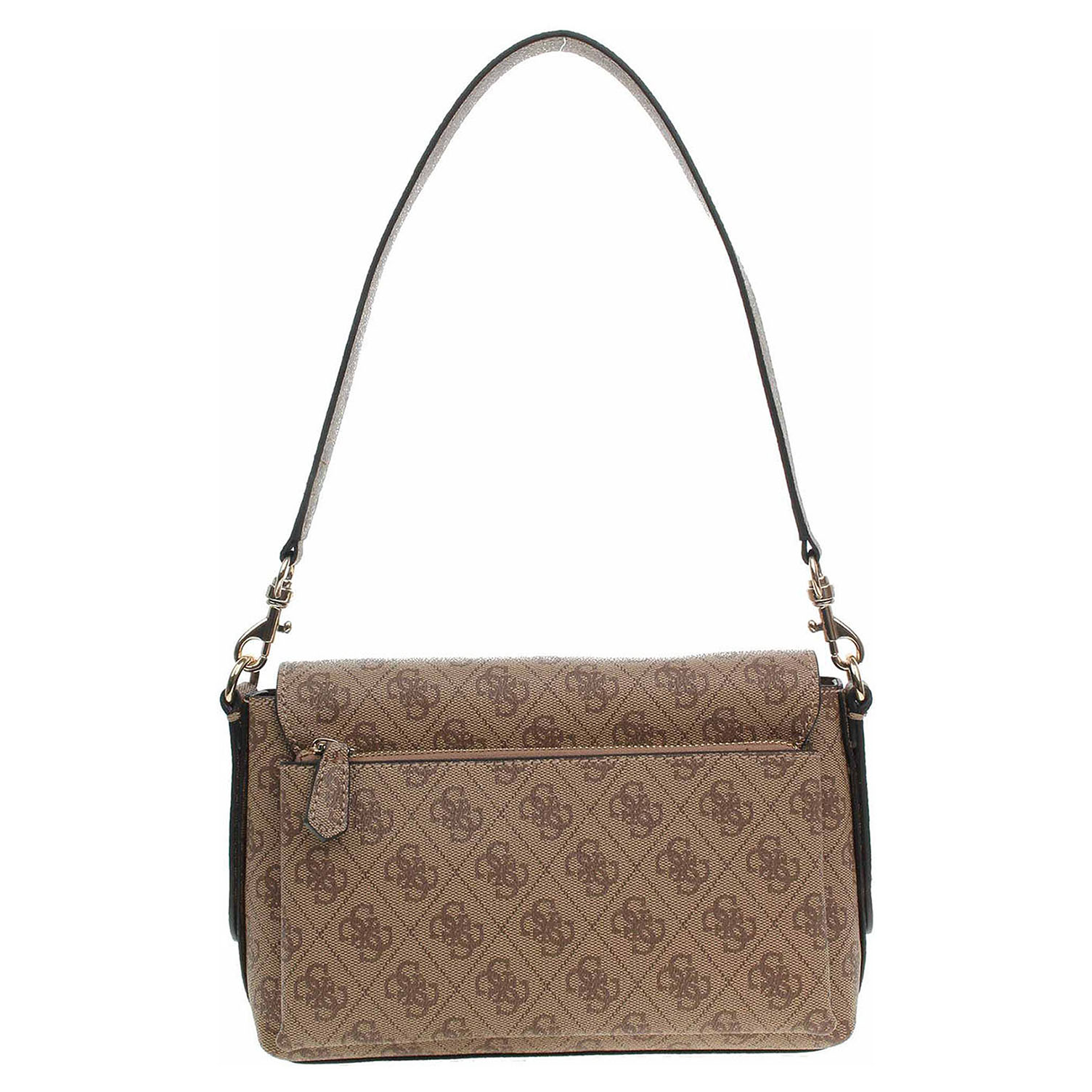 Guess - dámská kabelka z polyuretanu a s podšívkou z polyesteru má rozměry 24 x 9 x 15 cm. Klopna ozdobená zlatým logem se zapíná na magnet. Zipy a kování jsou ve zlaté barvě. Na zadní straně kabelky je kapsa se zipem. Kabelku je možno nosit přes rameno na odnímatelném regulovatelném popruhu nebo jen v ruce za odepínatelné ucho (výška cca 22 cm - délka cca 50 cm).Vnitřní výbava: pod klopnou se nachází kapsa bez zapínání a v hlavní komoře je kapsa se zipem. Údržba: Neumývejte. Uchovávejte v přiloženém dustbagu. Pro správnou péči o toto příslušenství postupujte podle pokynů na štítku.
