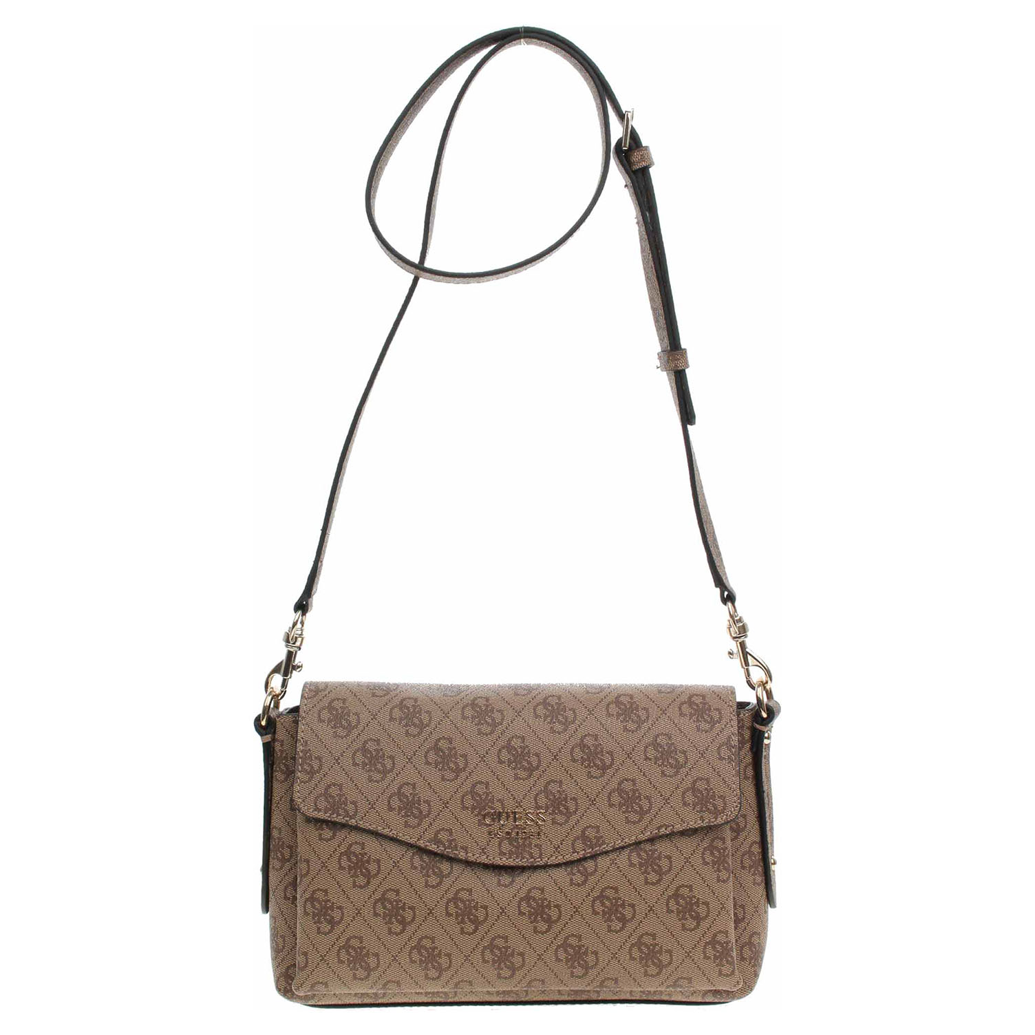 Popis:Guess - dámská kabelka z polyuretanu a s podšívkou z polyesteru má rozměry 24 x 9 x 15 cm. Klopna ozdobená zlatým logem se zapíná na magnet. Zipy a kování jsou ve zlaté barvě. Na zadní straně kabelky je kapsa se zipem. Kabelku je možno nosit přes rameno na odnímatelném regulovatelném popruhu nebo jen v ruce za odepínatelné ucho (výška cca 22 cm - délka cca 50 cm).Vnitřní výbava: pod klopnou se nachází kapsa bez zapínání a v hlavní komoře je kapsa se zipem. Údržba: Neumývejte. Uchovávejte v přiloženém dustbagu. Pro správnou péči o toto příslušenství postupujte podle pokynů na štítku.