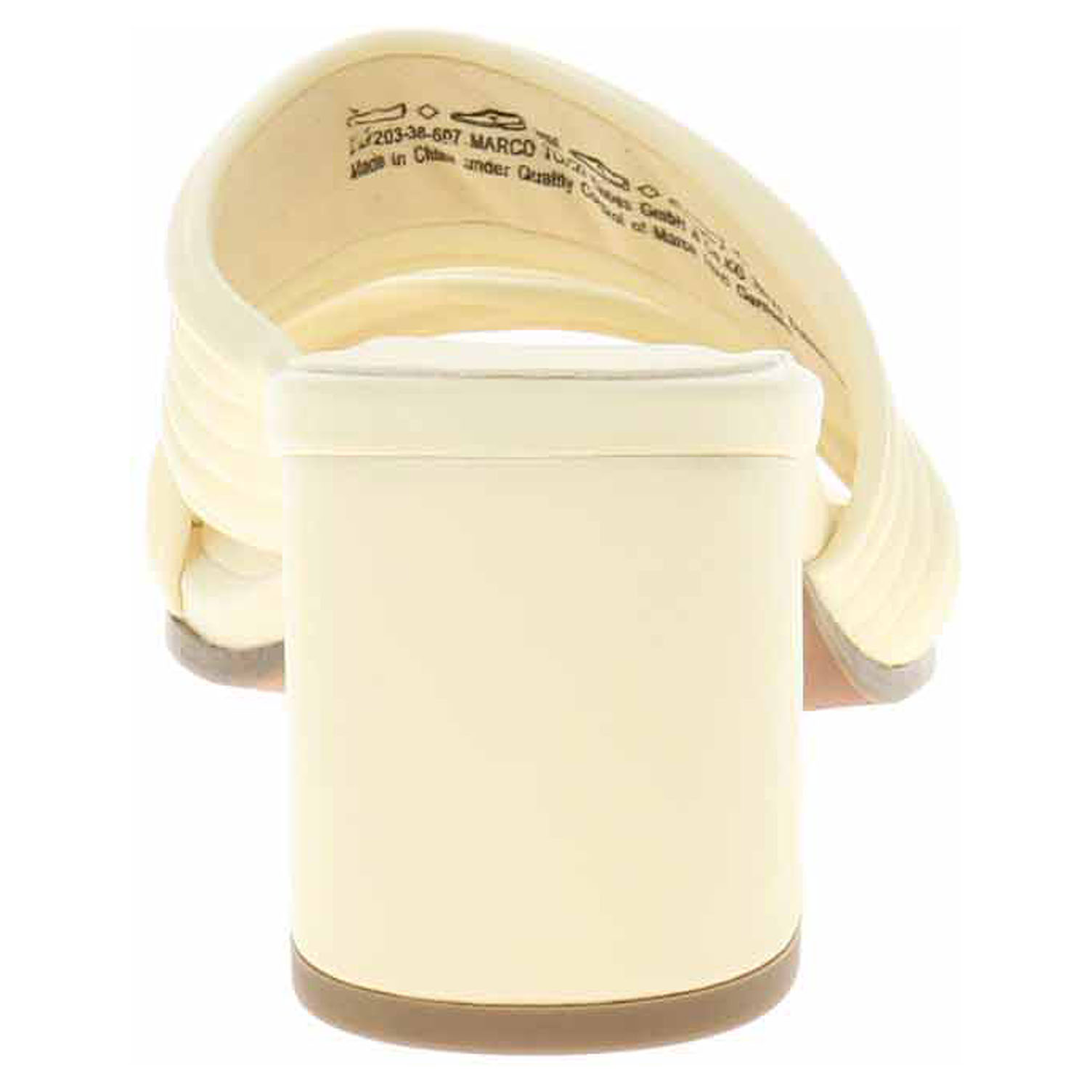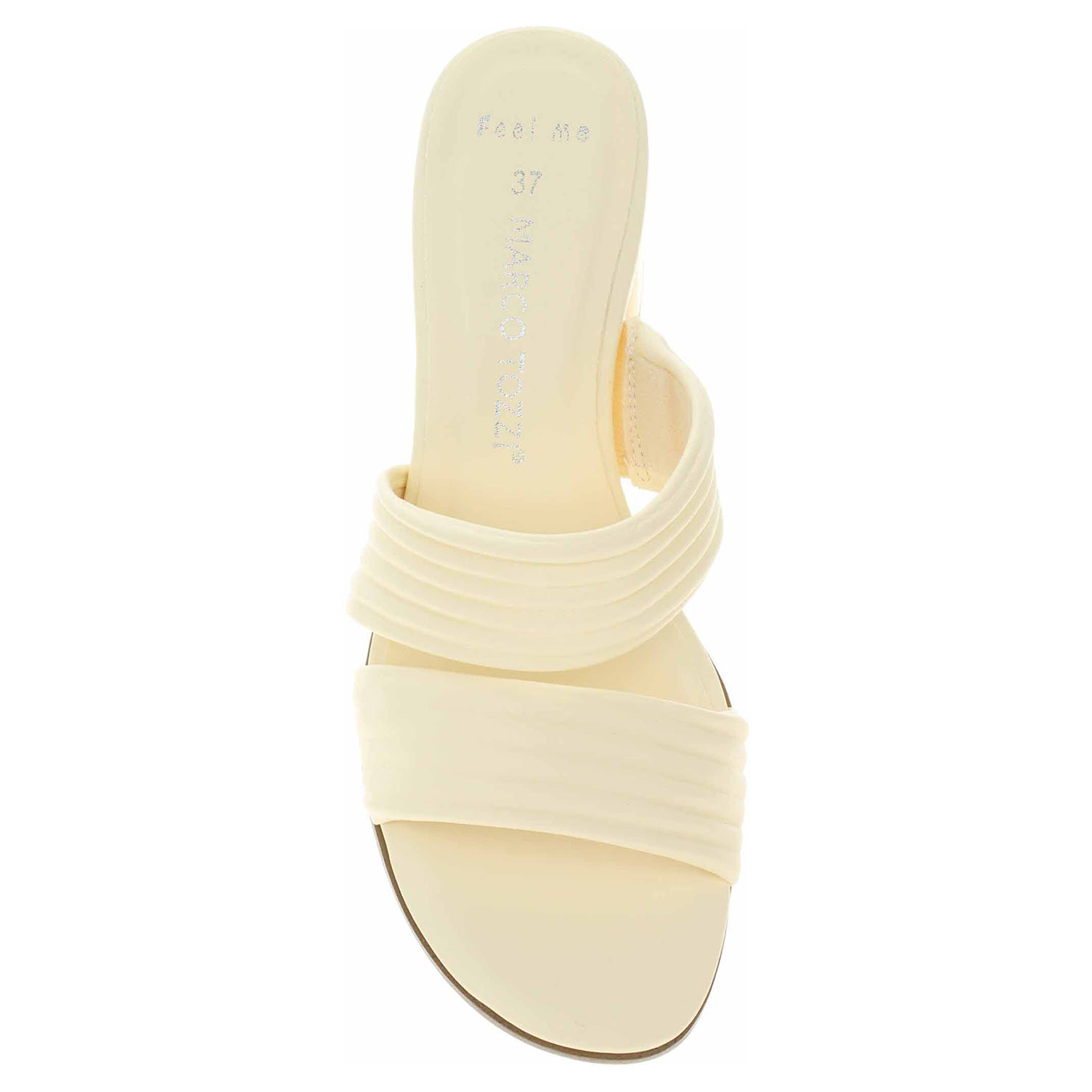 Boty Marco Tozzi - módní dámské vycházkové pantofle se svrškem i stélkou ze syntetiky. Pásek přes nárt je na vnitřní straně vybavený vsazenou gumičkou. Obuv je vybavená stélkou Feel me, která se přizpůsobuje vašemu chodidlu a zajišťuje optimální komfort při chůzi. Podpatek je vysoký 6,5 cm. Módní obuv - je určena pro krátkodobé nošení v nenáročných podmínkách. Prvořadá je módnost nikoliv životnost. Obuv není vhodná pro každodenní používání.