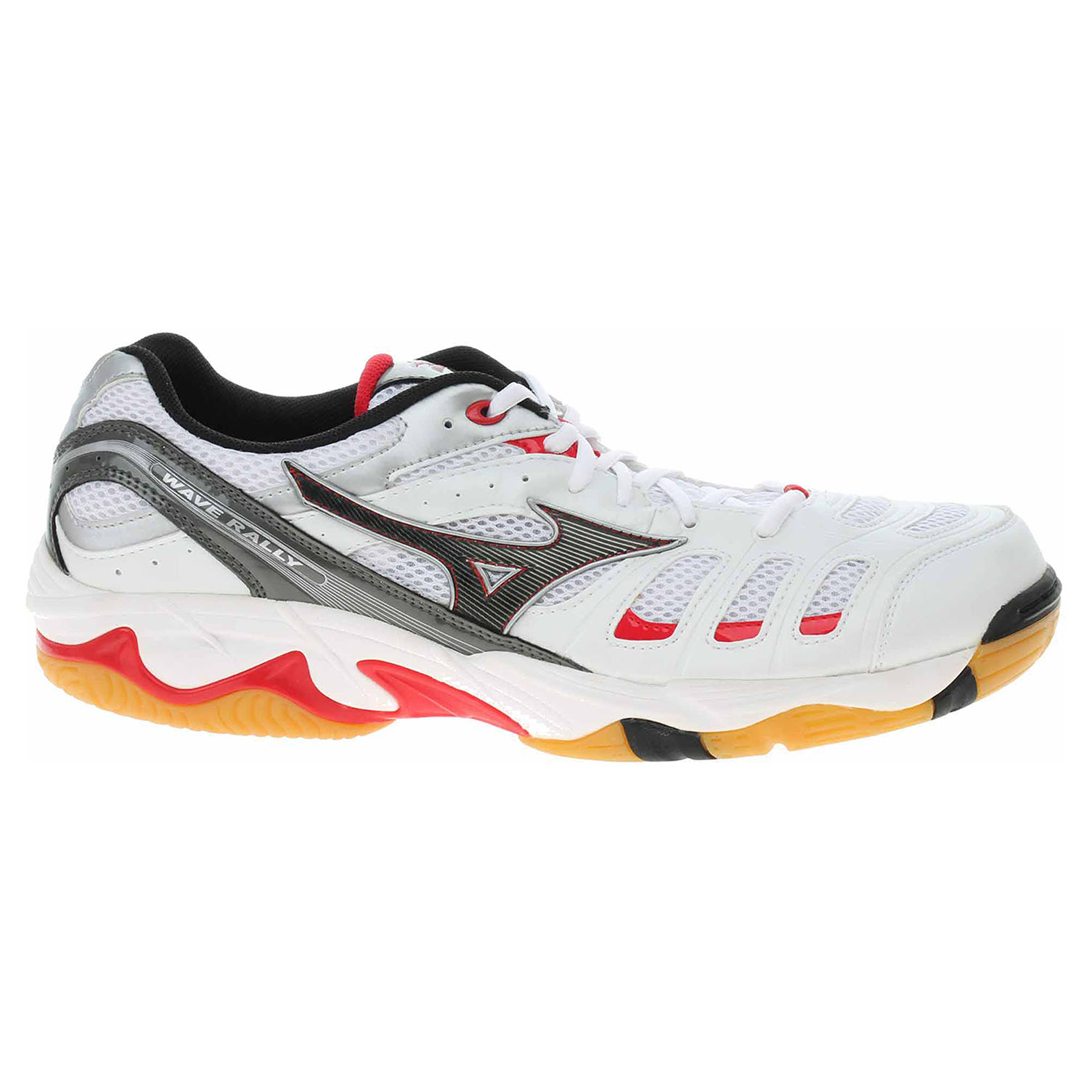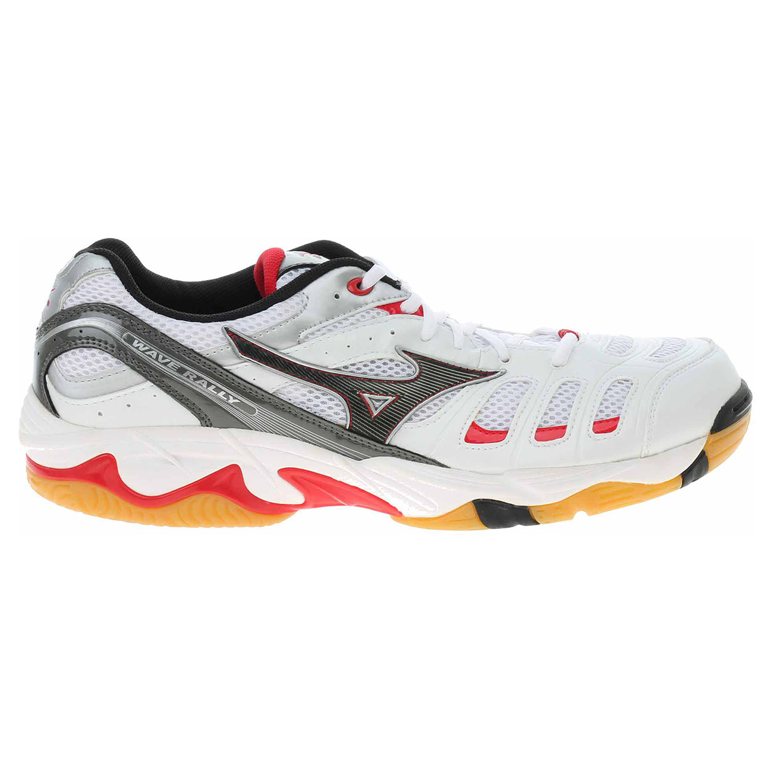 Mizuno Wave Rally 9KV-19509 - lepená unisex sportovní obuv ideální pro vrcholové i rekreační sportovce všech sálových sportů. Vějířovitá vlnová technologie s výztuhou ve střední části nabízí skvělé odpružení a odolnost. AIR Mesh svrchní materiál v kombinaci se syntetickou kůží zaručuje prodyšnost a pohodlí. CMEVA mezipodešev poskytuje podporu, dynamické odpružení a stabilitu pro sportovce všech úrovní. Vyjímatelná anatomicky tvarovaná stélka.