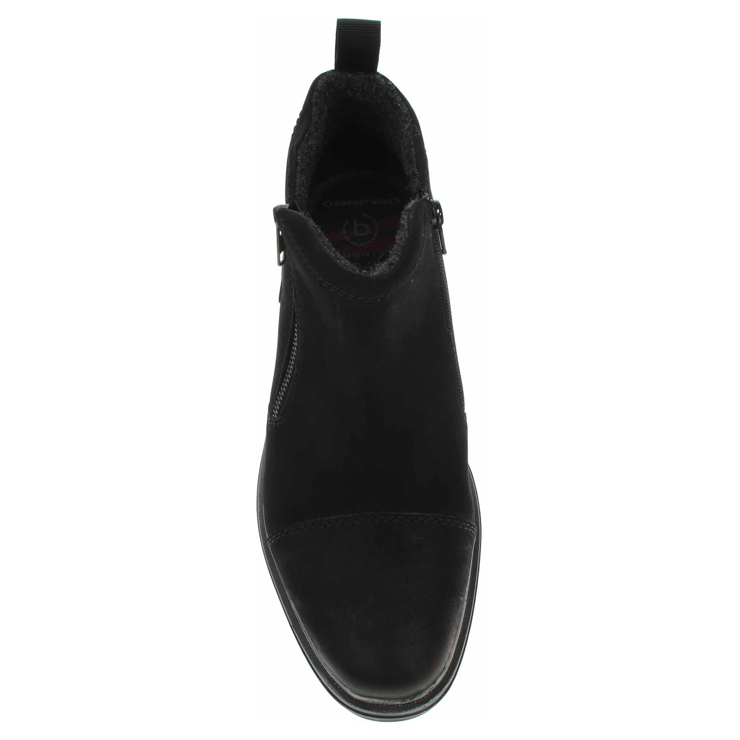 Boty Bugatti - lepené pánské polokozačky se svrškem z usně jsou vyteplené textilní podšívkou a stélkou ze 100% polyesteru. Pohodlné nazouvání zajišťují zipy na vnější i na vnitřní straně. "Comfort Wide" (komfortní šířka) - dodatečný prostor v oblasti prstů na noze umožňuje volný pohyb prstů a jejich pohodlí. Podpatek je vysoký 3,- cm. Lepená obuv - pevnost lepeného spoje může být negativně ovlivněna promáčením nebo propocením, event. opakovaným používáním nedostatečně vysušené obuvi. Při neopatrné chůzi může dojít k mechanickému uvolnění lepeného spoje - ukopnutí.