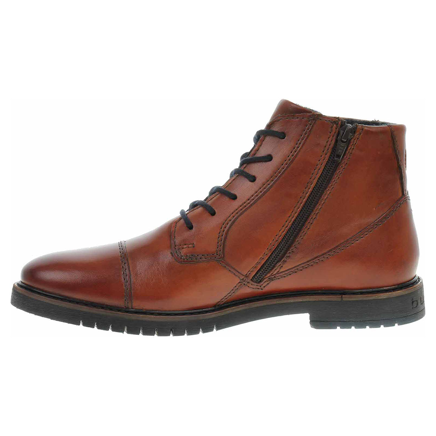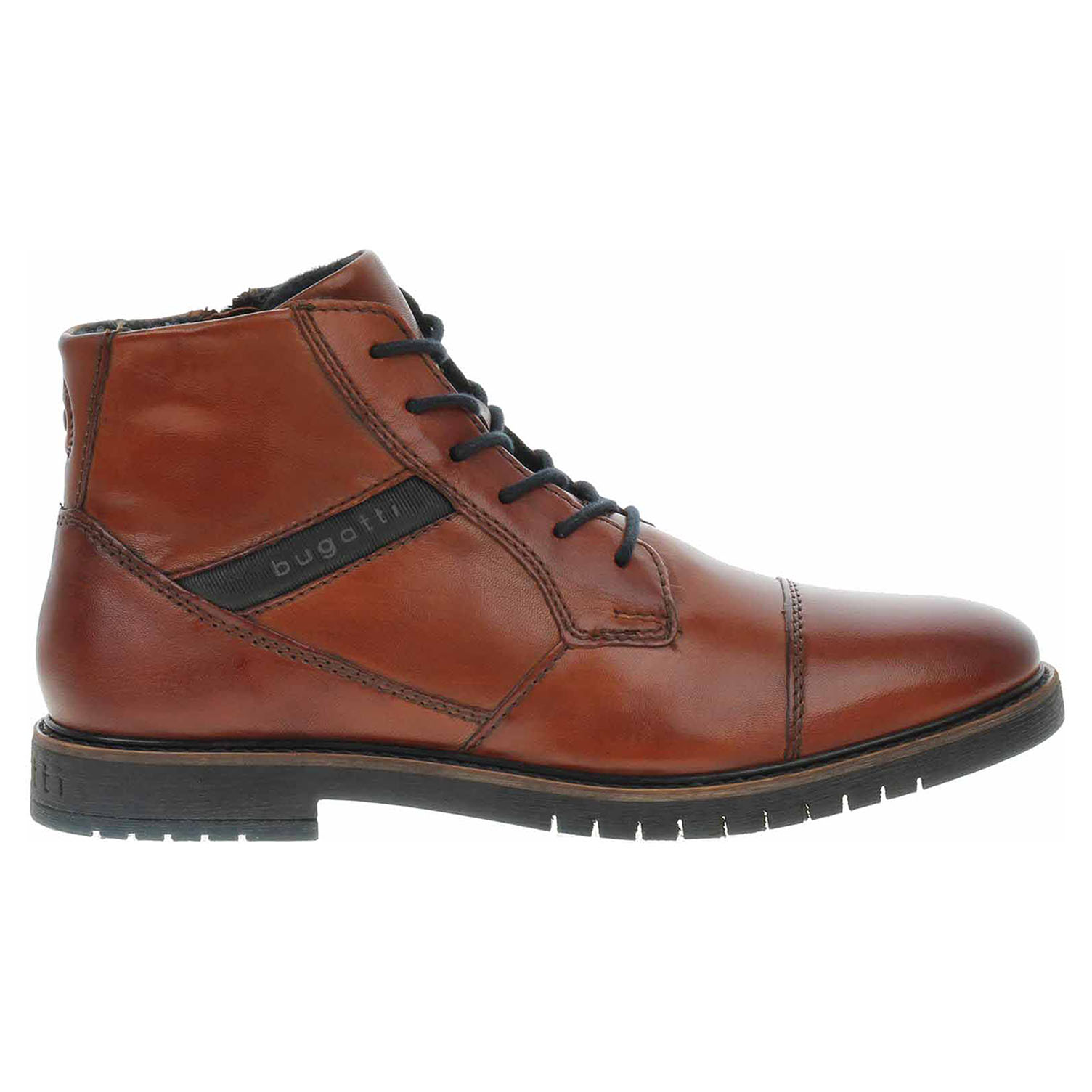 Boty Bugatti - lepená pánská kotníková obuv se šněrováním a zipem na vnitřní straně má svršek z usně, stélku kombinovanou useň/textil a je vyteplená textilní podšívkou s chloupkem (100% polyester). "Soft Fit" (jemný fit) - adaptivní a měkká High-Tech stélka vyrobená technologií "Memory foam" (paměťová pěna) pro dokonalý pocit komfortu při chůzi a lepší absorpci nárazů. "Hand Finish" (ruční dokončení) - každá bota Bugatti je unikátní díky dvoubarevnému odstínovanému manuálnímu finiši povrchové úpravy obuvi. Podpatek je vysoký 2,7 cm. Lepená obuv - pevnost lepeného spoje může být negativně ovlivněna promáčením nebo propocením, event. opakovaným používáním nedostatečně vysušené obuvi. Při neopatrné chůzi může dojít k mechanickému uvolnění lepeného spoje - ukopnutí.