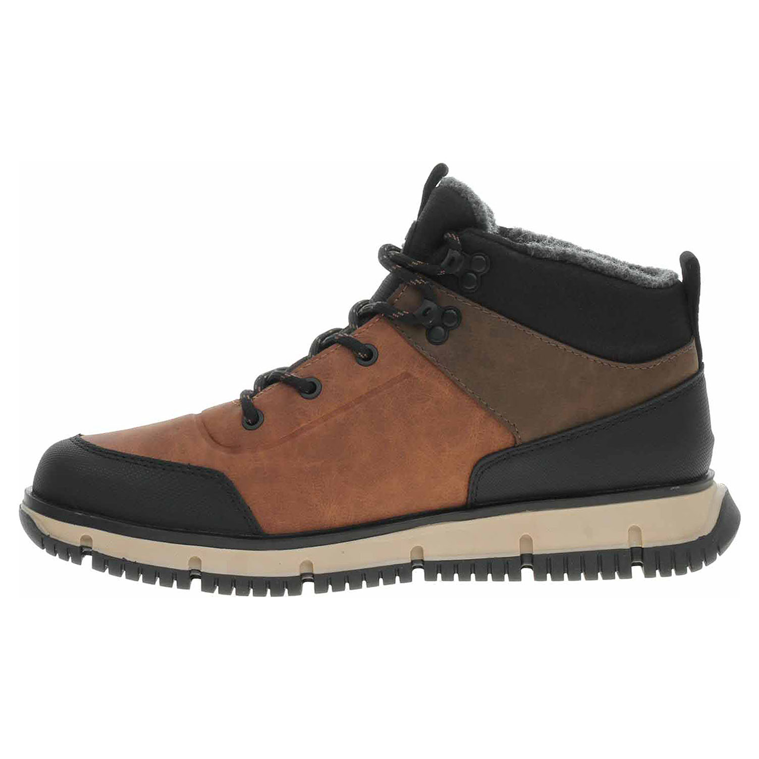 Popis:Boty Bugatti - lepená pánská kotníková obuv se šněrováním má svršek ze syntetiky s textilní lemem kotníku, textilní stélku a je vyteplená textilní podšívkou (100% polyester). Obuv je vybavená vodoodpudivou Tex membránou. Klínek je vysoký 4,- cm a plarforma je vysoká 2,5 cm. Lepená obuv - pevnost lepeného spoje může být negativně ovlivněna promáčením nebo propocením, event. opakovaným používáním nedostatečně vysušené obuvi. Při neopatrné chůzi může dojít k mechanickému uvolnění lepeného spoje - ukopnutí.