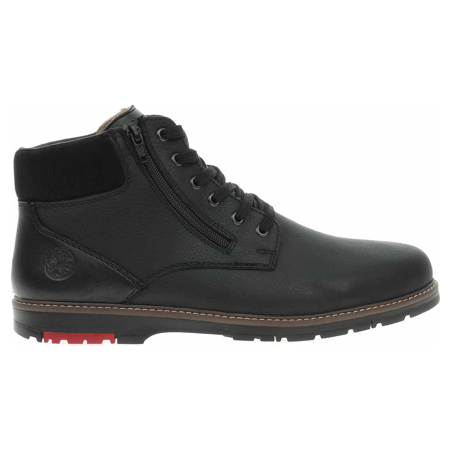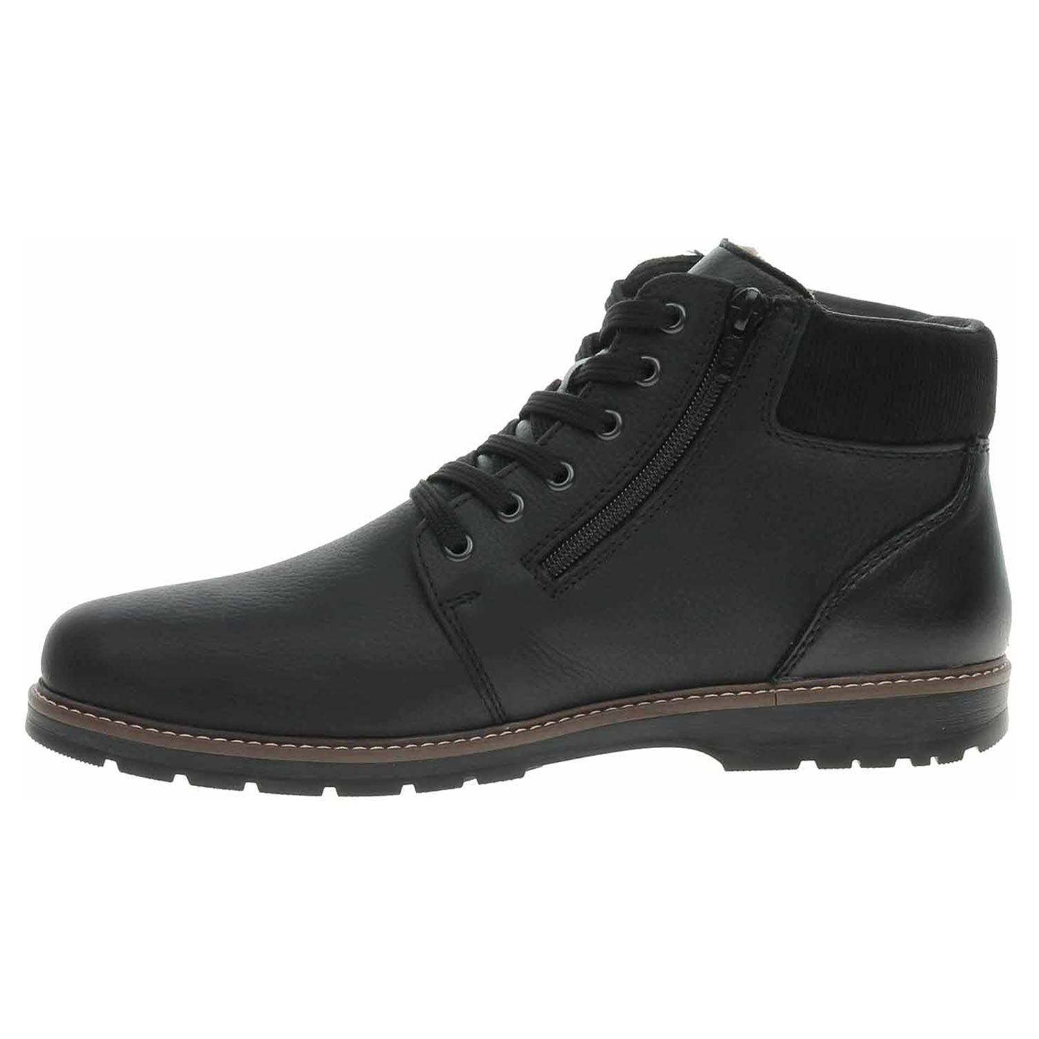 Boty Rieker - lepená pánská kotníková obuv se svrškem z usně a s vyndavací stélkou je vyteplená podšívkou z pravé jehněčí kožešiny. Vyměkčené vložky do bot s textilní nášlapnou vrstvou je možné vyndat za účelem provětrání a omytí. Značnou výhodu nabízejí vyměnitelné vložky do bot také těm uživatelům, kteří používají ortopedické vkládací stélky. Pohodlné nazouvání zajišťuje šněrování a zipy na vnější i na vnitřní straně. Podpatek je vysoký 2,8 cm. Podešev je flexibilní a díky systému Antistress (lehkost, pružnost, prostornost a vynikající absorpce nárazů) Vám obuv zajistí pohodlí při každém kroku. Lepená obuv - pevnost lepeného spoje může být negativně ovlivněna promáčením nebo propocením, event. opakovaným používáním nedostatečně vysušené obuvi. Při neopatrné chůzi může dojít k mechanickému uvolnění lepeného spoje - ukopnutí.