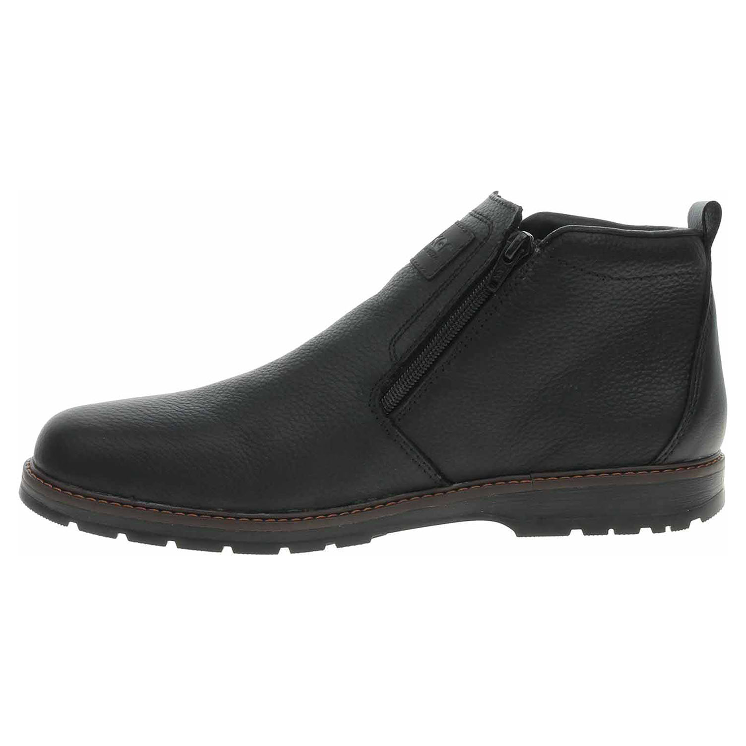 Boty Rieker - lepená pánská kotníková obuv se svrškem z usně a s textilní stélkou je vyteplená podšívkou s delším chlupem. Pohodlné nazouvání zajišťuje zip na vnější i na vnitřní straně nártu. Podpatek je vysoký 2,8 cm. Podešev je flexibilní a díky systému Antistress (lehkost, pružnost, prostornost a vynikající absorpce nárazů) Vám obuv zajistí pohodlí při každém kroku. Lepená obuv - pevnost lepeného spoje může být negativně ovlivněna promáčením nebo propocením, event. opakovaným používáním nedostatečně vysušené obuvi. Při neopatrné chůzi může dojít k mechanickému uvolnění lepeného spoje - ukopnutí.