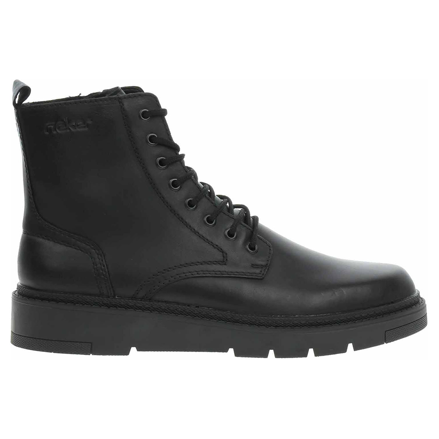 Boty Rieker - lepená pánská kotníková obuv nadměrné šíře H se svrškem kombinovaným useň/syntetika a s textilní stélkou je vyteplená podšívkou ze střižní ovčí vlny s jemným chloupkem. Obuv vybavená vyndavací stélkou, kterou je možné vyndat za účelem provětrání a omytí. Značnou výhodu nabízejí vyměnitelné vložky do bot také těm uživatelům, kteří používají ortopedické vkládací stélky. Pohodlné nazouvání zajišťuje šněrování a zip na vnitřní straně. Podpatek je vysoký 4,6 cm. Podešev je flexibilní a díky systému Antistress skvěle tlumí nárazy a otřesy. Lepená obuv - pevnost lepeného spoje může být negativně ovlivněna promáčením nebo propocením, event. opakovaným používáním nedostatečně vysušené obuvi. Při neopatrné chůzi může dojít k mechanickému uvolnění lepeného spoje - ukopnutí.