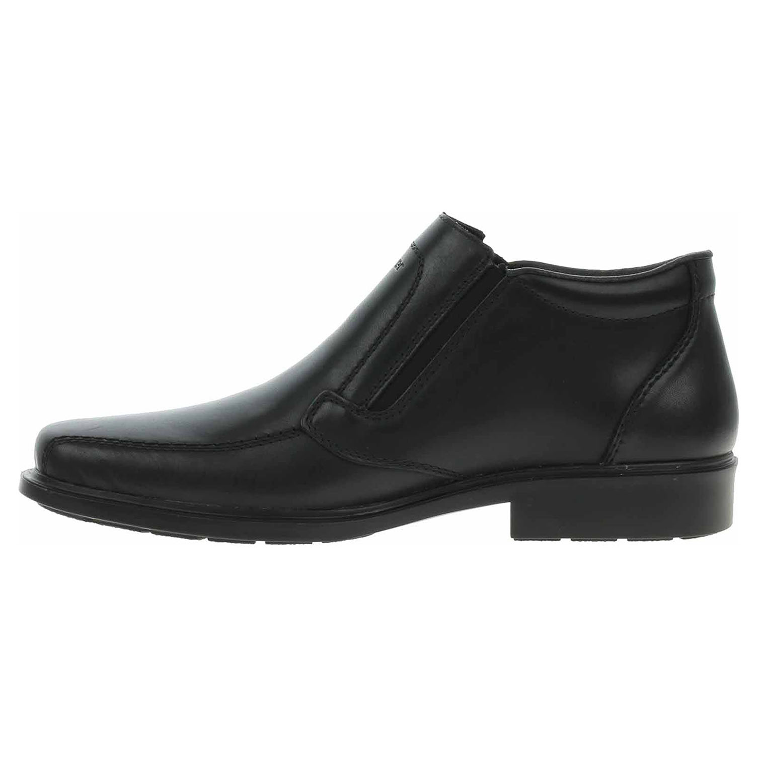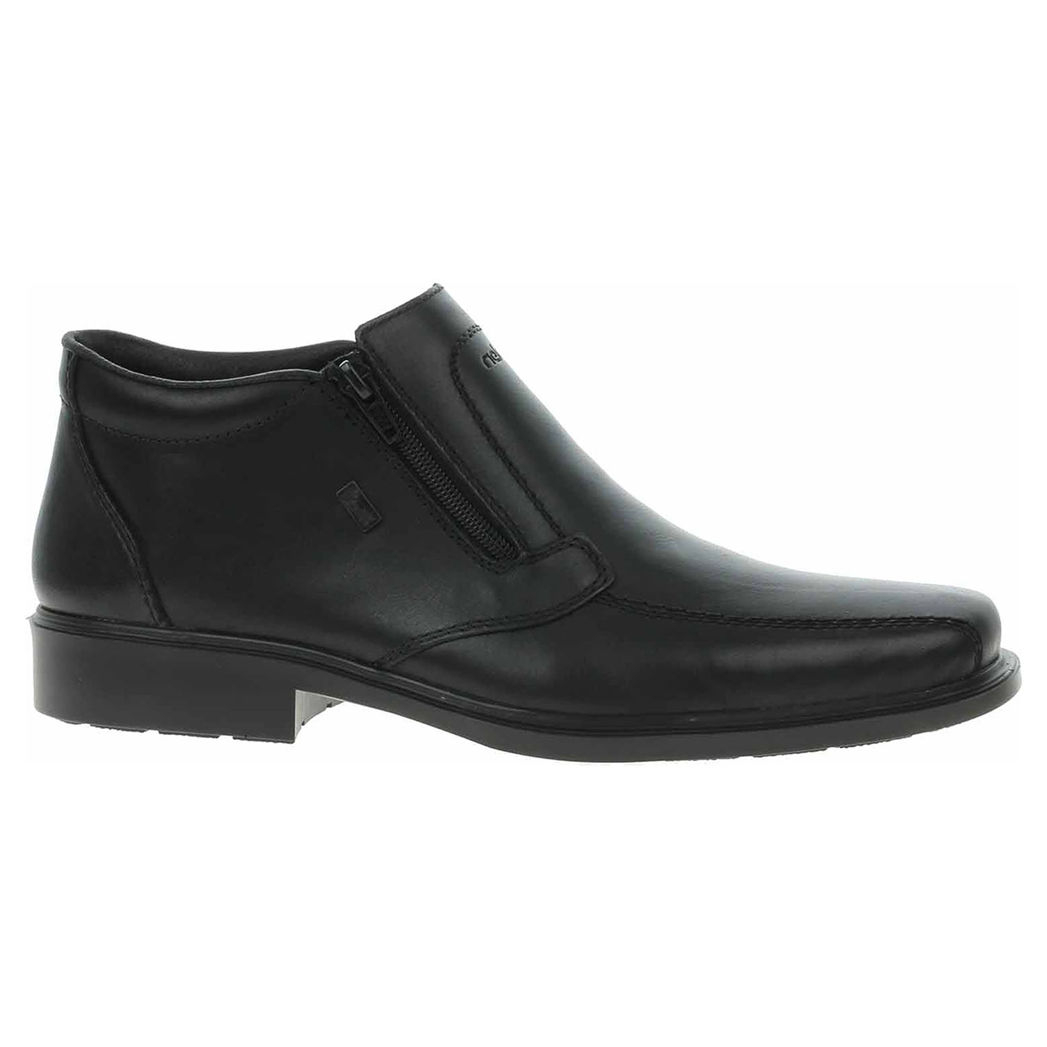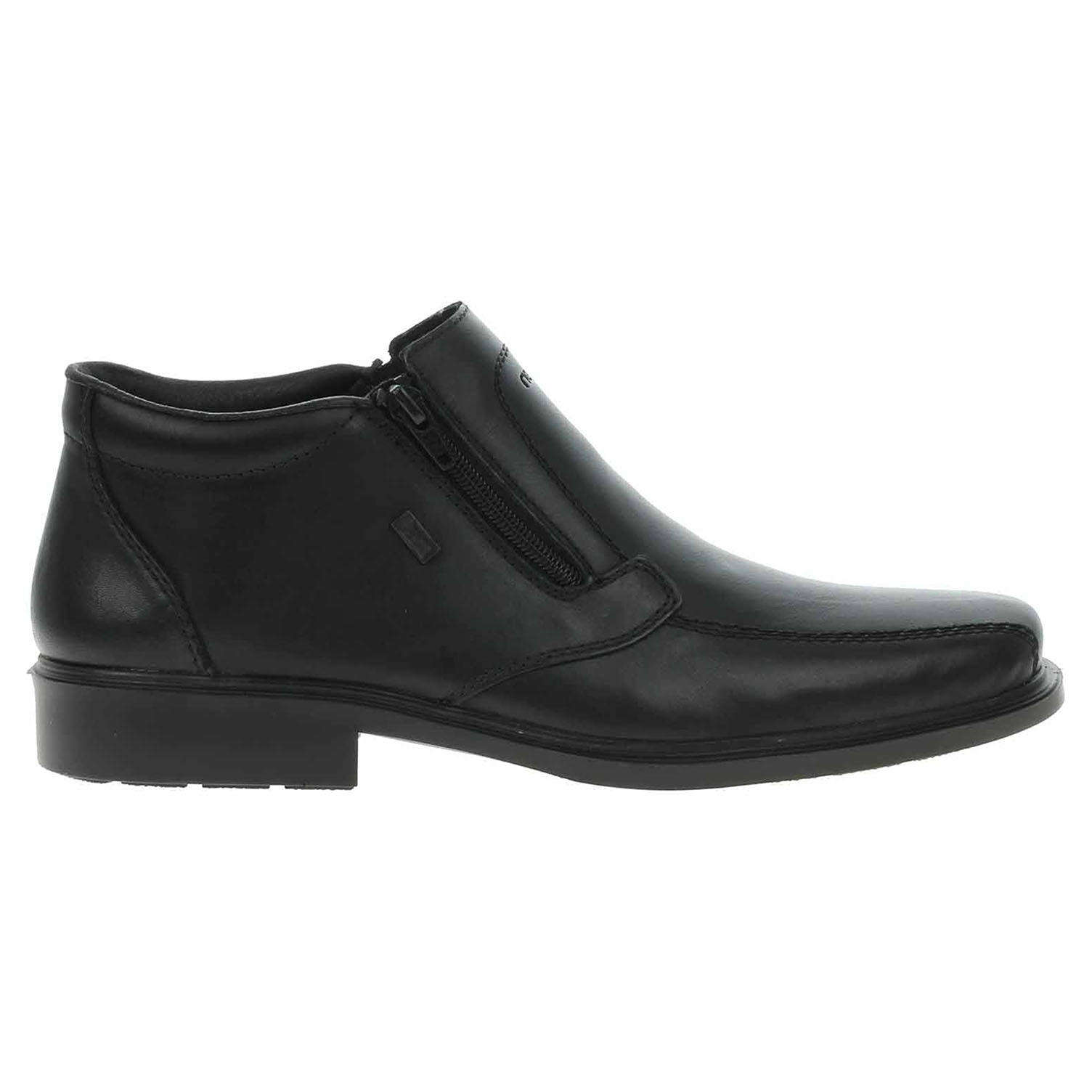 Boty Rieker - lepené pánské polokozačky nadměrné šíře mají svršek i stélku z usně a textilní podšívku a jsou vybavené vodoodpudivou membránou RiekerTex. Obuv není vyteplená. Pohodlné nazouvání zajišťuje zip na vnější straně nártu a vsazená gumička na straně vnitřní. Podpatek je vysoký 3,5 cm. Podešev je flexibilní a díky systému Antistress skvěle tlumí nárazy a otřesy. Lepená obuv - pevnost lepeného spoje může být negativně ovlivněna promáčením nebo propocením, event. opakovaným používáním nedostatečně vysušené obuvi. Při neopatrné chůzi může dojít k mechanickému uvolnění lepeného spoje - ukopnutí.