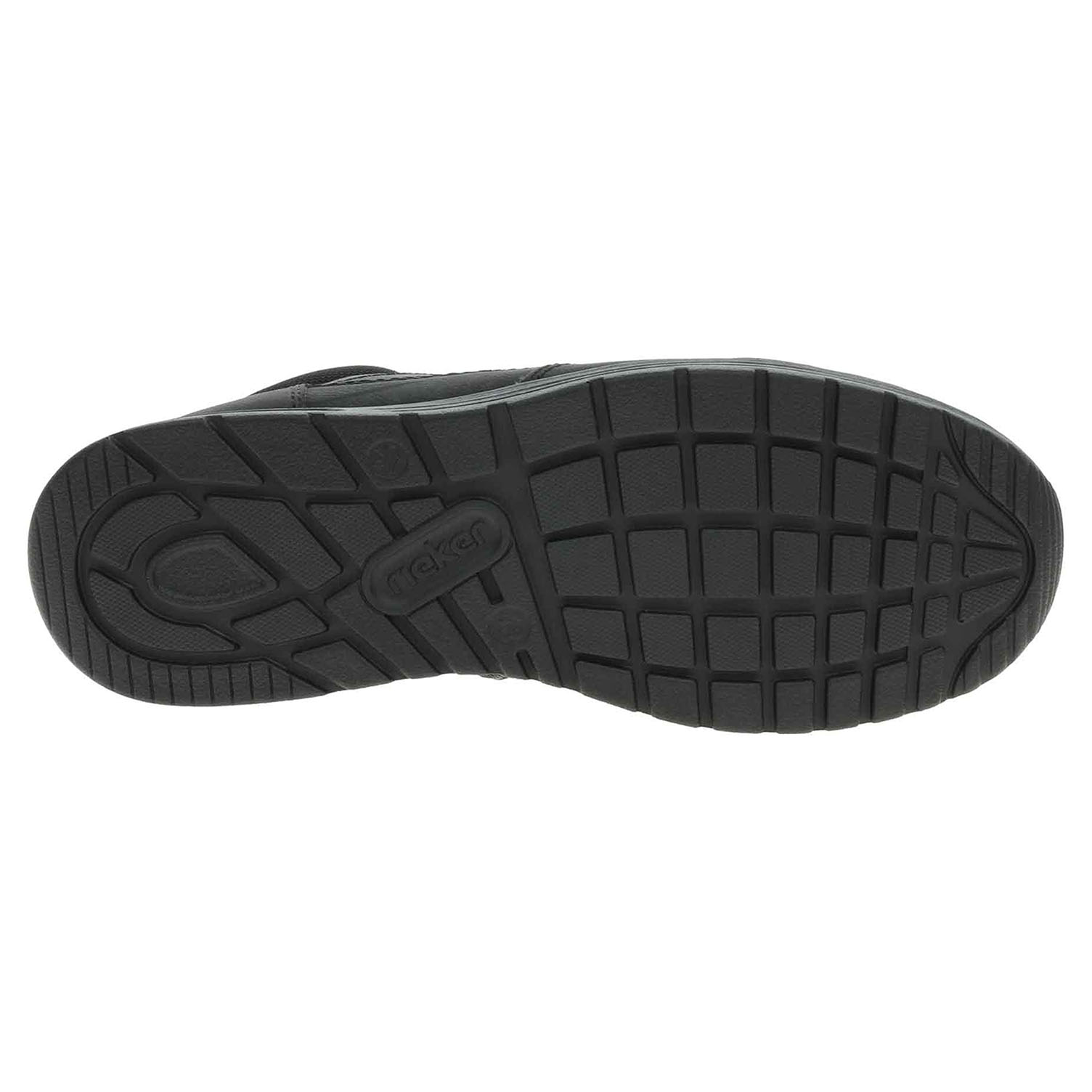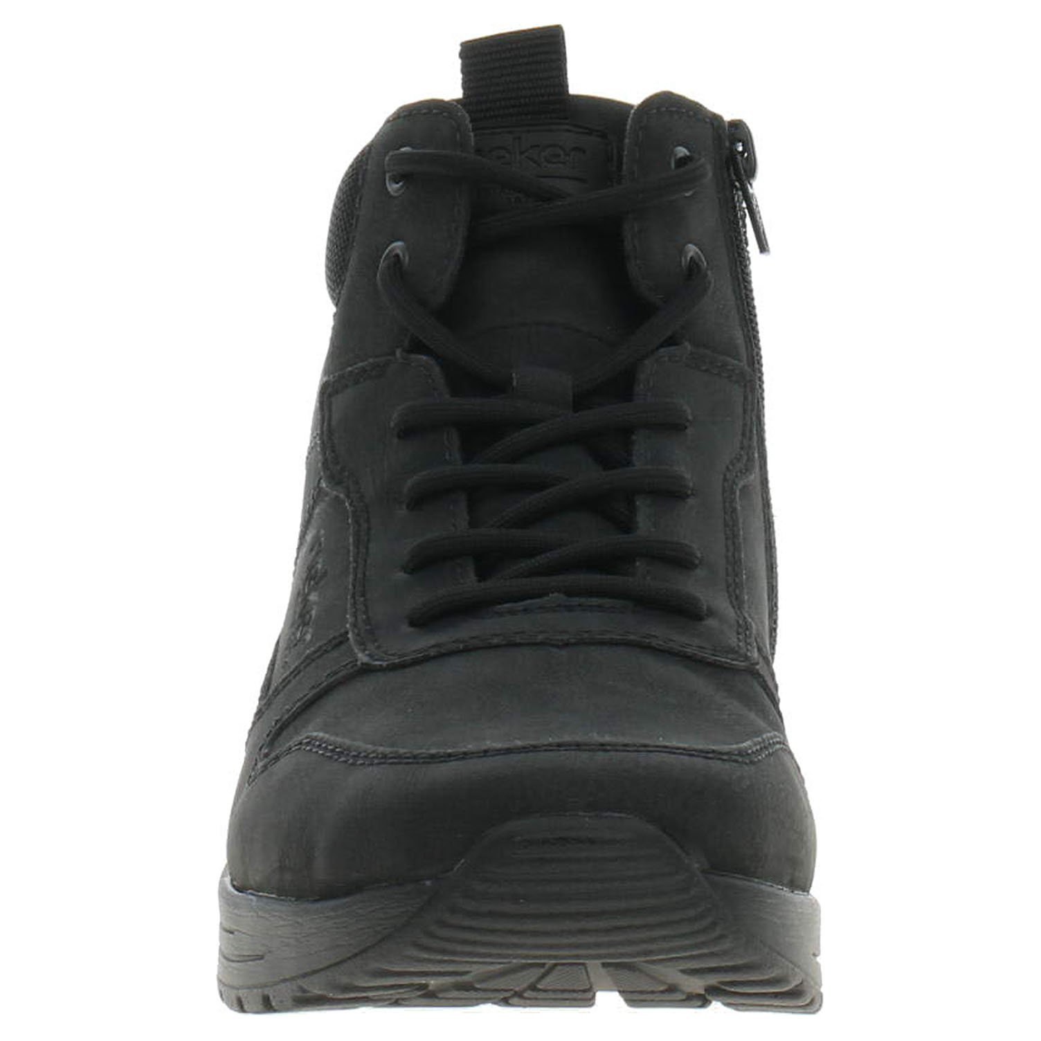 Boty Rieker - lepená pánská kotníková obuv se svrškem ze syntetiky a s textilním lemem u kotníku je vybavená vyndavací stélkou s textilní nášlapnou vrstvou. Vložky do bot je možné vyndat za účelem provětrání a omytí. Značnou výhodu nabízejí vyměnitelné vložky do bot také těm uživatelům, kteří používají ortopedické vkládací stélky. Pohodlné nazouvání zajišťuje šněrování a zip na vnitřní straně. Klínek se vzduchovým polštářem, který změkčuje došlap, je vysoký 3,5 cm. Podešev je flexibilní a díky systému Antistress (lehkost, pružnost, prostornost a vynikající absorpce nárazů) Vám obuv zajistí pohodlí při každém kroku. Lepená obuv - pevnost lepeného spoje může být negativně ovlivněna promáčením nebo propocením, event. opakovaným používáním nedostatečně vysušené obuvi. Při neopatrné chůzi může dojít k mechanickému uvolnění lepeného spoje - ukopnutí.