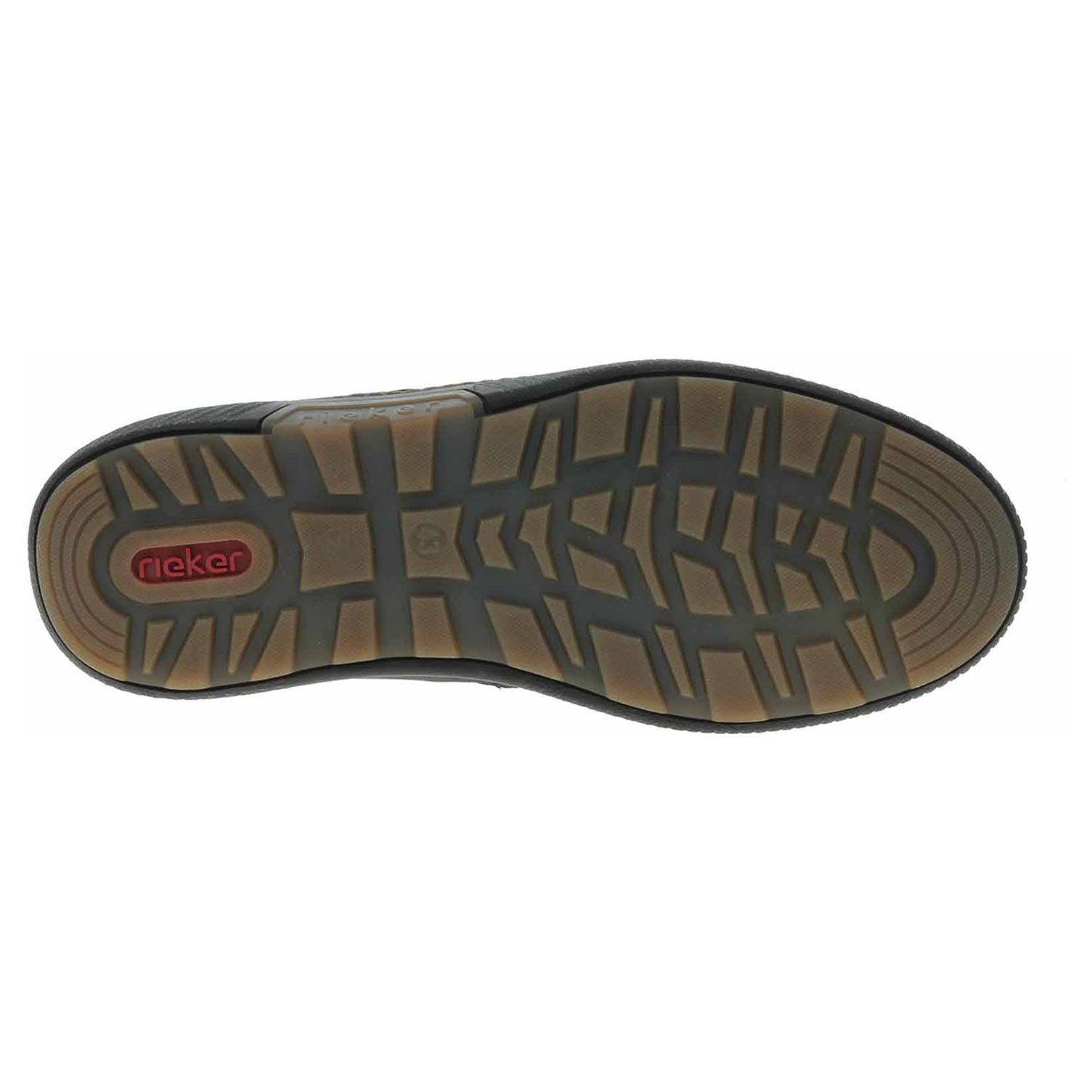 Boty Rieker - lepená pánská kotníková obuv nadměrné šíře H se svrškem z usně, s tmavším dílem na opatku ze syntetiky a s úpletem okolo kotníku je vyteplená podšívkou ze střižní ovčí vlny a je vybavená vodoodpudivou membránou RiekerTex a vyndavací stélkou MemoSoft (maximálně změkčuje došlap a zvyšuje pohodlí v obuvi) s textilní nášlapnou vrstvou. Pohodlné nazouvání zajišťuje šněrování na nártu a zip na vnitřní straně. EXTRA WIDE – boty jsou širšího střihu, tvar boty je přizpůsobený chodidlu pro vytvoření dostatečného prostoru v oblasti přední části chodidla. Klínek je vysoký 3,6 cm. Podešev je flexibilní a díky systému Antistress (lehkost, pružnost, prostornost a vynikající absorpce nárazů) Vám obuv zajistí pohodlí při každém kroku. Lepená obuv - pevnost lepeného spoje může být negativně ovlivněna promáčením nebo propocením, event. opakovaným používáním nedostatečně vysušené obuvi. Při neopatrné chůzi může dojít k mechanickému uvolnění lepeného spoje - ukopnutí.