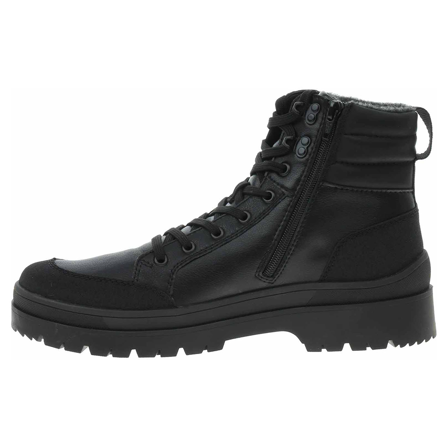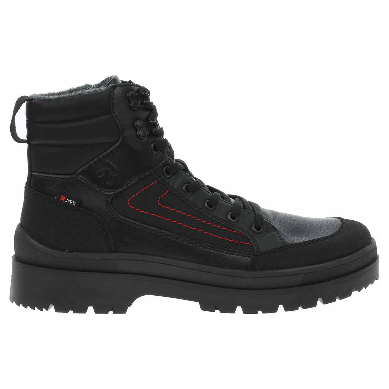 Boty Rieker - lepená pánská kotníková obuv řady R-EVOLUTION se svrškem kombinovaným useň/syntetika/nylon je vyteplená podšívkou ze střižní ovčí vlny (kotníkový lem zevnitř filcový) a je vybavená vodoodpudivou membránou R-TEX® a vyndavací stélkou s termoizolační fólií, patním absorbérem a nášlapnou vrstvou z vlny. Vyměnitelné vložky do bot je možné vyndat za účelem provětrání a omytí. Pohodlné nazouvání zajišťuje zip na vnitřní straně a šněrování na nártu. Rieker R-EVOLUTION je nová řada moderní sportovní obuvi s obrovským důrazem na použité technologie a na komforní pohodlí i při celodenním nošení. Walk Safe - Fiber Grip Sole = skrytá funkce s velkým efektem. Speciální podrážka ze skleněných vláken, poskytuje extra přilnavost na zledovatělém povrchu. Už nikdy neuklouznete. Podpatek je vysoký 4,5 cm a platforma je vysoká 3,- cm. Lepená obuv - pevnost lepeného spoje může být negativně ovlivněna promáčením nebo propocením, event. opakovaným používáním nedostatečně vysušené obuvi. Při neopatrné chůzi může dojít k mechanickému uvolnění lepeného spoje - ukopnutí.