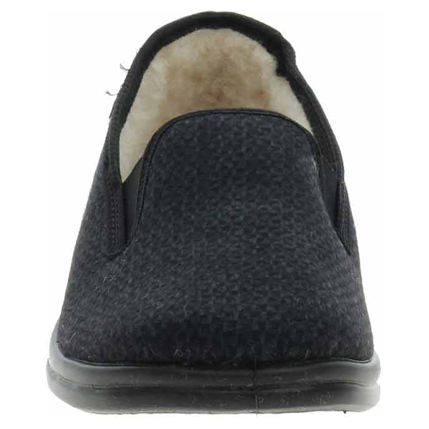 Boty Dr.Orto Wool - pánské bačkory nadměrné šíře K s textilním svrškem a s podšívkou i stélkou z ovčí vlny. Pohodlné nazouvání zajišťují vsazené gumičky na nártu. Klínek je vysoký 3,- cm. Dr.Orto Wool - kolekce obuvi s podšívkou i stélkou z ovčí vlny, která se doporučuje nejen na dlouhé, chladné večery, ale i pro studená chodidla způsobená různými typy onemocnění např. cukrovkou, anémií nebo aterosklerózou. Pánská zdravotní domácí obuv nadměrné šíře K je vhodná pro diabetiky a diabetickou nohu. Špička obuvi je vysoká a široká a svršek obuvi se skvěle přizpůsobí tvaru nohy (doporučujeme také pro hallux valgus a kladívkové prsty). Obuv z prodyšného materiálu je maximálně flexibilní a lehká. Podešev je protiskluzná a skvěle tlumí mikronárazy.