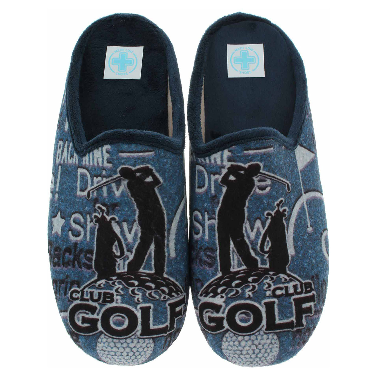 Boty Medi Line - pánské domácí pantofle se svrškem z extrémně jemného mikroplyše jsou vybavené vyndavací vyměkčenou stélkou s textilní nášlapnou vrstvou. Vyměnitelné vložky do bot je možné vyndat za účelem provětrání a omytí. Protiskluzová podrážka má klínek vysoký 3,- cm a platformu 1,- cm.