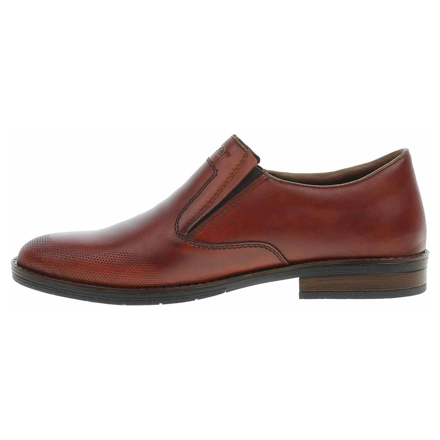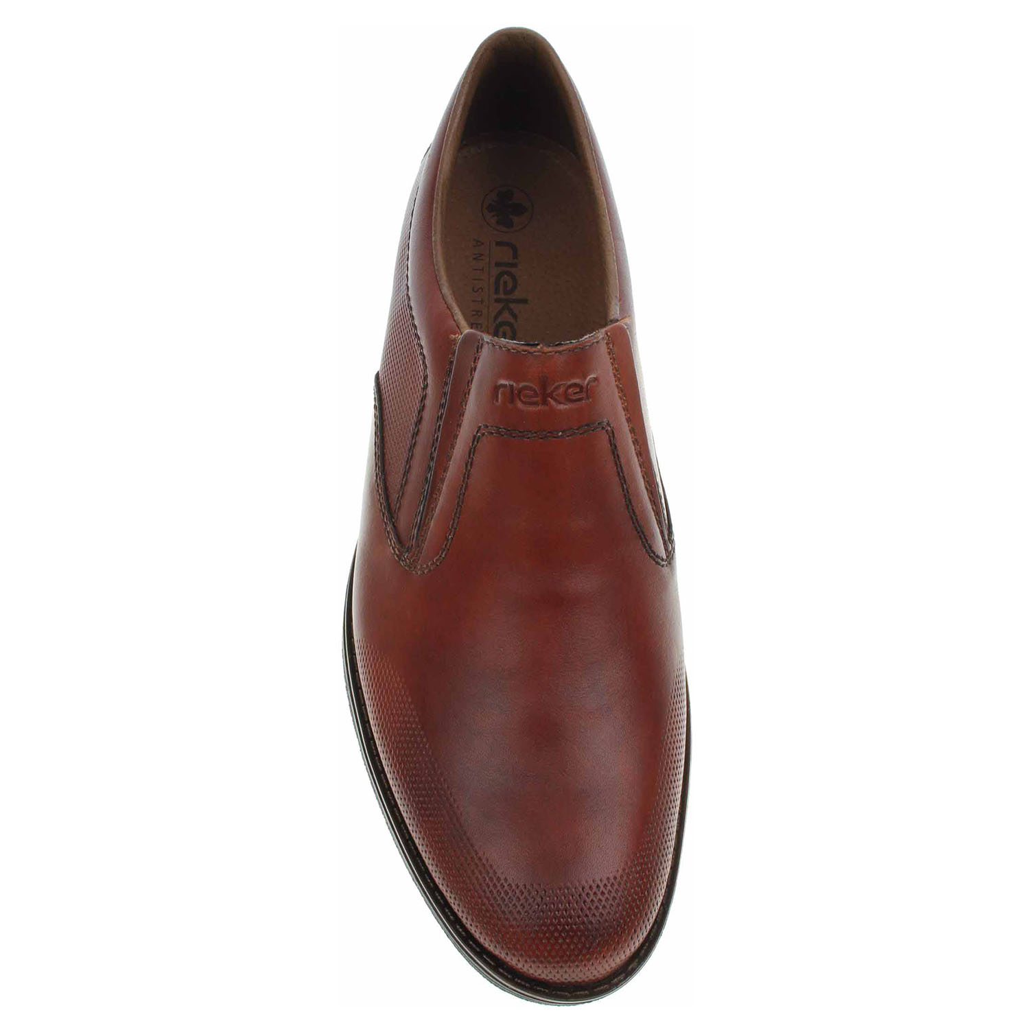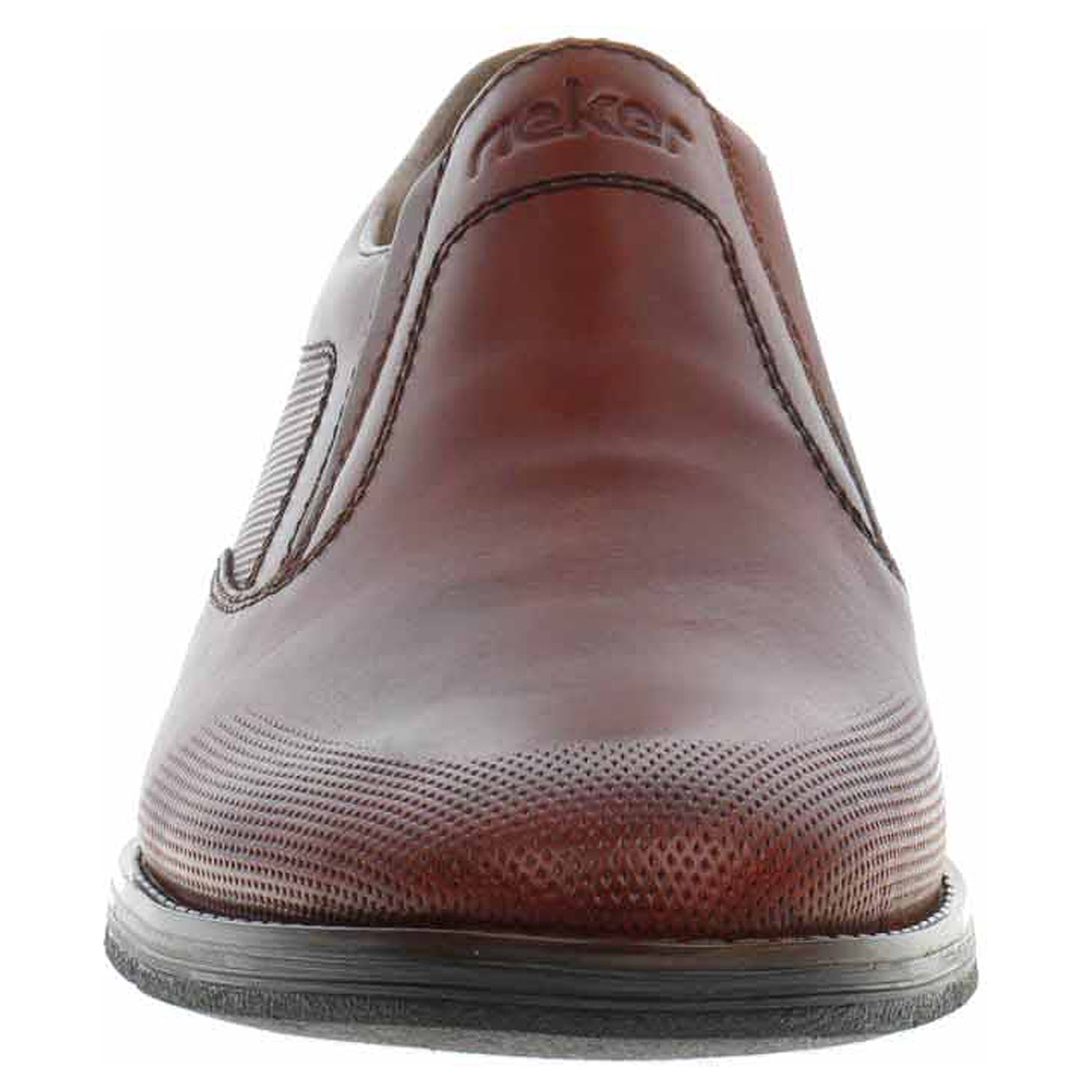 Boty Rieker - lepené pánské mokasiny se svrškem i stélkou z usně a s podšívkou ze syntetiky jsou vybavené na vnitřní i vnější straně nártu vsazenou gumičkou pro pohodlné nazouvání. Podešev je flexibilní a díky systému Antistress skvěle tlumí nárazy a otřesy. Podpatek je vysoký 2,5 cm. Lepená obuv - pevnost lepeného spoje může být negativně ovlivněna promáčením nebo propocením, event. opakovaným používáním nedostatečně vysušené obuvi. Při neopatrné chůzi může dojít k mechanickému uvolnění lepeného spoje - ukopnutí.