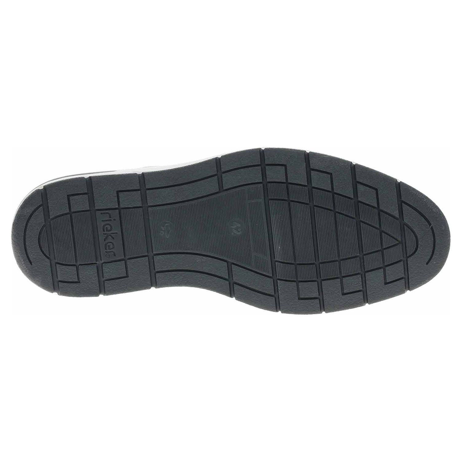 Boty Rieker - lepené pánské polobotky se šněrováním mají svršek ze syntetiky, textilní podšívku a jsou vybavené vyměkčenou stélkou s textilní nášlapnou vrstvou. Klínek je vysoký 3,- cm. Podešev je flexibilní a díky systému Antistress (lehkost, pružnost, prostornost a vynikající absorpce nárazů) Vám obuv zajistí pohodlí při každém kroku. Lepená obuv - pevnost lepeného spoje může být negativně ovlivněna promáčením nebo propocením, event. opakovaným používáním nedostatečně vysušené obuvi. Při neopatrné chůzi může dojít k mechanickému uvolnění lepeného spoje - ukopnutí.