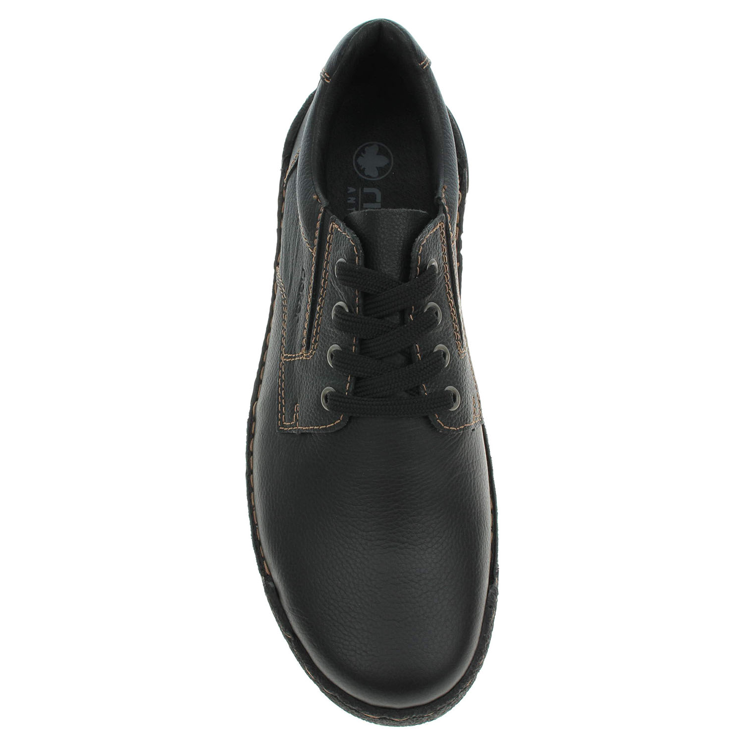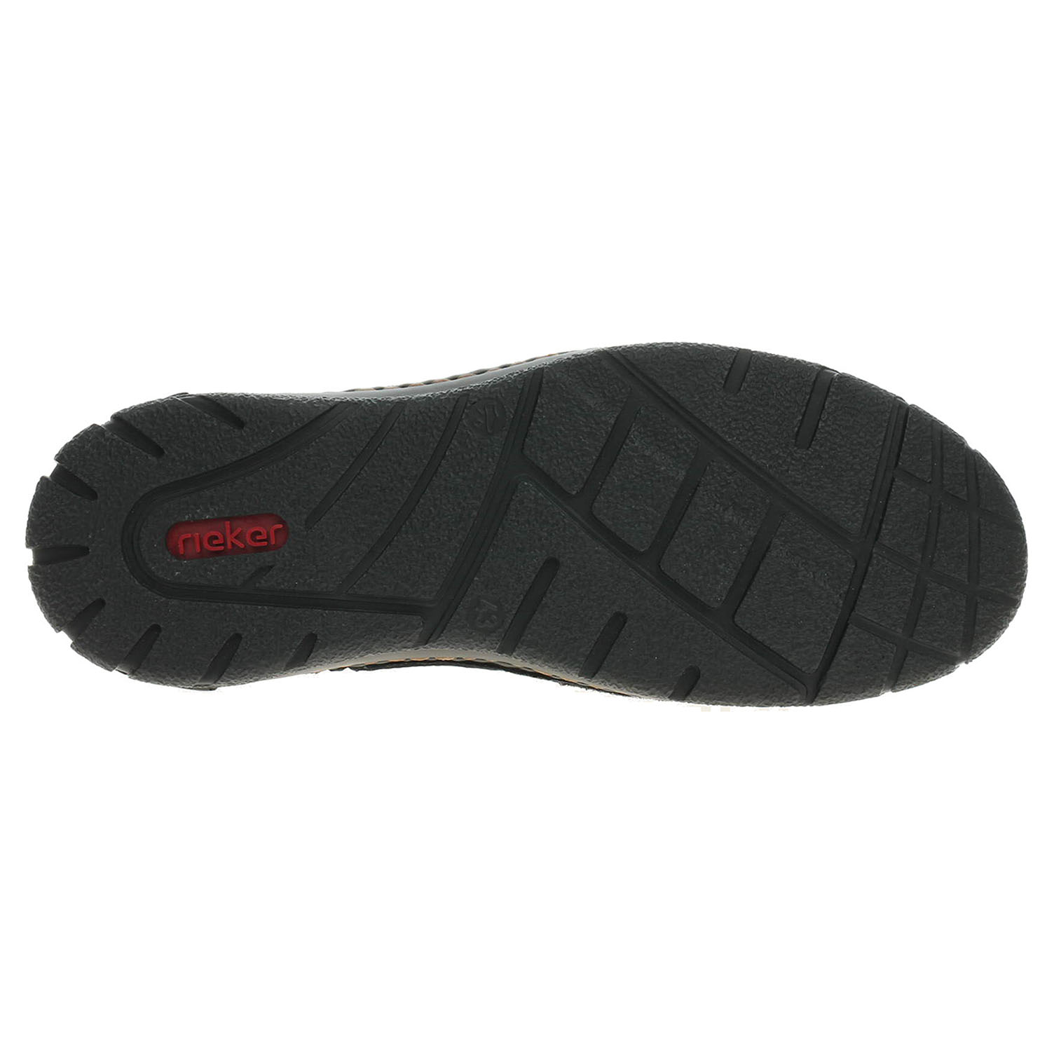 Boty Rieker - flexiblové pánské polobotky nadměrné šíře mají svršek kombinovaný useň/syntetika, podšívku ze syntetiky a vyměkčenou stélku z usně. Pohodlné nazouvání zajišťuje šněrování a vsazené gumičky na vnější i na vnitřní straně nártu. Podešev je flexibilní a díky systému Antistress skvěle tlumí nárazy a otřesy. Flexiblová obuv - prošívaná podešev, obuv používejte v suchém prostředí. Při zvýšené vlhkosti může dojít k promáčení obuvi. Obuv pravidelně impregnujte nebo krémujte, zvláště pak prošívaný okraj.