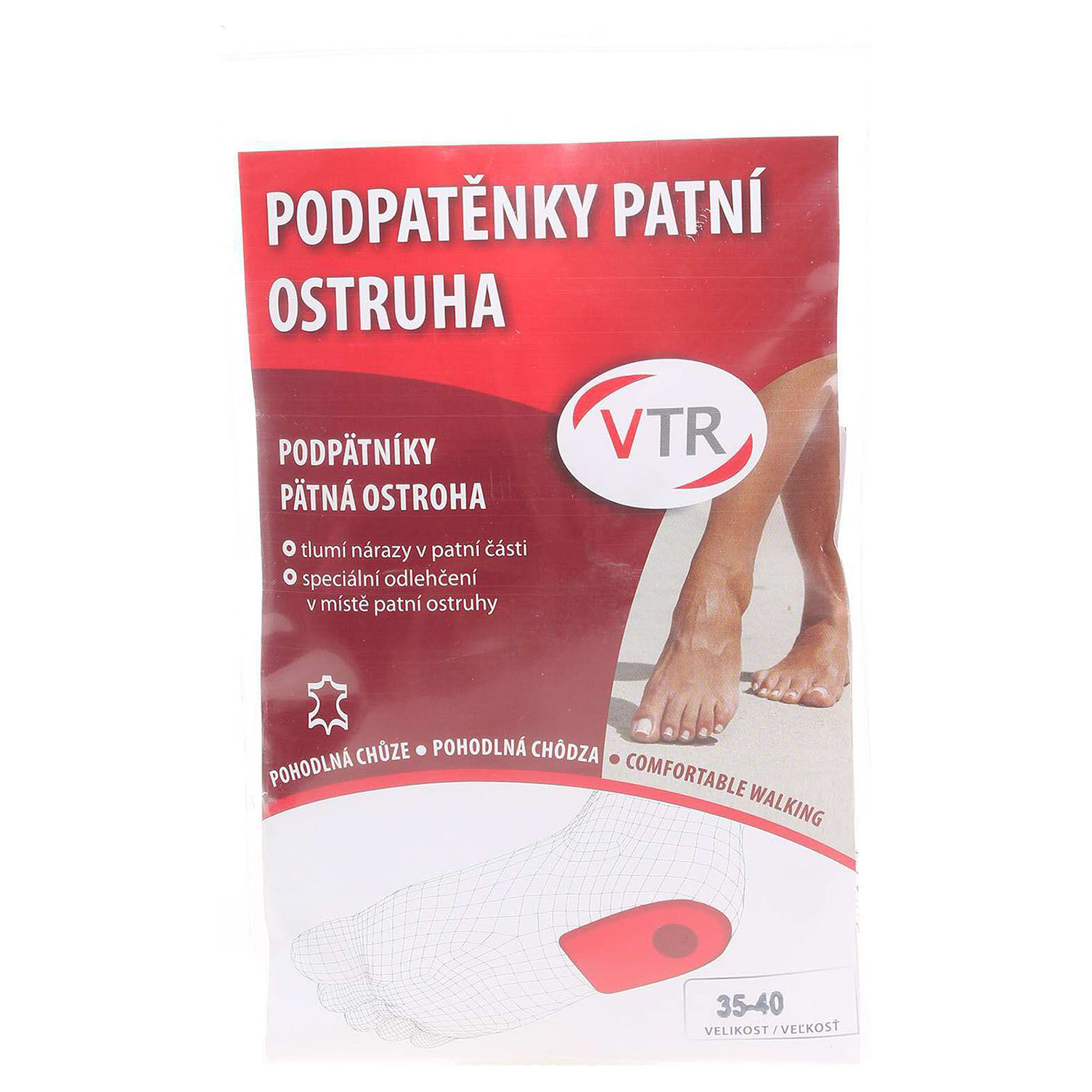 Podpatěnky patní ostruha - jsou vyrobeny z měkkého šlěhaného latexu s odlehčením v místě patní ostruhy. Na styčné straně s chodidlem je nalepena kvalitní useň. Podpatěnky se do obuvi upevňují pomocí samolepící fólie. Vyjměte kruhový střed, aby se zabránilo styku bolestivého místa s okolím. Podpatěnky jsou vyrobeny ve dvou univerzálních velikostech určených pro velikosti 35-40 a 41-46. Zvolenou velikost, prosím, napište do objednávky.