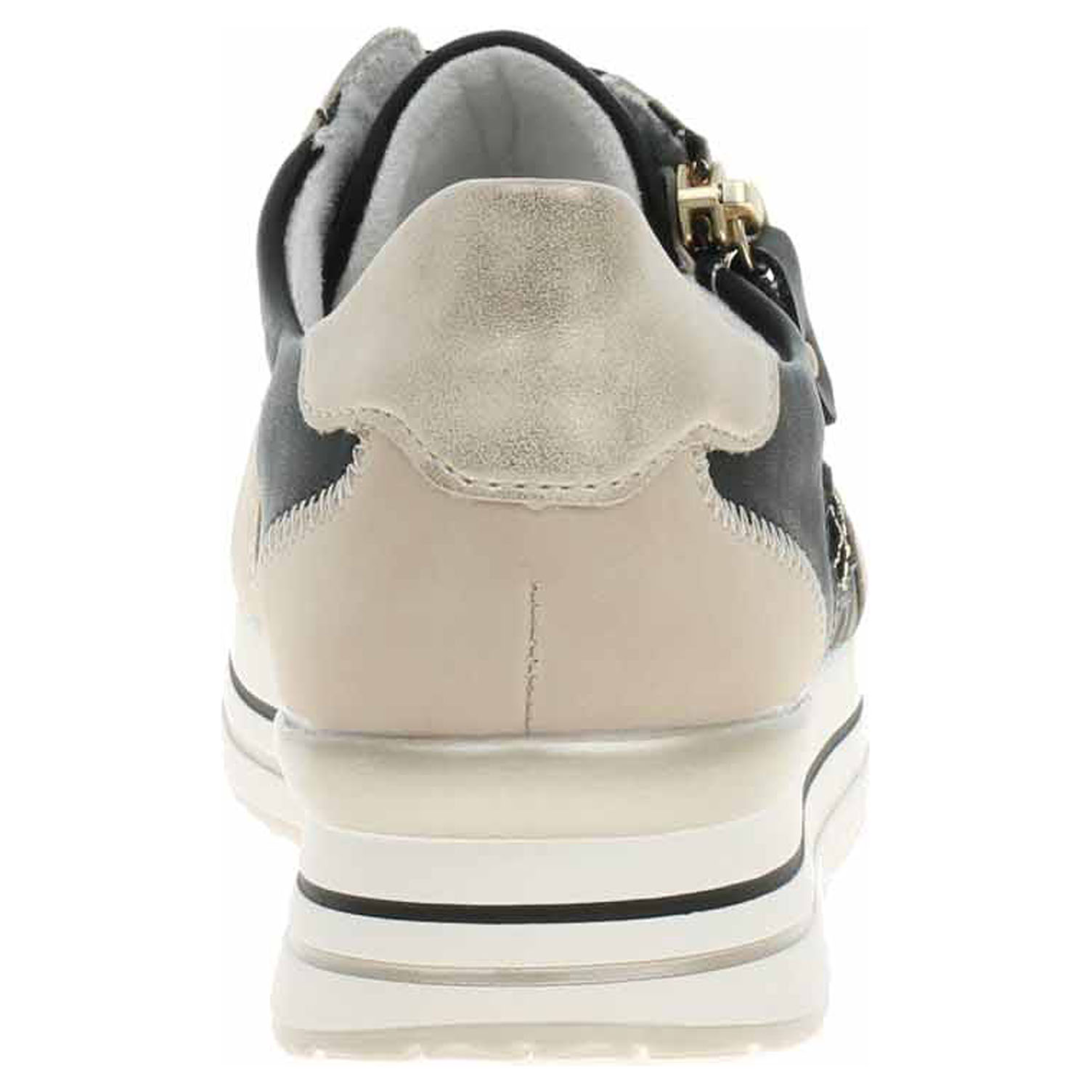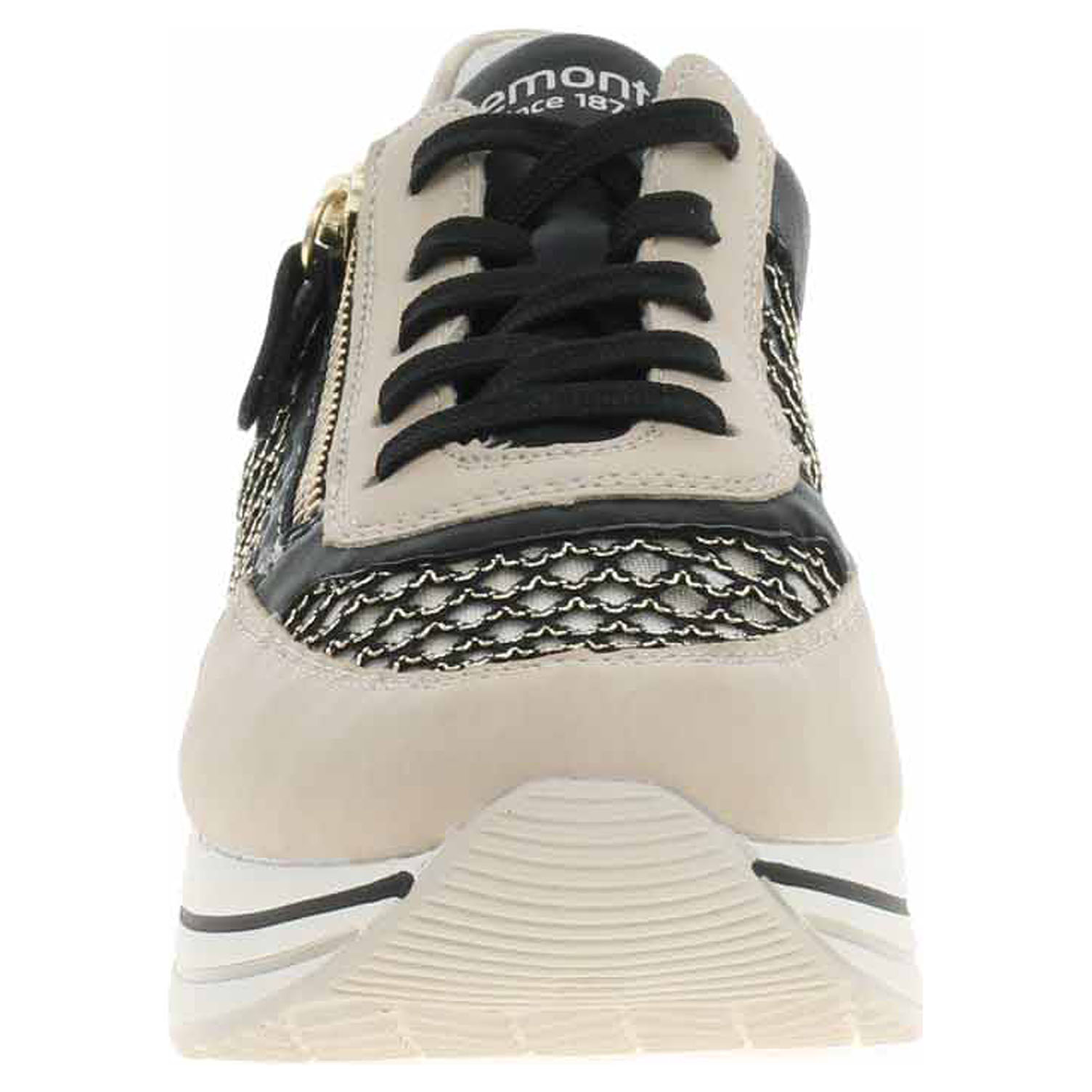 Boty Remonte - lepená dámská vycházková obuv se svrškem kombinovaným syntetika/textil a s textilní podšívkou je vybavená vyndavací, paměťovou stélkou Remonte Soft s extra měkkou, antistresovou nášlapnou vrstvou. Pohodlné nazouvání zajišťuje šněrování a zip na vnější straně nártu. Vyměnitelné vložky do bot je možné vyndat za účelem provětrání a omytí. Značnou výhodu nabízejí vyměnitelné vložky do bot také těm uživatelům, kteří používají ortopedické vkládací stélky. Klínek je vysoký 4,- cm. Obuv je 100% VEGAN = při výrobě obuvi nebyly použity žádné materiály ze zvířat. Lepená obuv - pevnost lepeného spoje může být negativně ovlivněna promáčením nebo propocením, event. opakovaným používáním nedostatečně vysušené obuvi. Při neopatrné chůzi může dojít k mechanickému uvolnění lepeného spoje - ukopnutí.