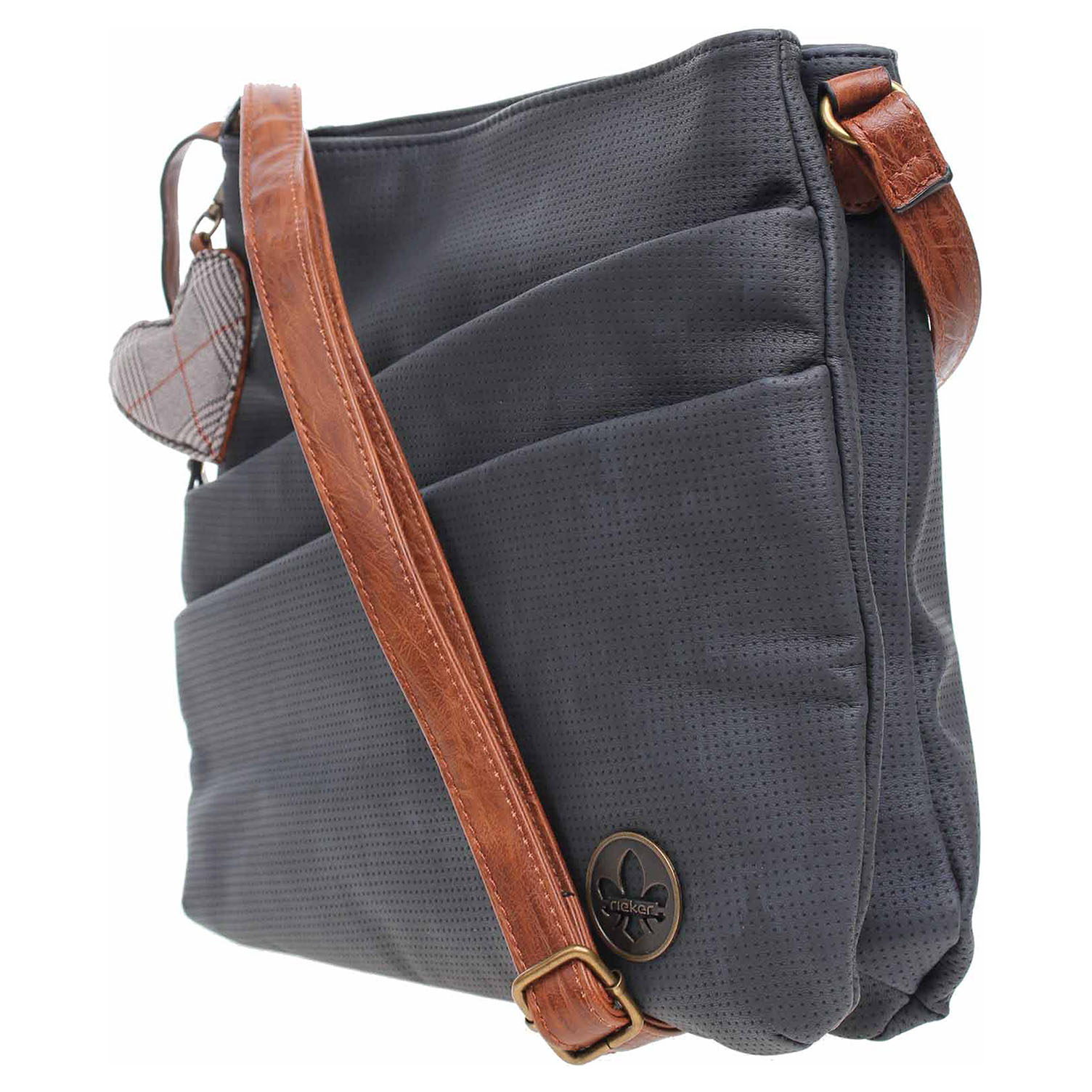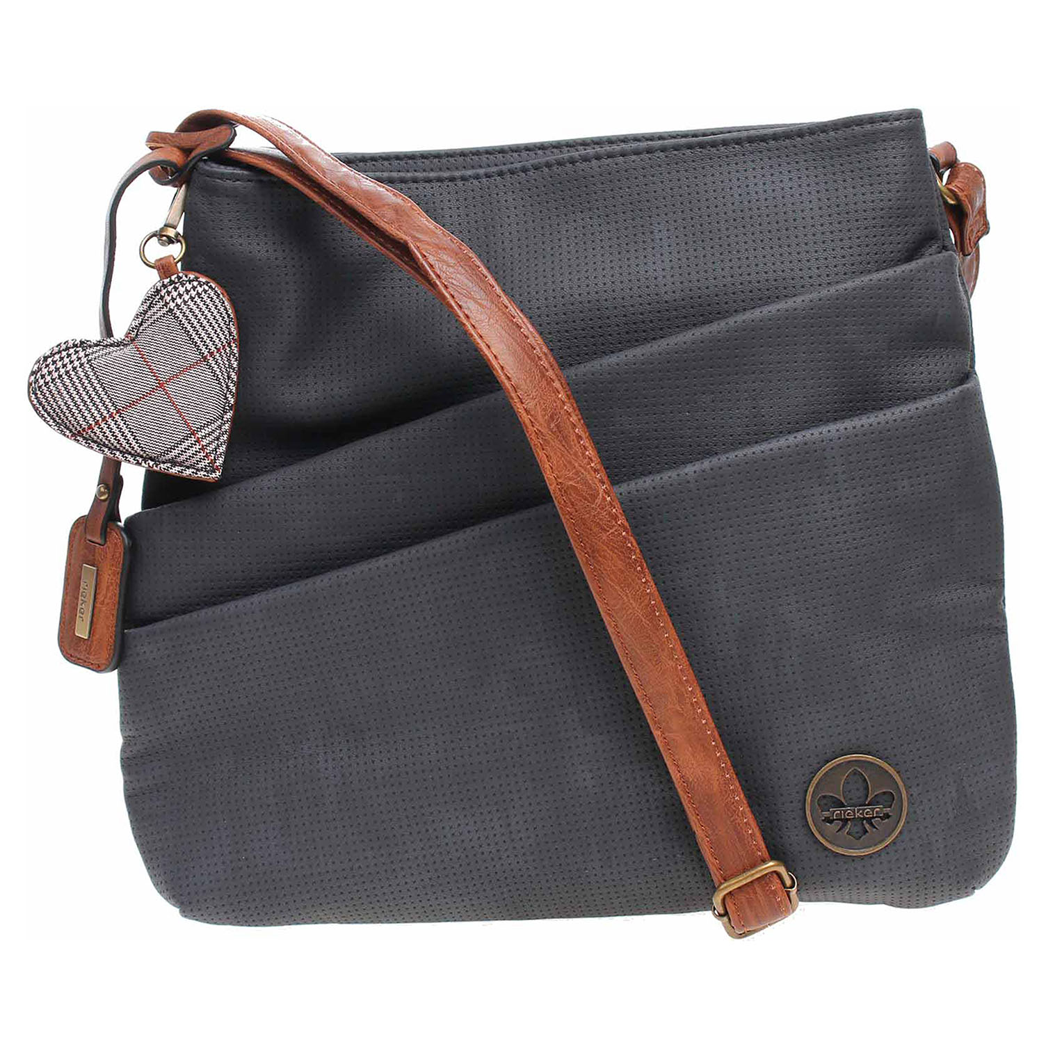 Rieker - dámská dvoukomorová kabelka se zapínáním na zip má rozměry - 27 x 24 x 5 cm. Kabelku ze syntetického materiálu je možno nosit přes rameno nebo crossbody na regulovatelném pásku, který se nedá odepnout. Na přední straně kabelky jsou dvě kapsy. Jedna se zapíná na zip a druhá na magnet. Na zadní straně je kapsa se zipem. Vnitřní výbava: 1x kapsa na zip + 2x přihrádka na mobil a klíče.