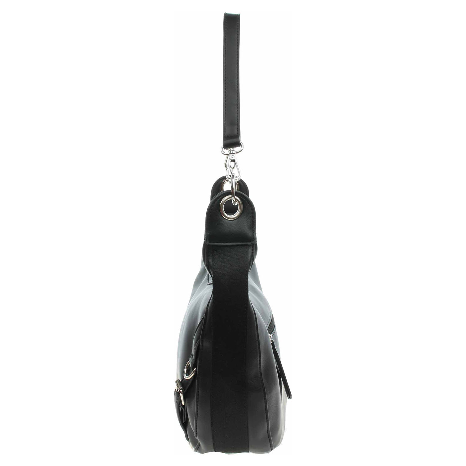 Popis:Rieker - dámská kabelka se zapínáním na zip má svršek z poluretanu a podšívku polyesteru. Kabelku je možno nosit v ruce za odepínatelný kratší popruh (výška 27 cm) nebo po výměně přes rameno na regulovatelném popruhu s karabinkami. Na zadní straně je kapsa se zipem. Rozměry: 33 x 9 x 25 cm. Karabinky, kroužky, zip i logo jsou z leštěného kovu stříbrné barvy. Vnitřní výbava: 1x kapsa se zipem a 2x kapsa bez zapínání.
