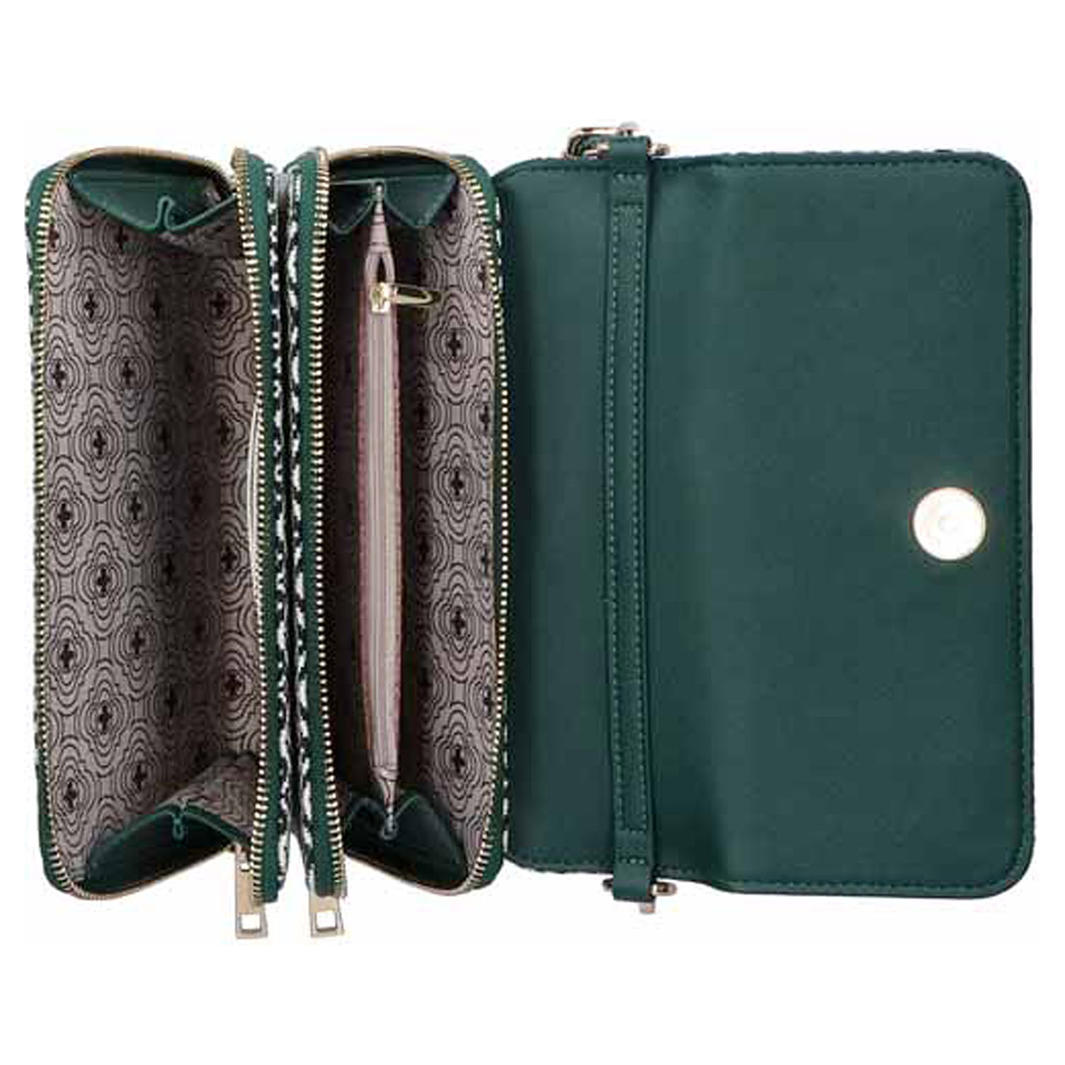 Popis:Rieker - dámská klopnová dvoukomorová kabelka v kombinaci 100% polyester / 100% polyuretan se zapínáním na magnet má rozměry 21 x 14 x 5 cm. Obě komory se zapínají na zip. Kabelku je možno nosit crossbody nebo přes rameno na regulovatelném pásku, který je možno odepnout. Vnitřní výbava: v přední komoře 2x kapsička na platební karty a zadní komora je rozdělená na dvě části kapsou se zipem.