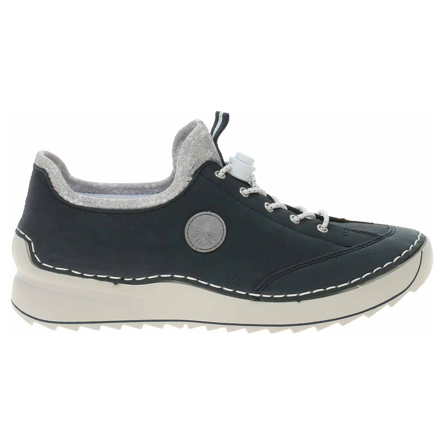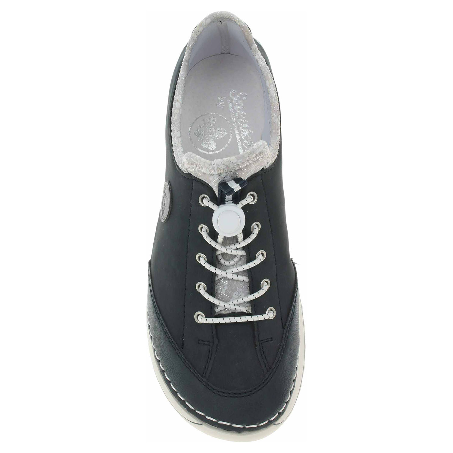 Boty Rieker - flexiblová dámská nazouvací obuv se svrškem ze syntetiky a s textilní podšívkou je vybavená vyměkčenou stélkou z usně. Šněrováním je provlečená nekonečná gumička s brzdičkou, která zvyšuje stabilitu nohy v obuvi. Klínek je vysoký 3,5 cm. Podešev je flexibilní a díky systému Antistress skvěle tlumí nárazy a otřesy. Flexiblová obuv - prošívaná podešev, obuv používejte v suchém prostředí. Při zvýšené vlhkosti může dojít k promáčení obuvi. Obuv pravidelně impregnujte nebo krémujte, zvláště pak prošívaný okraj.