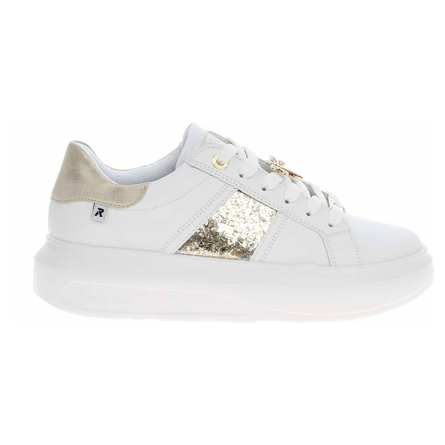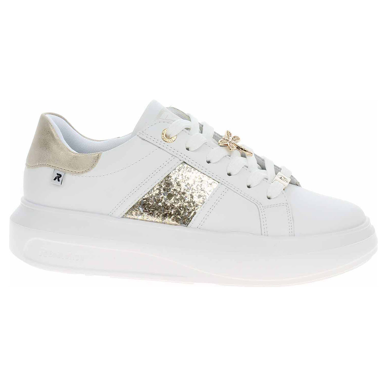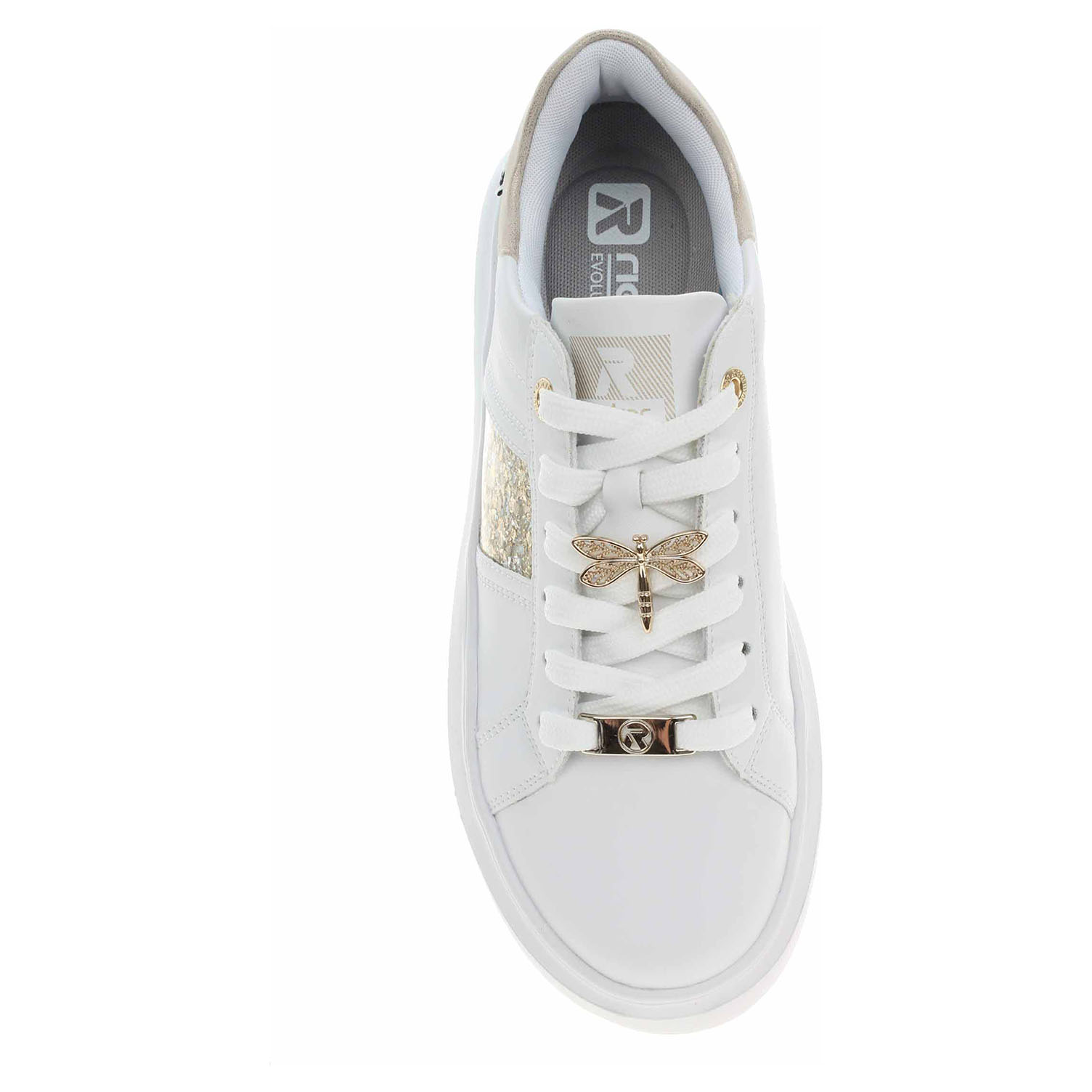 Boty Rieker - lepená dámská obuv řady Revolution se zlatou vážkou na šněrování má svršek z usně a textilní podšívku a je vybavená vyndavací stélkou s textilní nášlapnou vrstvou. RevolutionSoft – unikátní stélka z paměťové pěny, která změkčuje došlap, maximálně se přizpůsobí tvaru Vašeho chodidla, ale zároveň ji můžete vyjmout, vyměnit nebo vyvětrat. Rieker R-EVOLUTION je nová řada moderní sportovní obuvi s obrovským důrazem na použité technologie a na komforní pohodlí i při celodenním nošení. Klínek je vysoký 3,5 cm. Lepená obuv - pevnost lepeného spoje může být negativně ovlivněna promáčením nebo propocením, event. opakovaným používáním nedostatečně vysušené obuvi. Při neopatrné chůzi může dojít k mechanickému uvolnění lepeného spoje - ukopnutí.