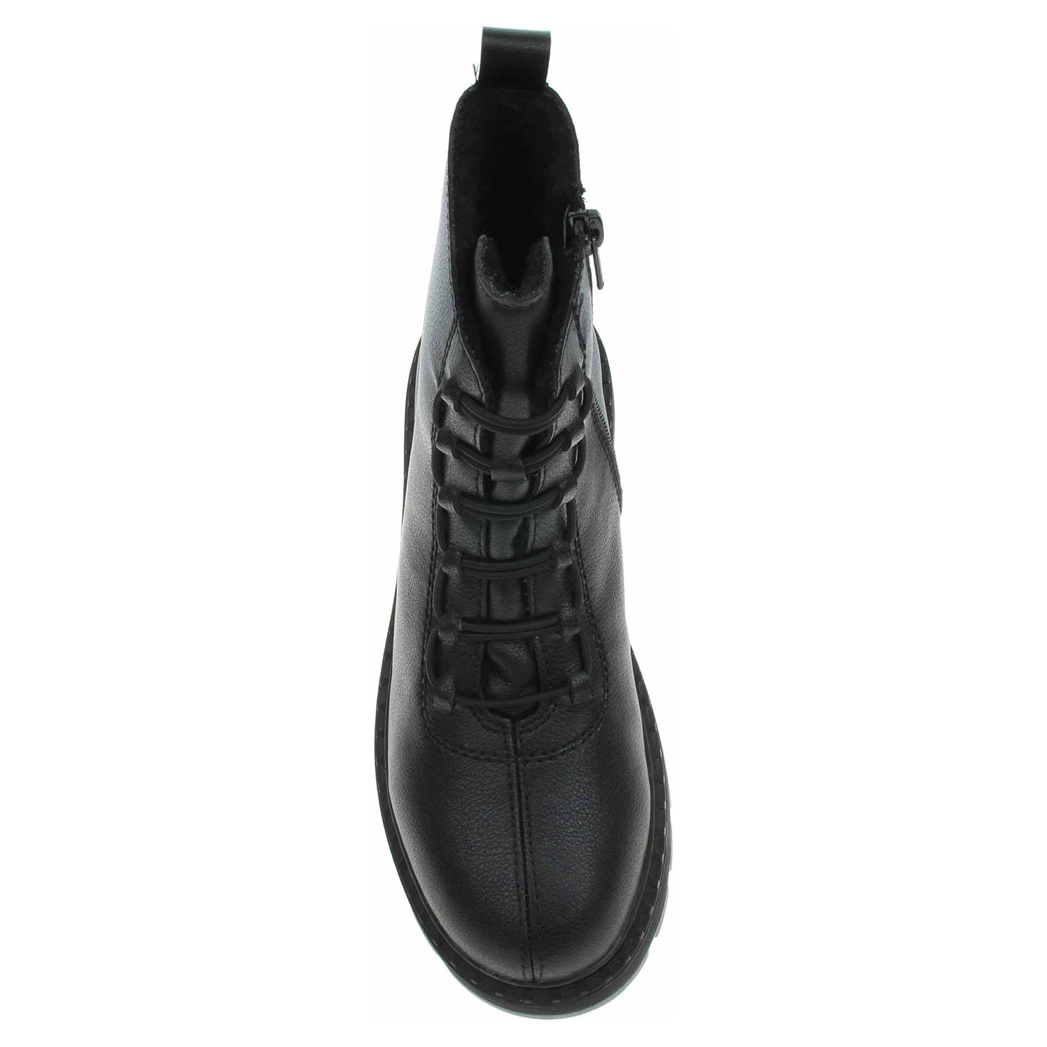 Boty Rieker - lepená dámská kotníková obuv se zipem a šněrováním na nártu (gumička) má svršek z usně a je vyteplená podšívkou ze střižní ovčí vlny s chlupem. Vyměnitelné vložky do bot je možné vyndat za účelem provětrání a omytí. Značnou výhodu nabízejí vyměnitelné vložky do bot také těm uživatelům, kteří používají ortopedické vkládací stélky. Klínek je vysoký 4,- cm a platforma je vysoká 2,5 cm. Podešev je flexibilní a díky systému Antistress skvěle tlumí nárazy a otřesy. Lepená obuv - pevnost lepeného spoje může být negativně ovlivněna promáčením nebo propocením, event. opakovaným používáním nedostatečně vysušené obuvi. Při neopatrné chůzi může dojít k mechanickému uvolnění lepeného spoje - ukopnutí.