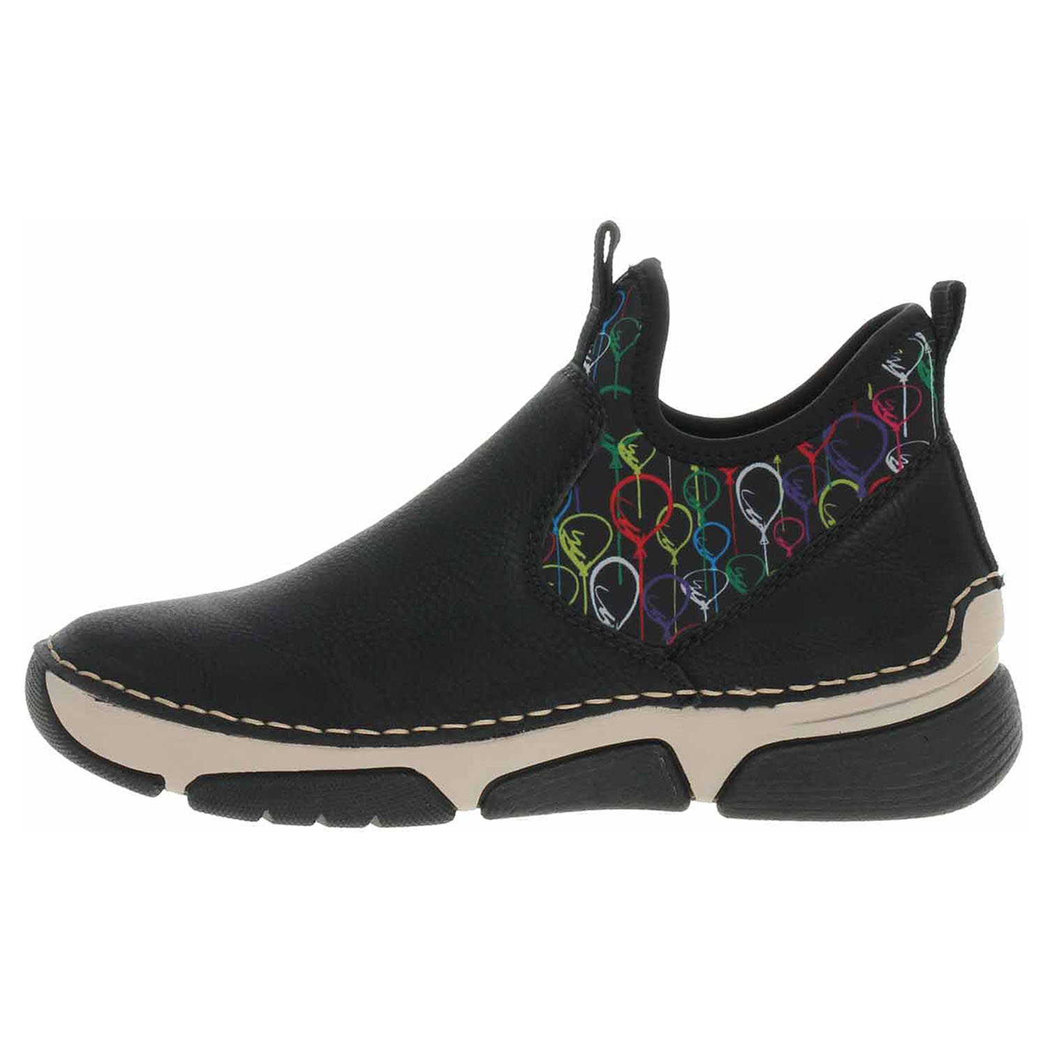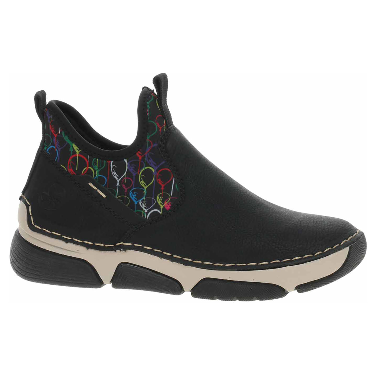 Boty Rieker - flexiblová dámská kotníková obuv se svrškem kombinovaným syntetika/textil a s textilní podšívkou je vybavená vyměkčenou stélkou z usně. Pohodlné nazouvání zajišťuje textilní ponožkový nástup do obuvi a poutkou na nártu a na patě. Klínek je vysoký 3,5 cm a platforma je vysoká 2,- cm. Podešev je flexibilní a díky systému Antistress (lehkost, pružnost, prostornost a vynikající absorpce nárazů) Vám obuv zajistí pohodlí při každém kroku. Flexiblová obuv - prošívaná podešev, obuv používejte v suchém prostředí. Při zvýšené vlhkosti může dojít k promáčení obuvi. Obuv pravidelně impregnujte nebo krémujte, zvláště pak prošívaný okraj.