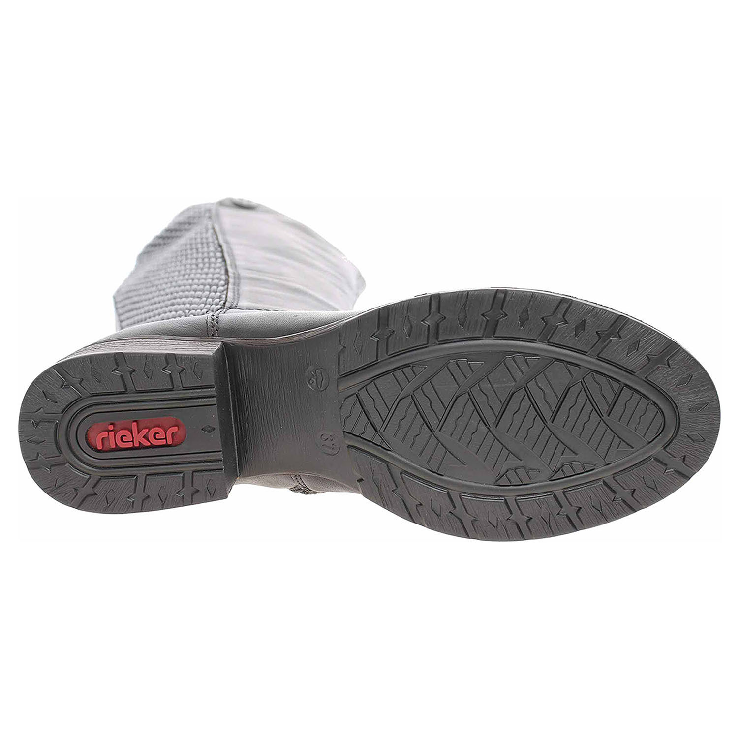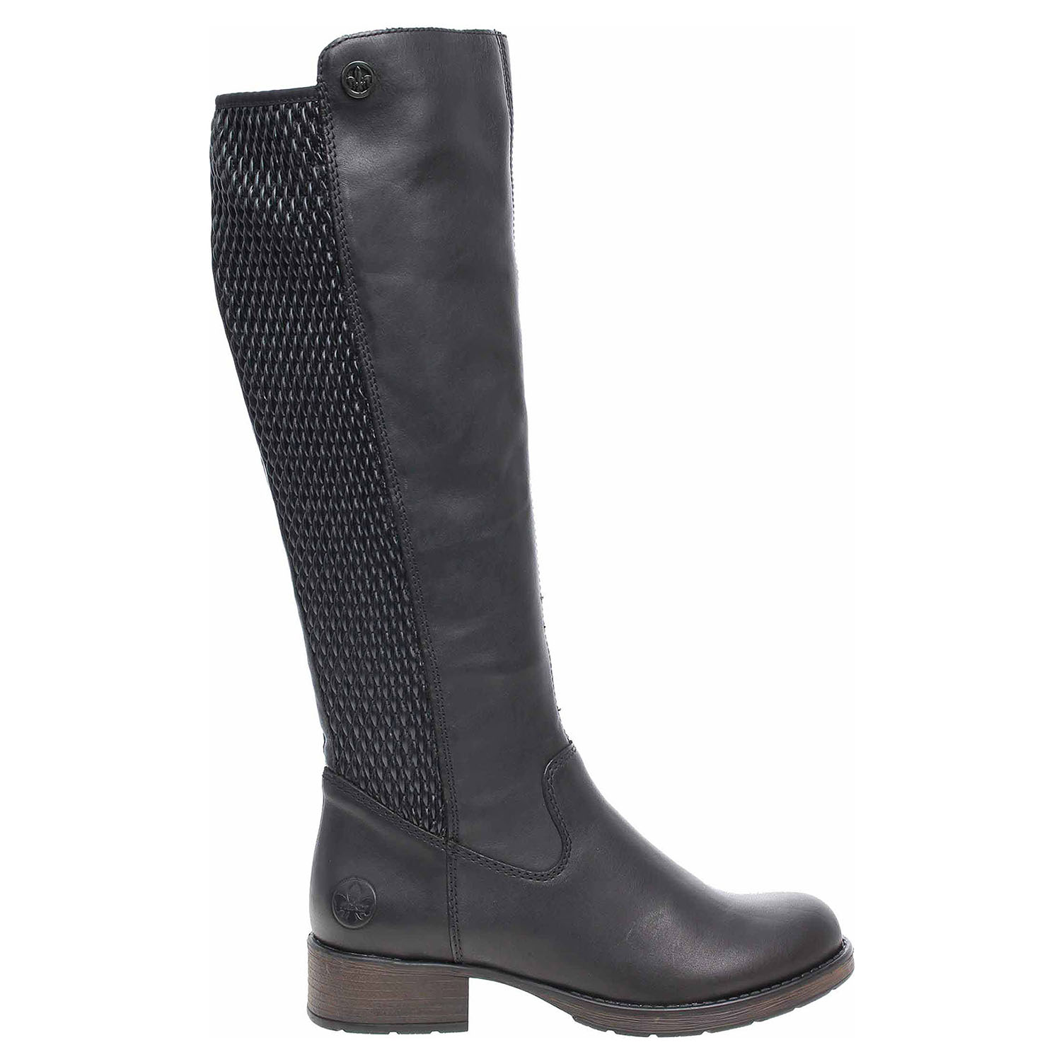 Boty Rieker - lepené dámské kozačky se svrškem kombinovaným useň/syntetika jsou vhodné pro středně široké lýtko velikosti M. Obuv je na lýtku vybavená Vario systémem (strečový materiál), který se lépe přizpůsobuje tvaru lýtka a umožňuje částečné zvětšení obvodu. Obuv je vyteplená textilní podšívkou. Podpatek je vysoký 3,6 cm. Podešev je flexibilní a díky systému Antistress (lehkost, pružnost, prostornost a vynikající absorpce nárazů) Vám obuv zajistí pohodlí při každém kroku. Lepená obuv - pevnost lepeného spoje může být negativně ovlivněna promáčením nebo propocením, event. opakovaným používáním nedostatečně vysušené obuvi. Při neopatrné chůzi může dojít k mechanickému uvolnění lepeného spoje - ukopnutí.