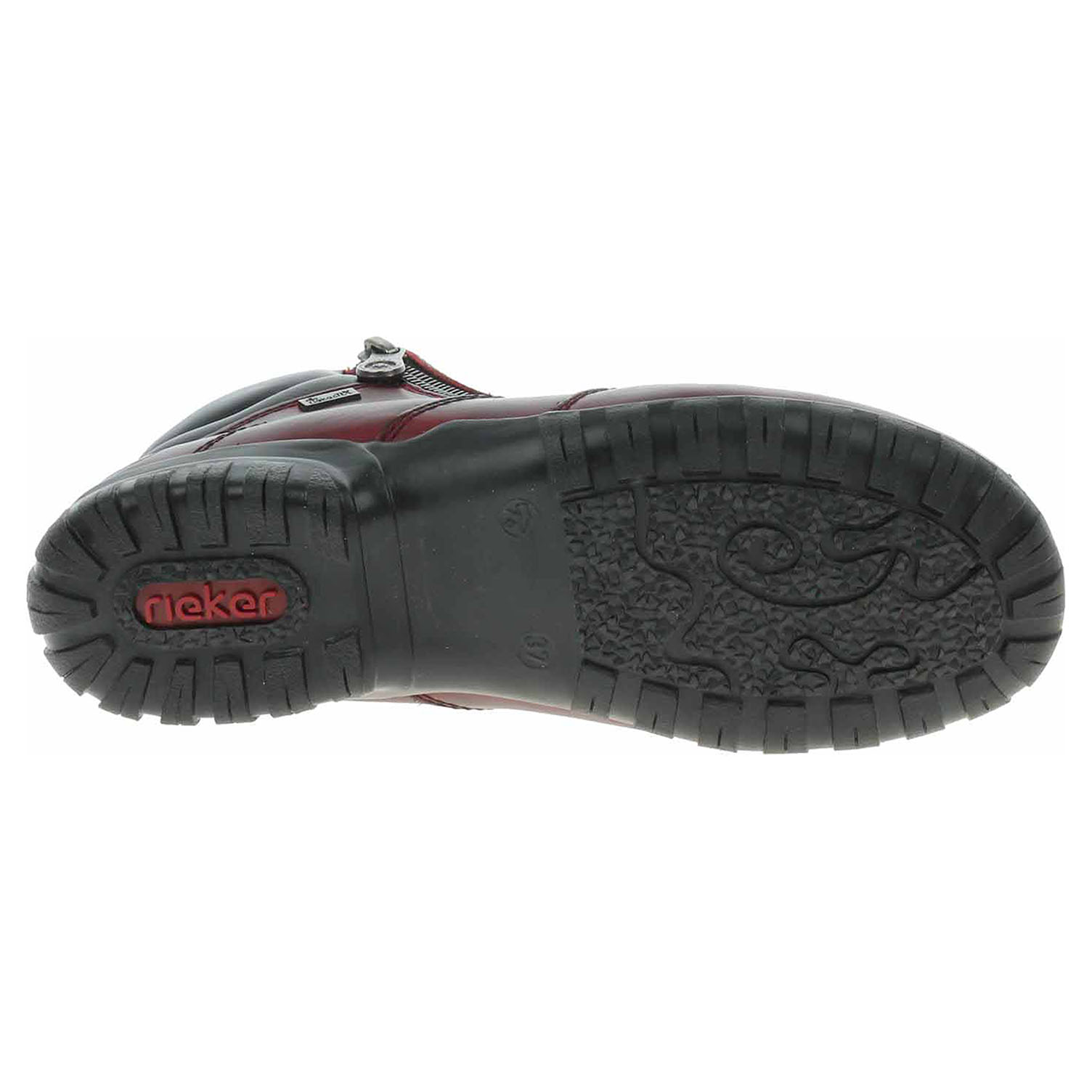 Boty Rieker - lepené dámské polokozačky nadměrné šíře se svrškem z usně, s textilní stélkou a s textilní podšívkou s chlupem jsou vybavené vodoodpudivou membránou RiekerTex. Pohodlné nazouvání zajišťují zipy na vnitřní i vnější straně. Klínek je vysoký 3,- cm. Podešev je flexibilní a díky systému Antistress (lehkost, pružnost, prostornost a vynikající absorpce nárazů) Vám obuv zajistí pohodlí při každém kroku. Lepená obuv - pevnost lepeného spoje může být negativně ovlivněna promáčením nebo propocením, event. opakovaným používáním nedostatečně vysušené obuvi. Při neopatrné chůzi může dojít k mechanickému uvolnění lepeného spoje - ukopnutí.