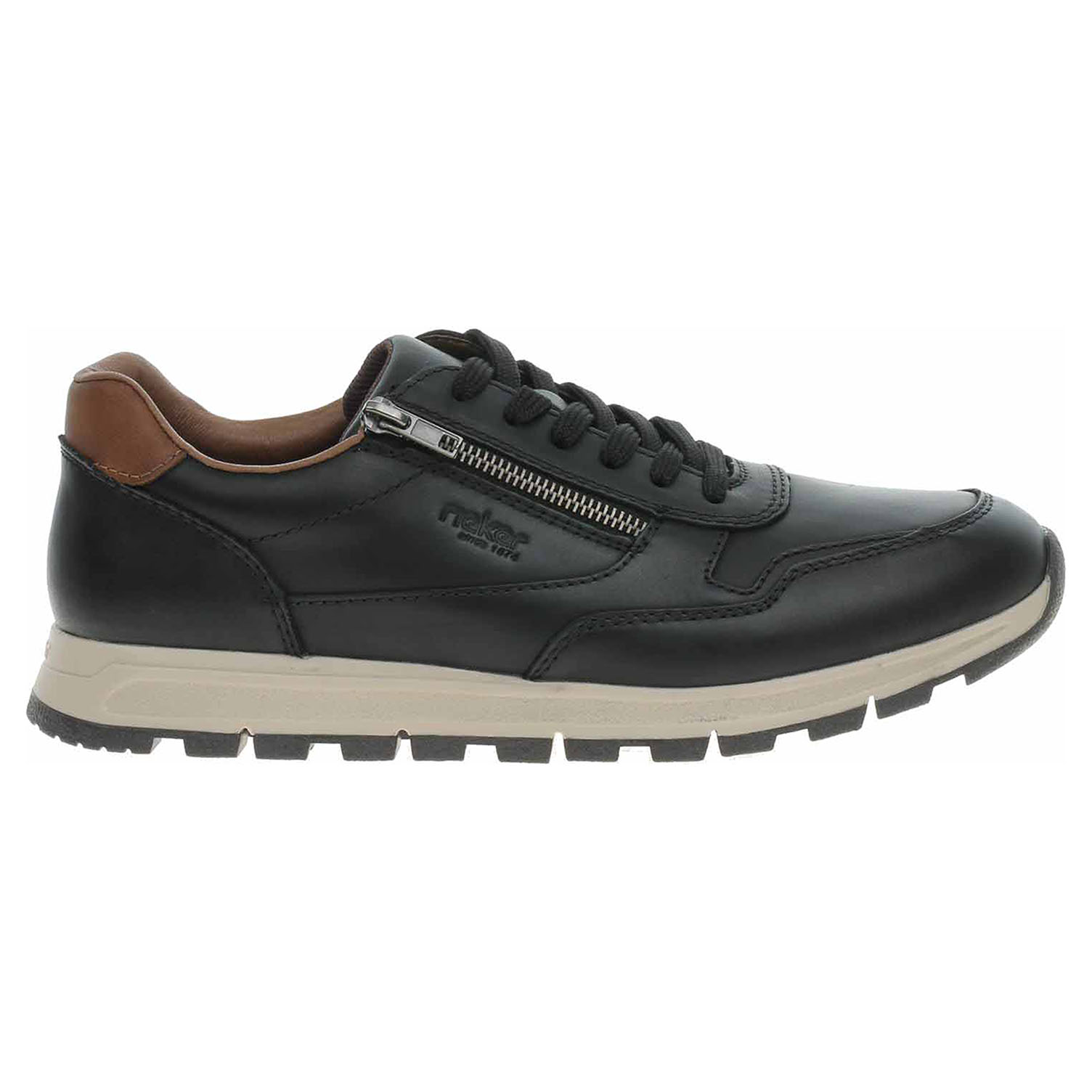 Boty Rieker - lepená pánská obuv se svrškem z usně a s podšívkou kombinovanou textil/syntetika je vybavená vyndavací stélkou s textilní nášlapnou vrstvou. Vyměnitelné vložky do bot je možné vyndat za účelem provětrání a omytí. Značnou výhodu nabízejí vyměnitelné vložky do bot také těm uživatelům, kteří používají ortopedické vkládací stélky. Pohodlné nazouvání zajišťuje šněrování a zip na vnější straně nártu. Klínek je vysoký 4,- cm. Podešev je flexibilní a díky systému Antistress skvěle tlumí nárazy a otřesy. Lepená obuv - pevnost lepeného spoje může být negativně ovlivněna promáčením nebo propocením, event. opakovaným používáním nedostatečně vysušené obuvi. Při neopatrné chůzi může dojít k mechanickému uvolnění lepeného spoje - ukopnutí.