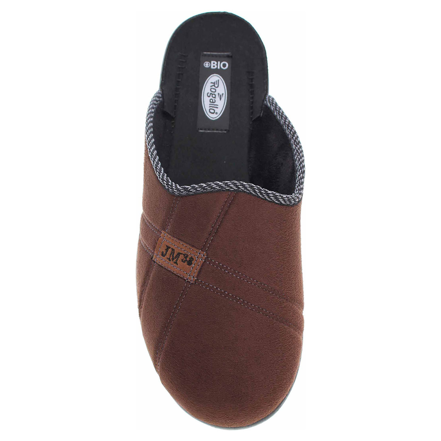 Boty Rogallo - pánské domácí pantofle s plnou špičkou na klínku vysokém 3,- cm. Svršek, podšívka i stélka jsou textilní.