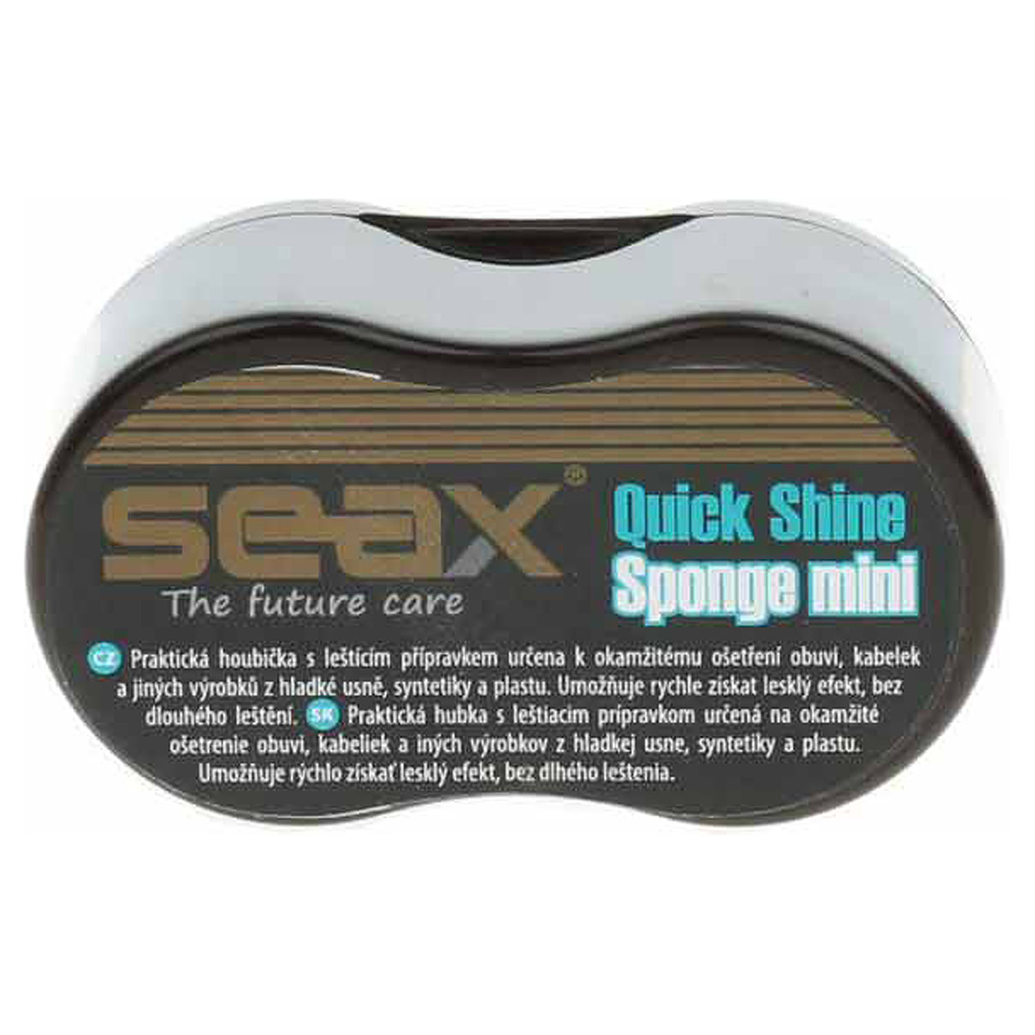 SEAX Quick Shine sponge mini - praktická houbička s leštícím přípravkem určena k okamžitému ošetření obuvi, kabelek a jiných výrobků z hladké usně, syntetiky a plastu. Obsahuje silikonový olej a tak umožňuje získat lesklý efekt, bez dlouhého leštění. Není vhodná pro kůži bez povrchové úpravy.