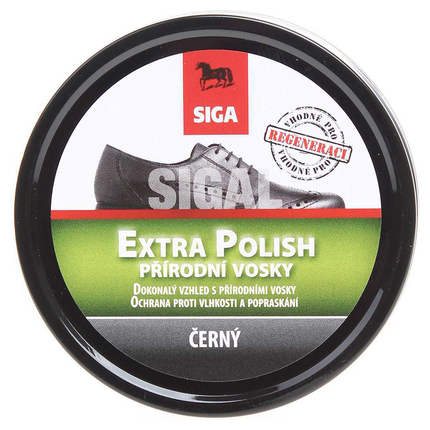 Sigal Extra Polish - barva černá - dóza 75 ml - klasická vosková impregnace pro ochranu před povětrnostními vlivy. Vysoký obsah montánních a palmových vosků zvyšuje odolnost vůči pronikání vlhkosti do struktury vláken, chrání před popraskáním a vylepšuje barevný odstín materiálu. Pravidelným používáním prodloužíte životnost obuvi.