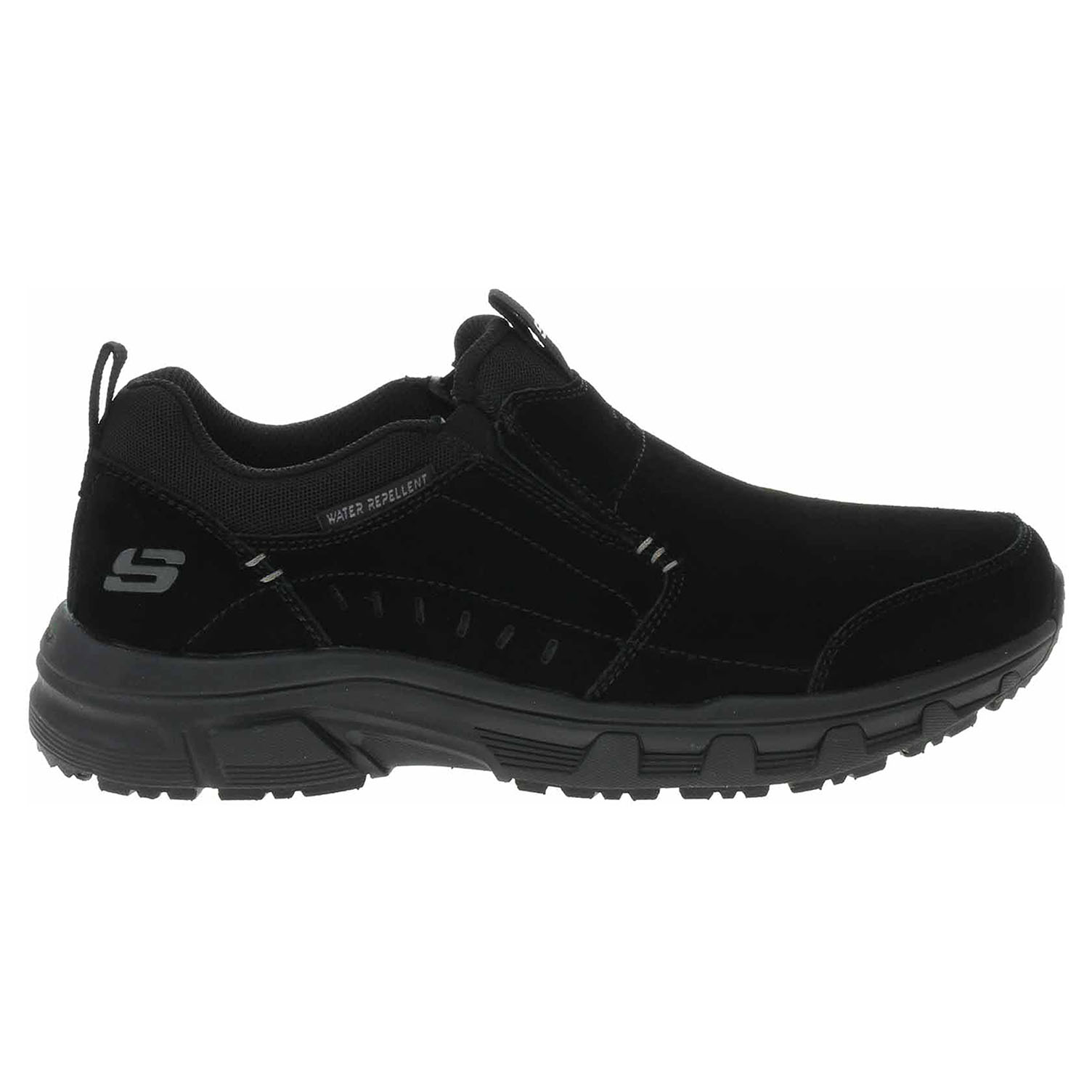 Boty Skechers - lepená pánská nazouvací obuv se svrškem z usně (semiš) je vybavená vodoodpudivou úpravou Water Repellent a paměťovou stélkou Air-Cooled Memory Foam (vzduchem chlazená pamět.pěna), která zajištuje chůzi jak na polštáři, ale noha se nepřehřívá a přirozeně se ochlazuje. Pohodlné nazouvání zajišťuje vsazené gumičky na nártu. Povrchová úprava svršku Scotchguard Protector 3M funguje na principu nanotechnologie, která textilní materiály pokryje neviditelným "filmem", který zabraňuje špinění materiálu a výrazně prodlužuje jeho životnost. Ochranný povlak zabraňuje kontaktu nečistoty s materiálem a plně zakrývá veškeré póry pro nasáknutí. V opačném směru od materiálu ven je přitom plně prodyšný. Klínek je vysoký 4,- cm. Lepená obuv - pevnost lepeného spoje může být negativně ovlivněna promáčením nebo propocením, event. opakovaným používáním nedostatečně vysušené obuvi. Při neopatrné chůzi může dojít k mechanickému uvolnění lepeného spoje - ukopnutí.