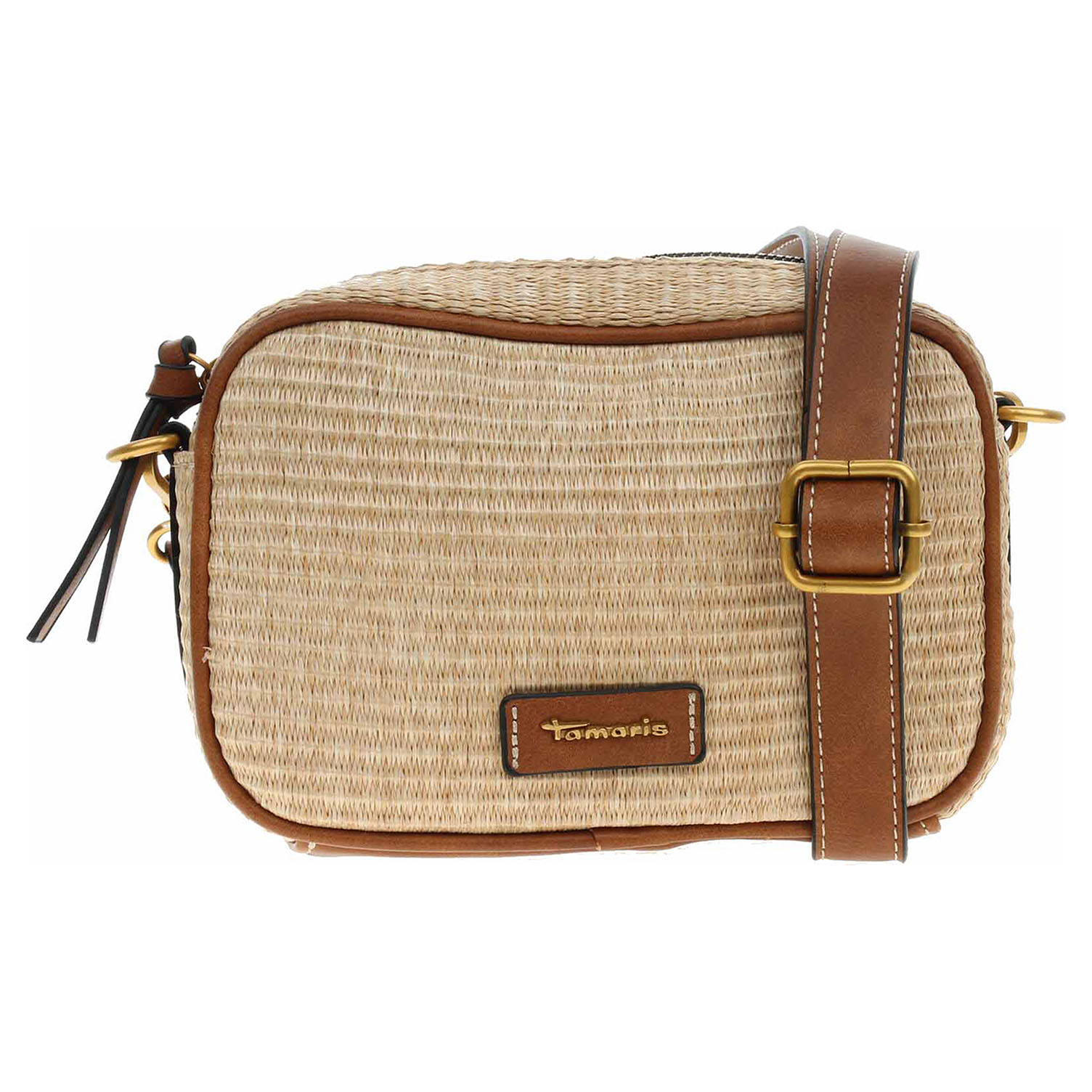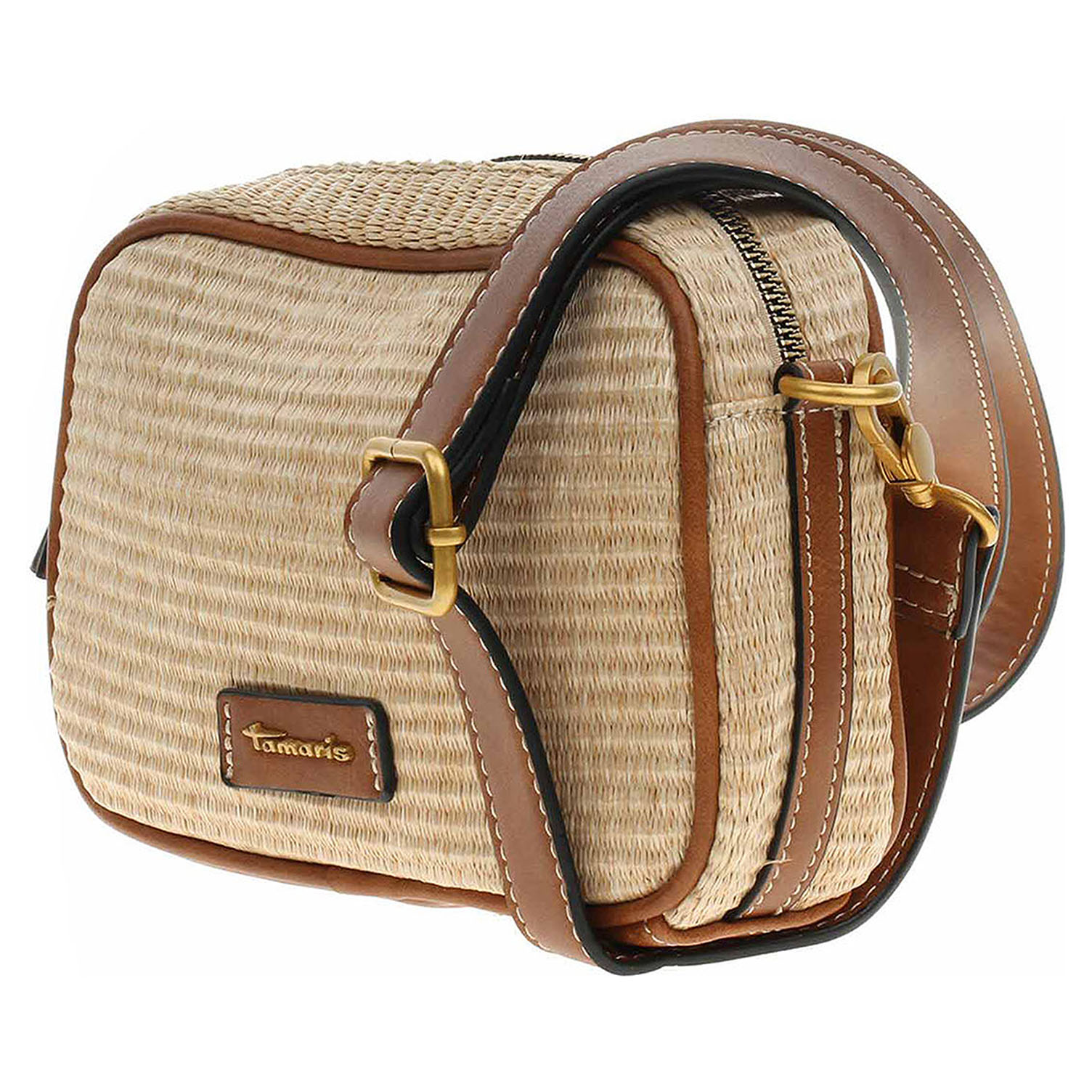 Tamaris - dámská kabelka se zapínáním na zip má svršek kombinovaný polyethylen/polypropylen (80% / 20%) a podšívka je z polyesteru. Kabelku je možno nosit přes rameno nebo crossbody na regulovatelném popruhu s karabinkami, který se dá odepnout. Rozměry: 15 x 21 x 6 cm. Karabinky, kroužky, zip i logo jsou z leštěného kovu zlaté barvy. Vnitřní výbava: 1x kapsa se zipem a 1x kapsa bez zapínání.